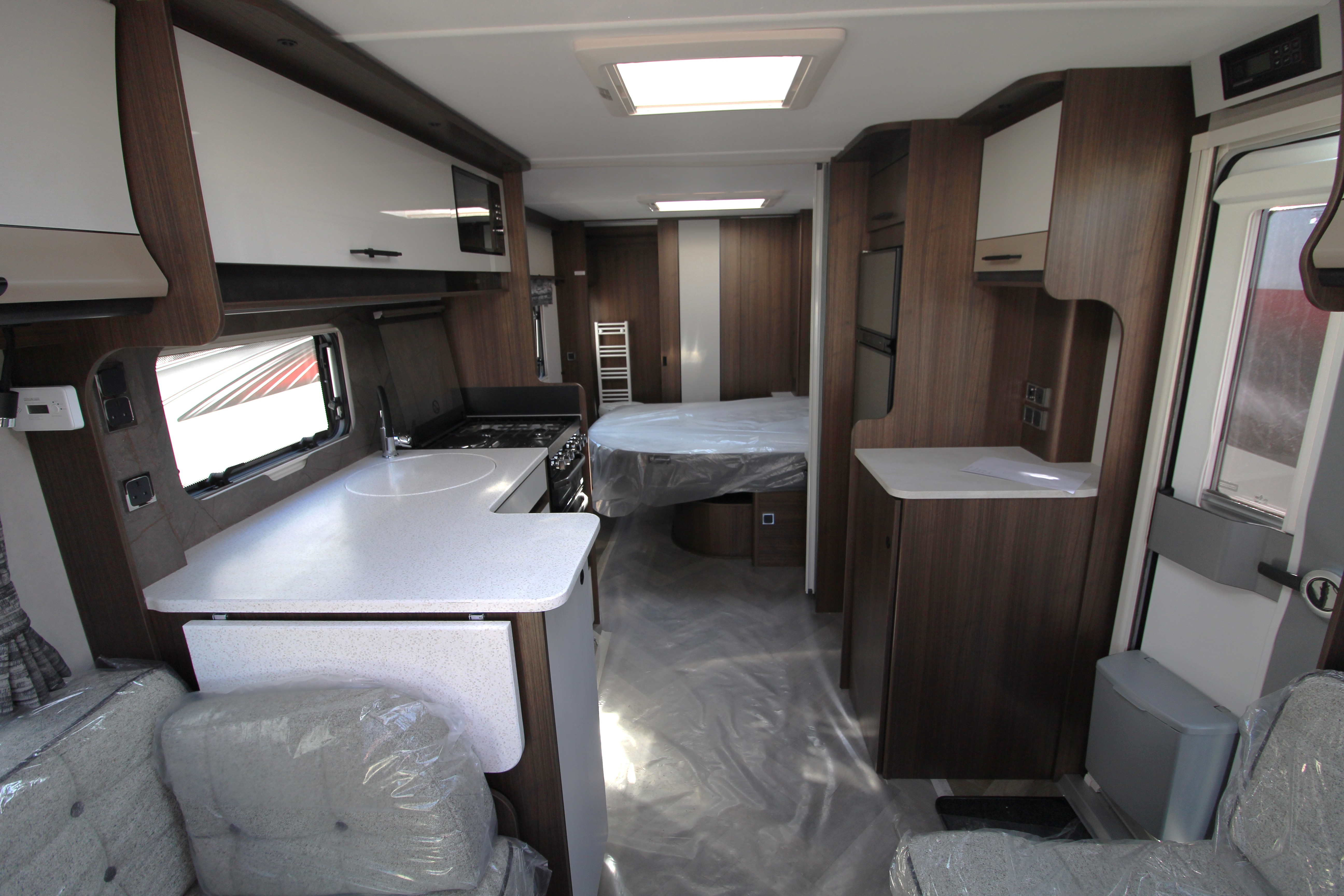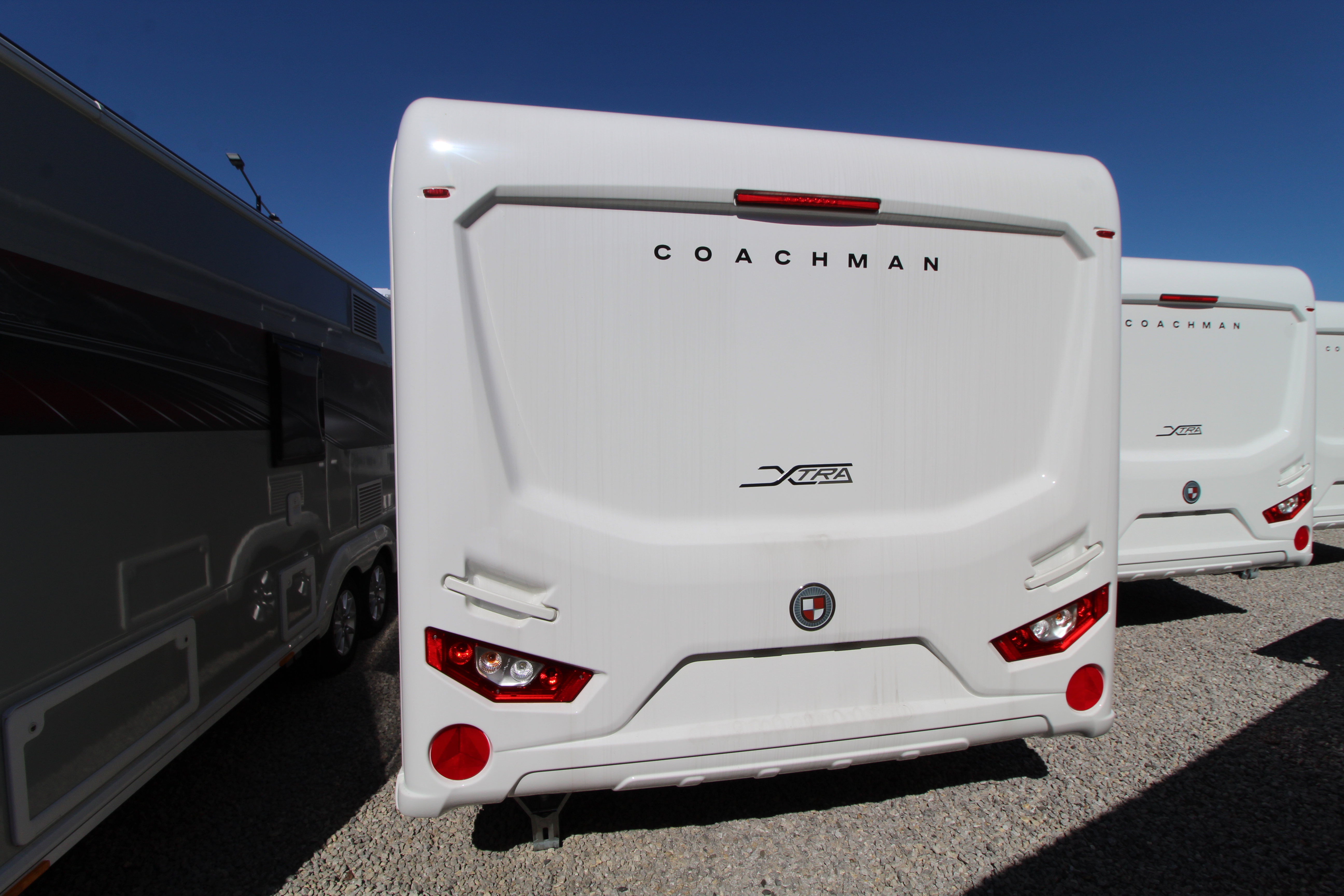 The Coachman Laser 875 Xtra is a four-berth caravan offering an open plan layout with transverse island bed and full width end washroom.