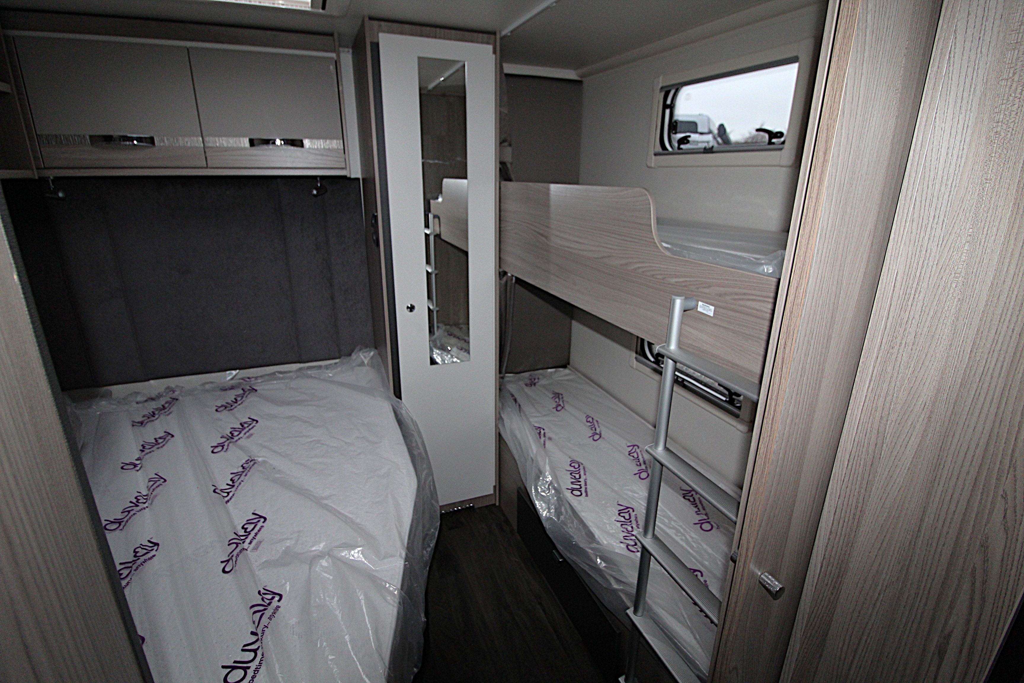 The new Swift Challenger Grande 670, 8ft wide twin axle six family caravan offers flexible accommodation for the growing family. With fixed bunks and a French bed to the rear of the caravan you have the ideal set up for the younger
