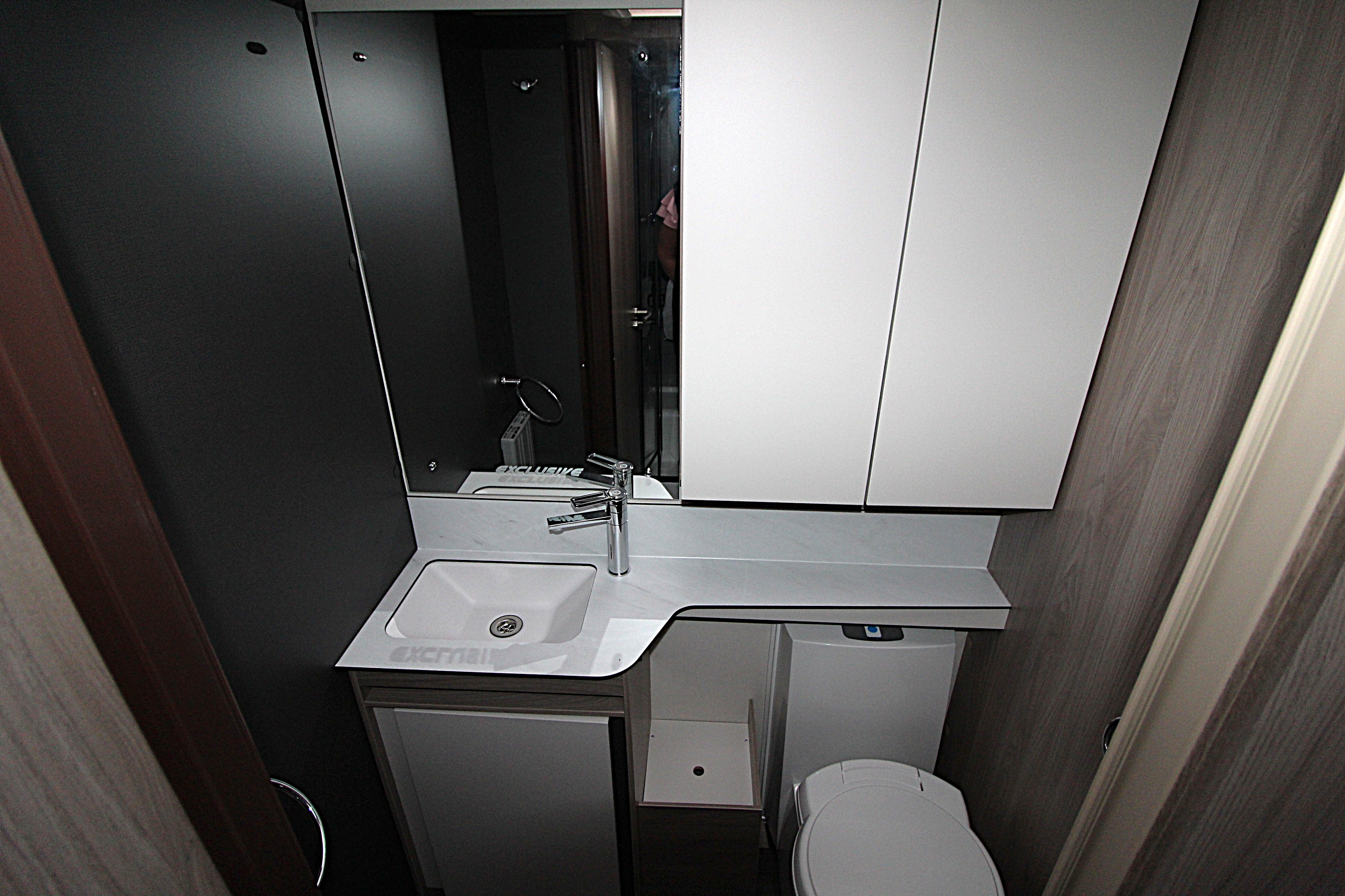 - NEW washroom design with Levato marble-effect work surface and additional lighting