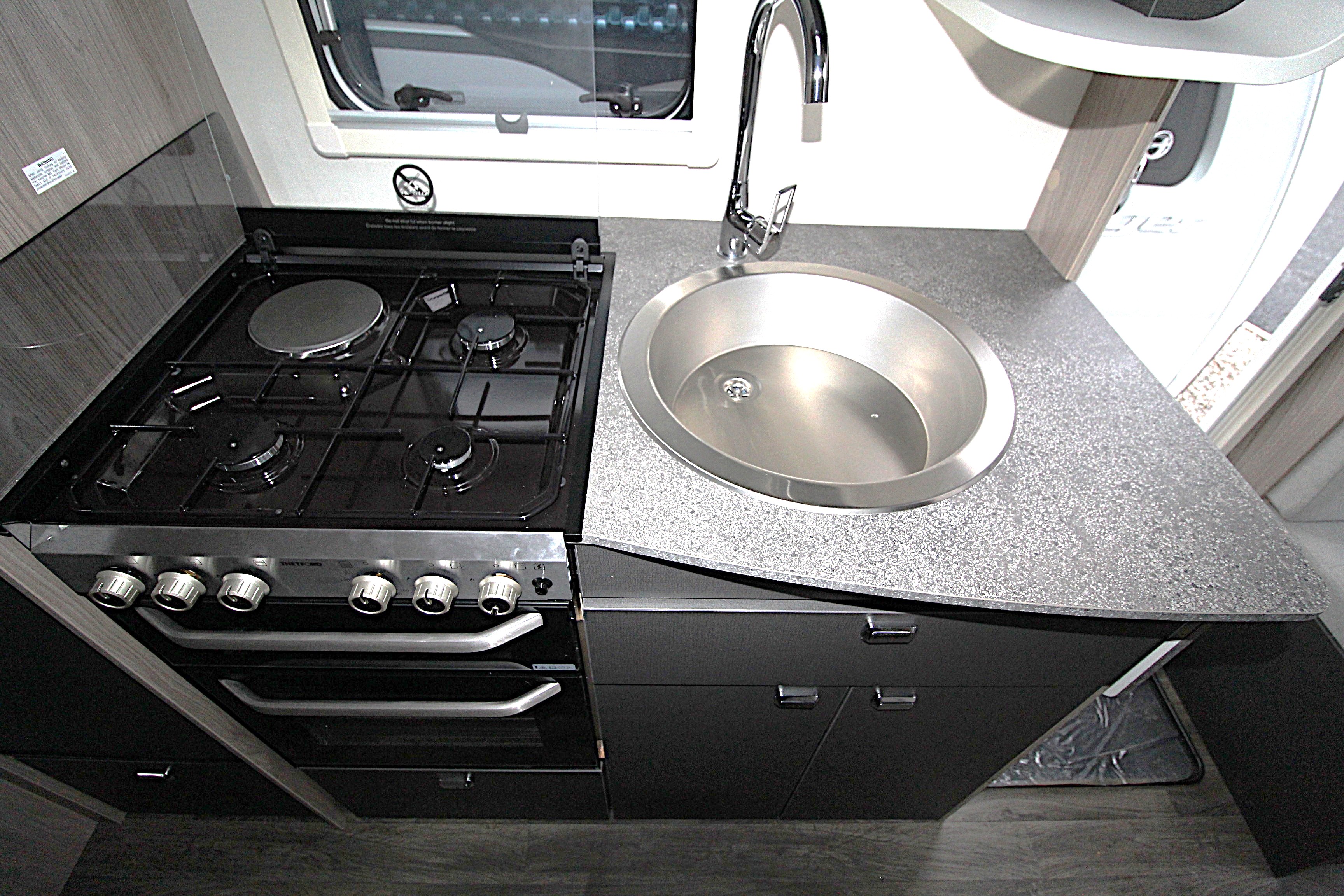 Thetford oven/grill with three-burner gas hob and one electric hotplate