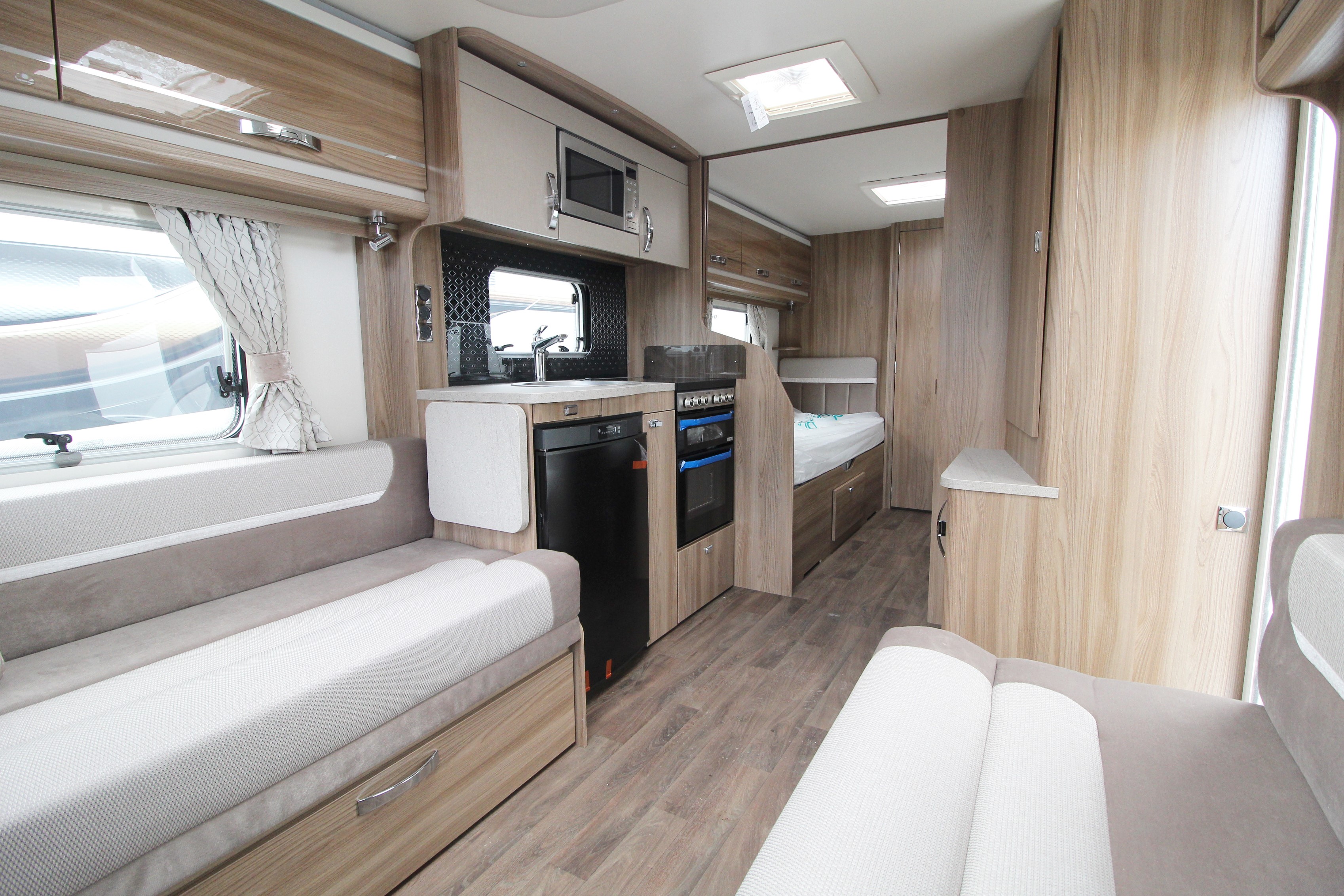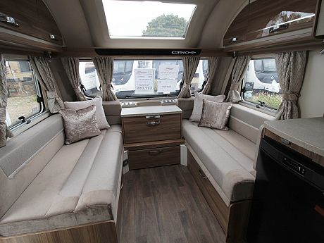 Brand new for the 2020 season. The Swift Corniche 18/8 Caravan is based on the Swift Challenger X 865 Caravam and is an 8ft wide four berth model with fixed single beds, an end washroom, and large front lounge. For 2020, the Swift Corniche Specification has been enhanced. Boasting Alde heating as standard, along with ATC and a 100-watt solar panel plus many more extras all included the Swift Corniche has sophistication and luxury provided as standard.