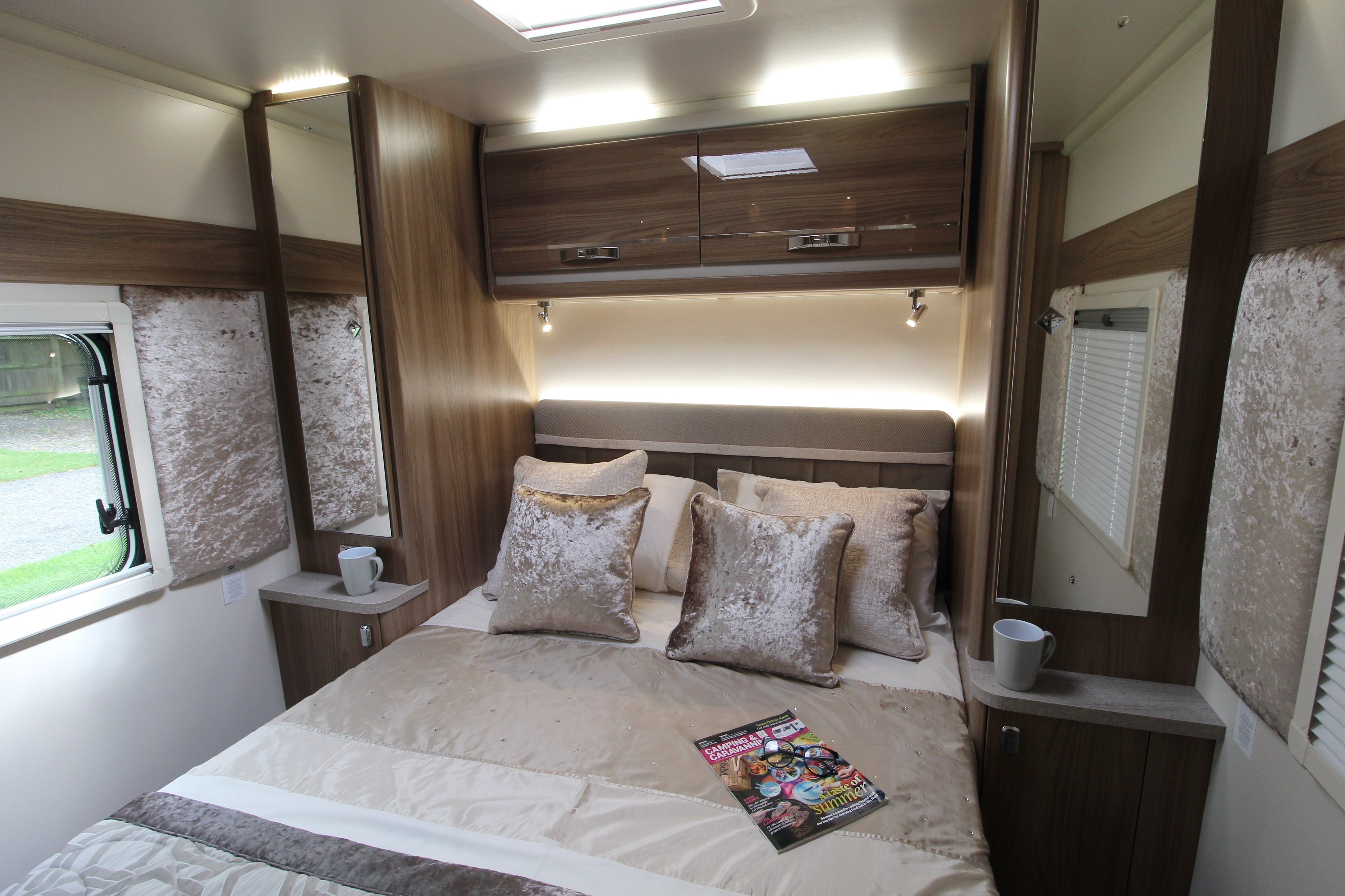 The Corniche 19/4 is a four-berth model that benefits from a fixed bed to the rear a centre washroom and a great sized front lounge giving the impression of three seperate rooms. The front lounge can easily accomodate a family of four can can be used as additional sleeping space either by converting the double bench seats into a double bed or using them as single beds. There is a well equipped centreal kitchen which includes a great deal of worktop and storage space plus plenty of modern features and fittings. The Corniche 19/4's washroom has a seperate shower cubicle, a centre vanity sink with illuminated mirror and a cassette toilet.