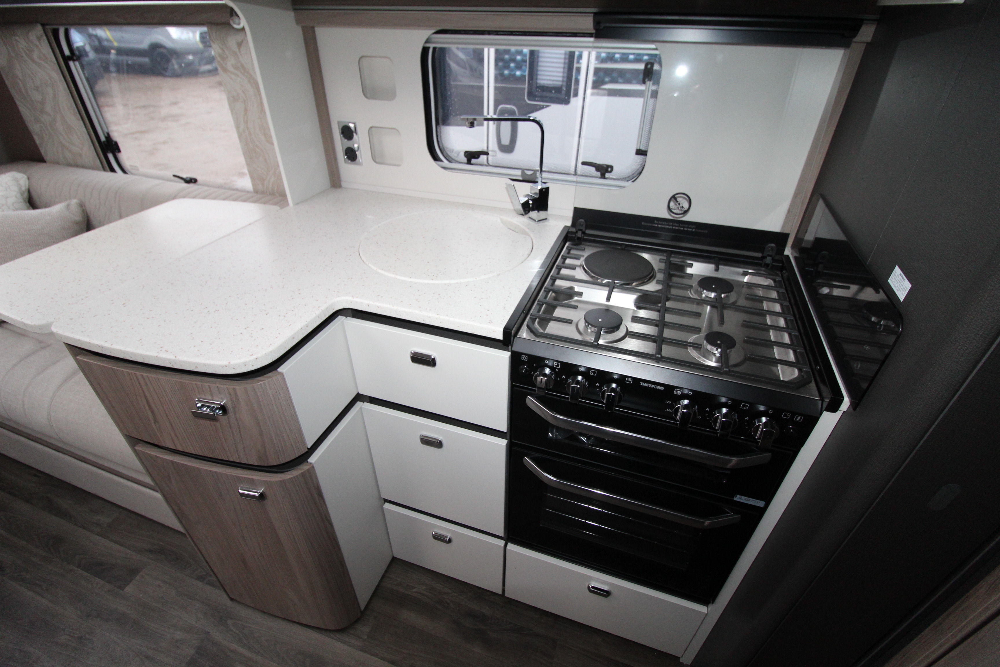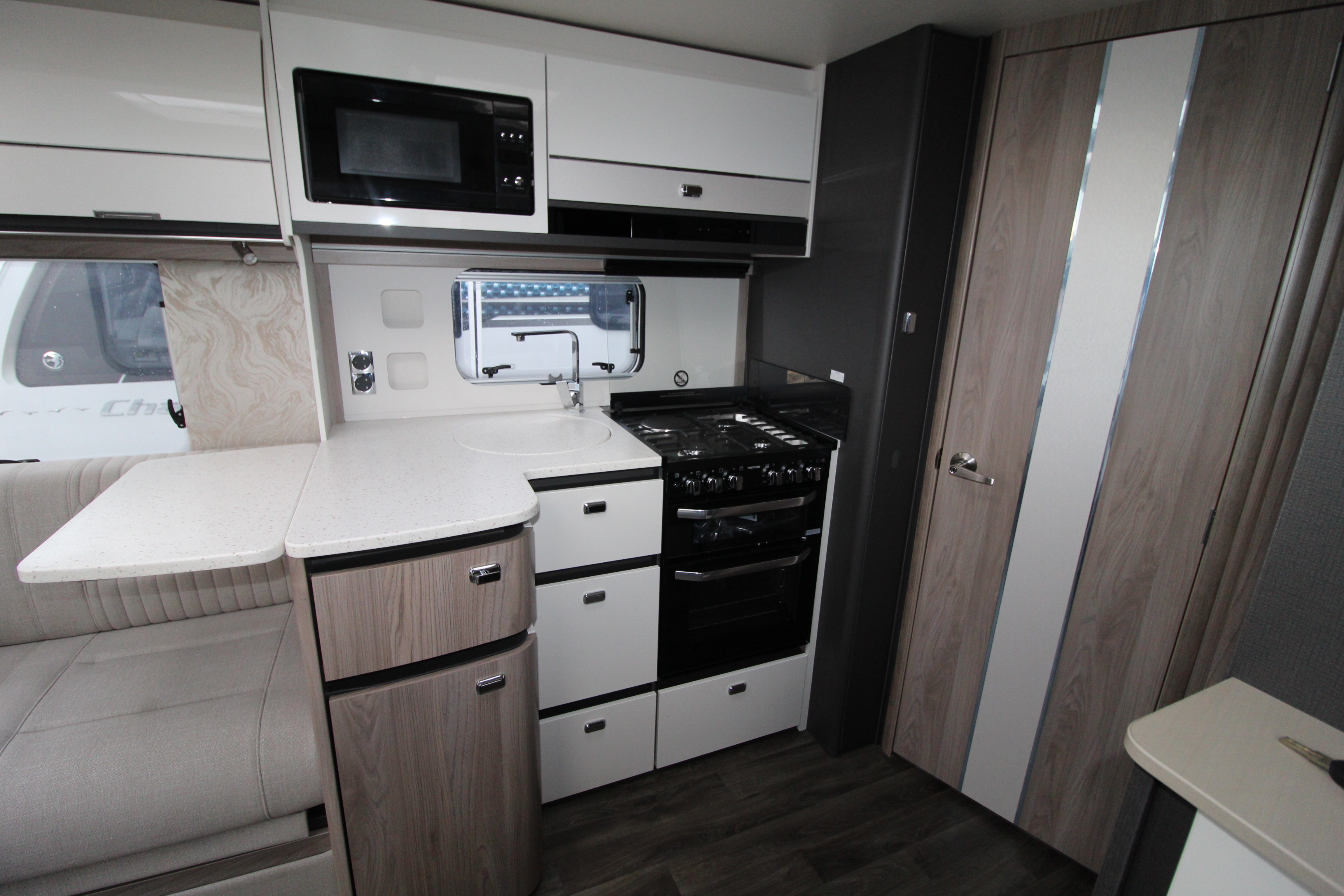 From the upgraded Swift Command touchscreen system to Alde underfloor heating and integrated 4G Wi-Fi, every detail is crafted for comfort and control. The 835 layout features a generous front lounge, boutique style washroom, a fixed rear island bed, and a high-spec kitchen with enhanced worktops and ambient lighting — perfect for indulgent getaways.