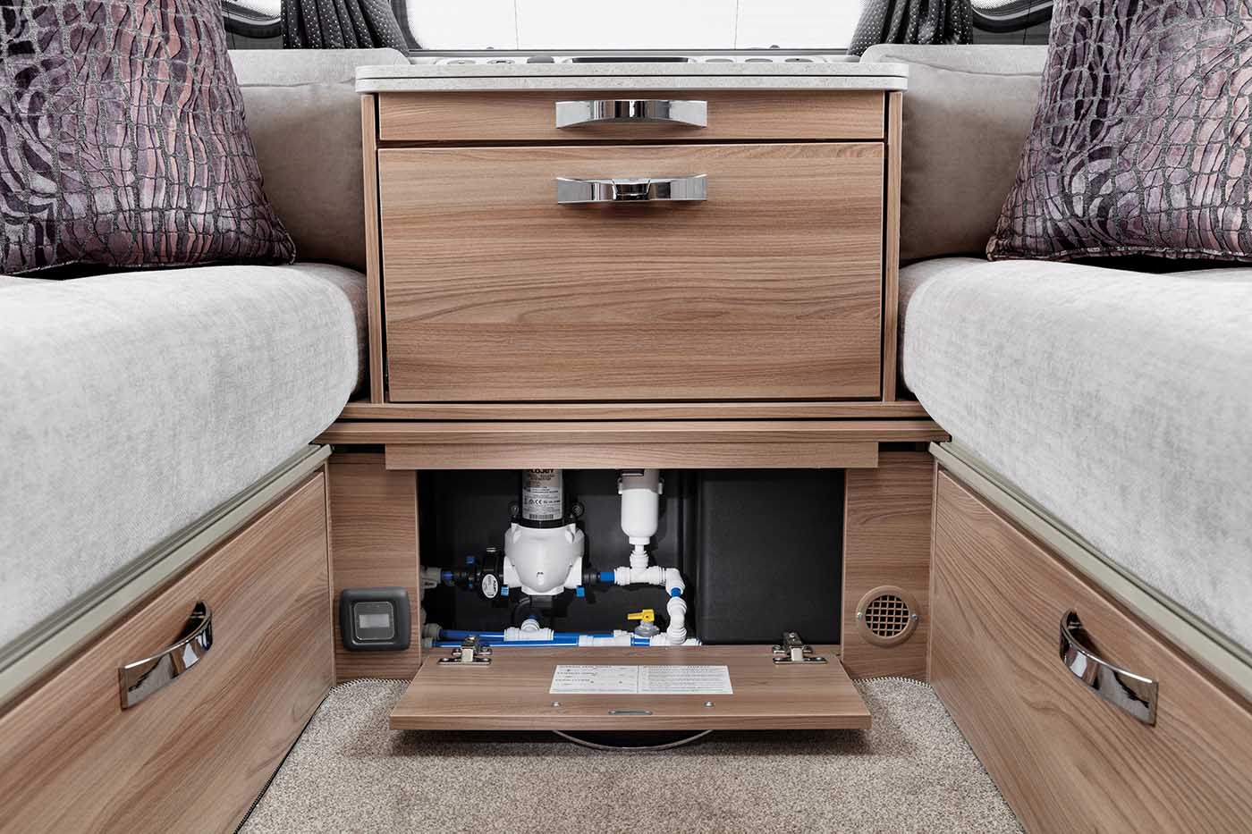 The Swift Elegance Grande 835 features one of the most popular fixed bed layouts of 2019 - the fixed rear island bed and centre washroom layout. The dedicated transverse washroom project the utmost refinement with quality fittings and on-trend aesthetics providing a spa-like feel, while designer touches to the soft furnishings and furniture teamed with premium quality fittings allow you to enjoy the finer things in life. Thanks to Elegance Grande 835's wider body, you can enjoy a superbly spacious front lounge with extra room between seats for valuable extra living space and larger front beds. The 1.95m internal headroom and panoramic front sunroof emphasise the feeling of expanse, filling the area with natural light for an indulgent aspect. Fitted with extra features including a 30 Litre on-board water tank, rear view camera, shaving mirror and high finish LED lighting throughout, it's easy to see why the Elegance Grande 835 stands head and shoulders above the rest. Available to order at Wandahome South Cave today.