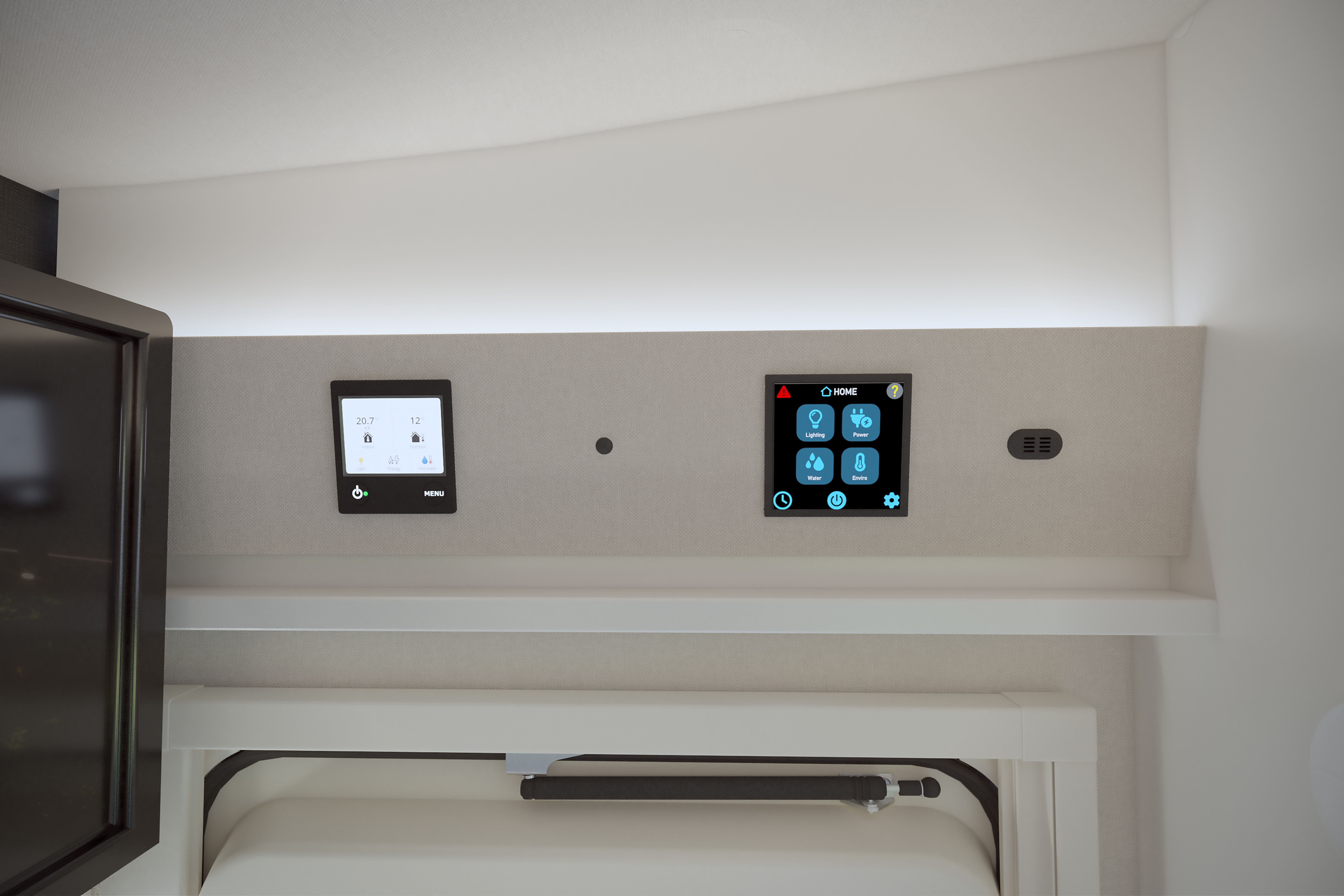 - TV points with 230V and 12V sockets and aerial socket