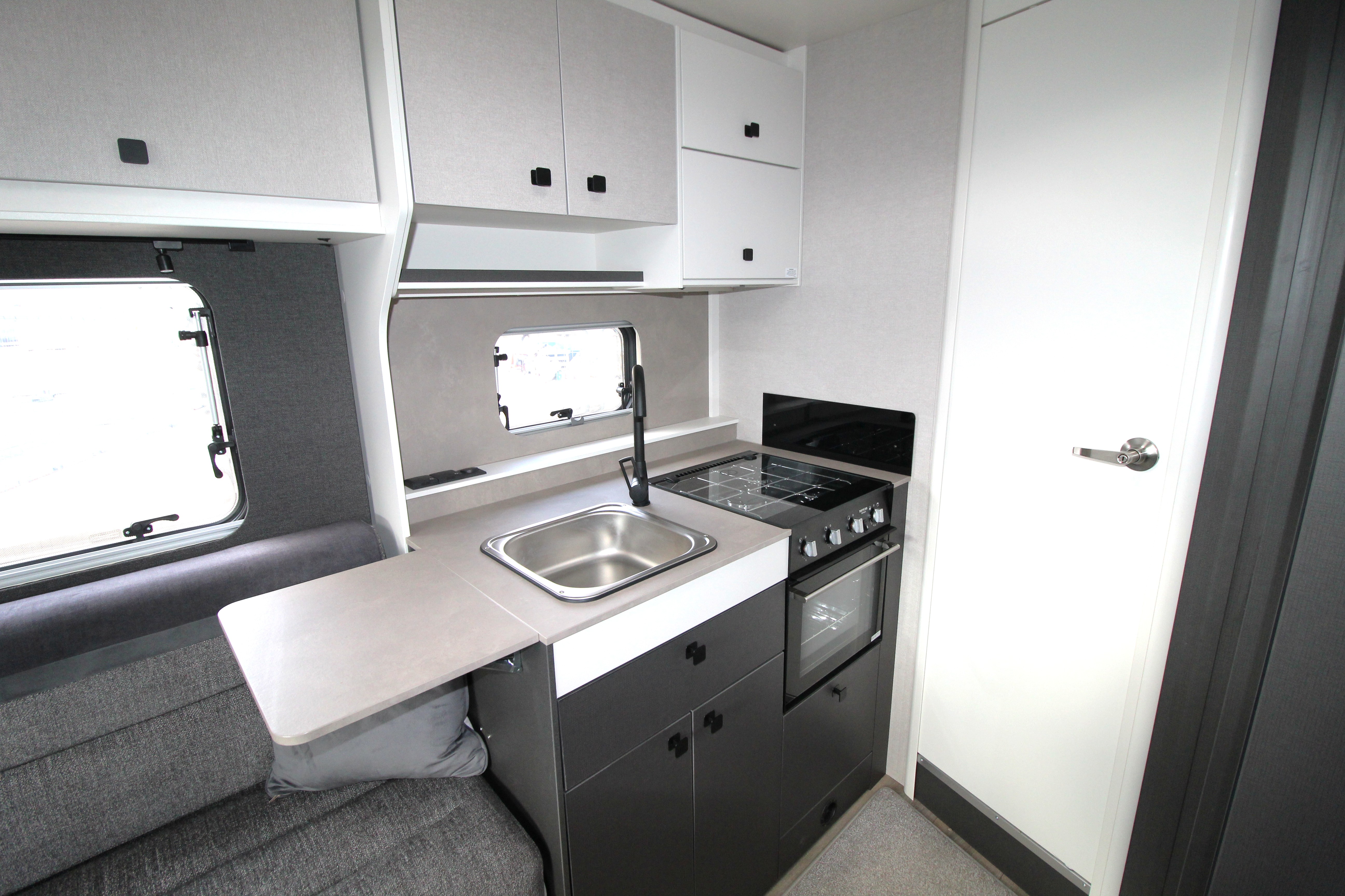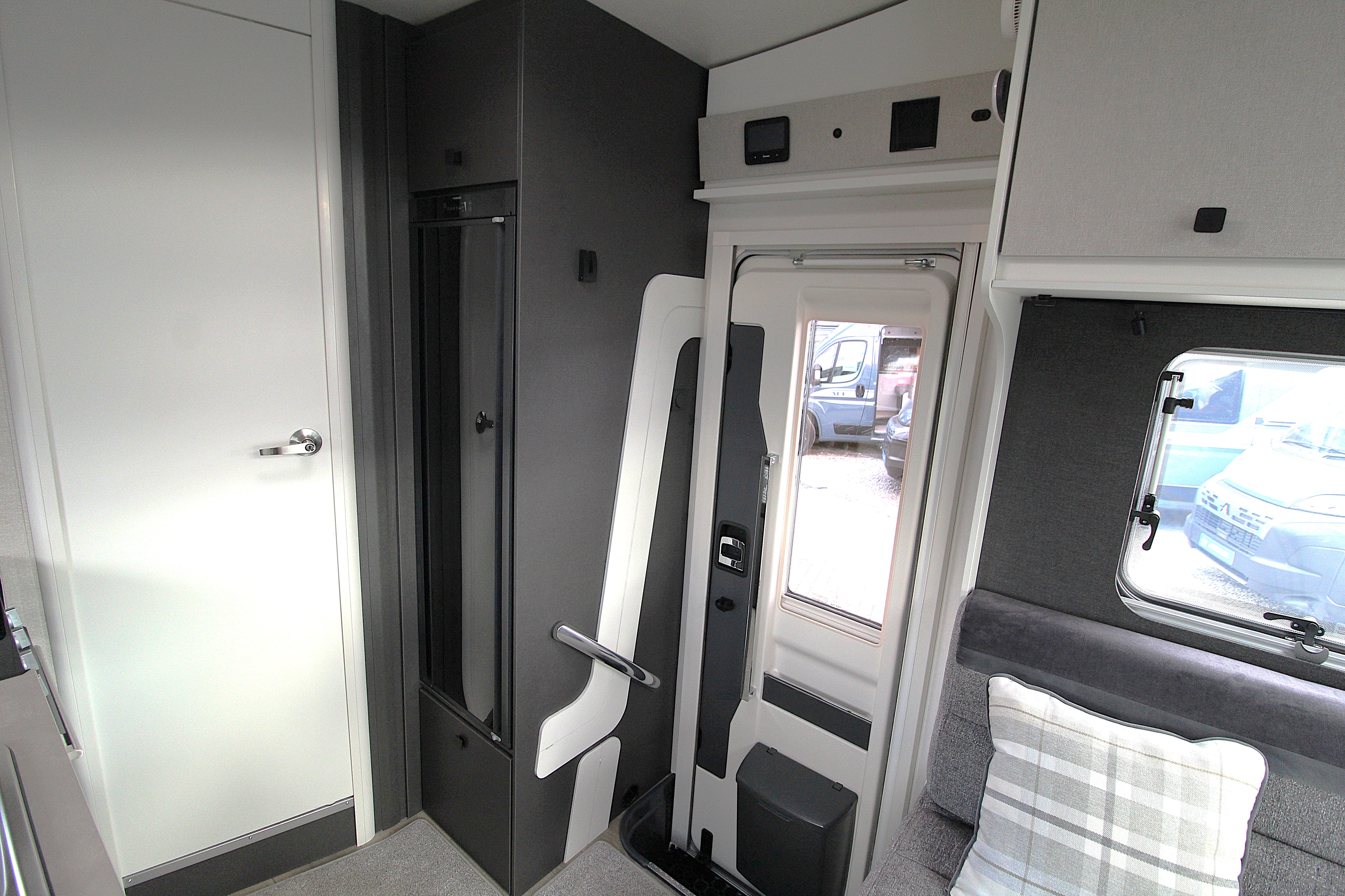 - Wide habitation door (600mm) with window, flyscreen, bin, umbrella stand and central locking