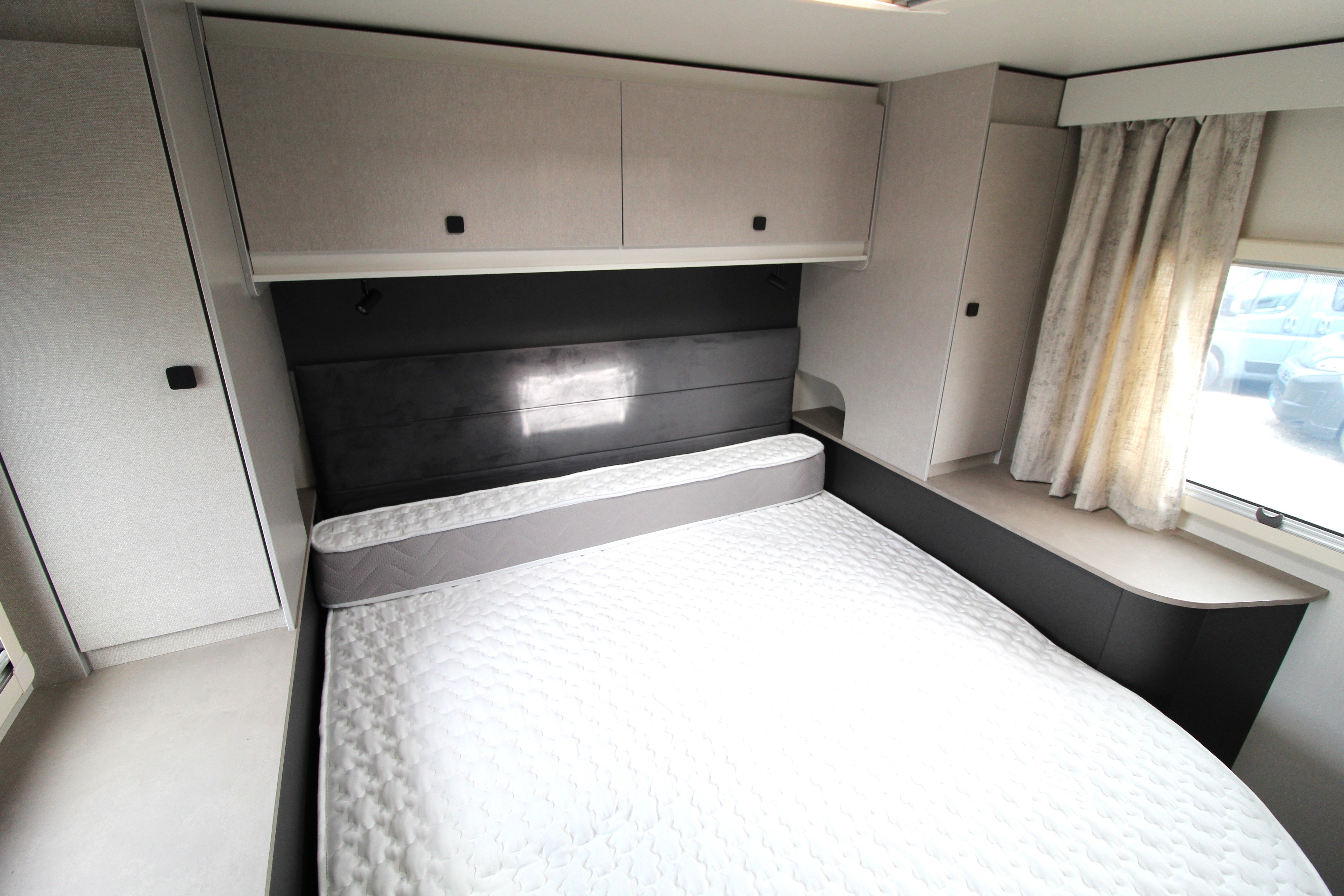 - Exterior access locker door into front bed box (2-berth only)