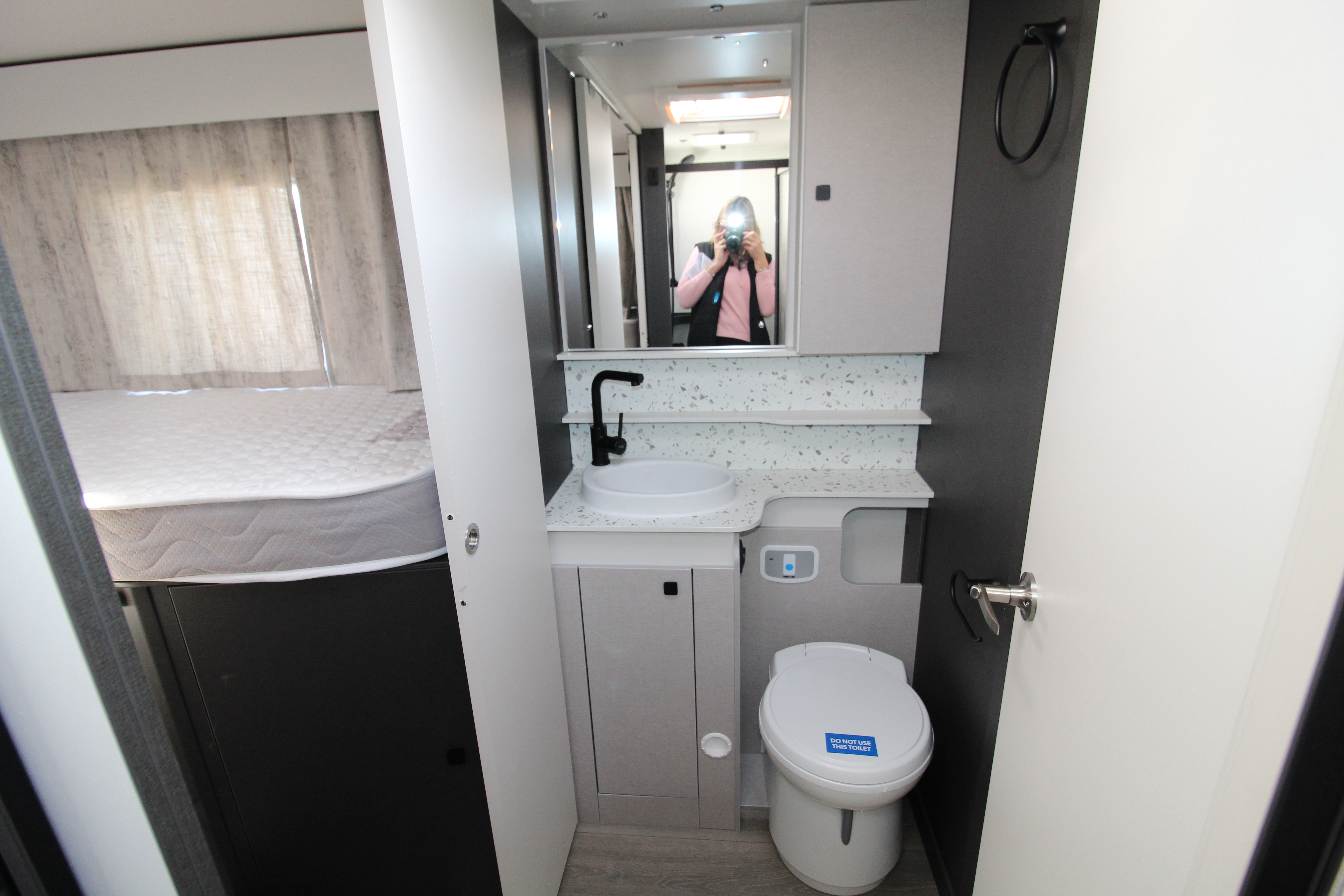 - Thetford cassette toilet with electric flush and 18 litre wheeled tank