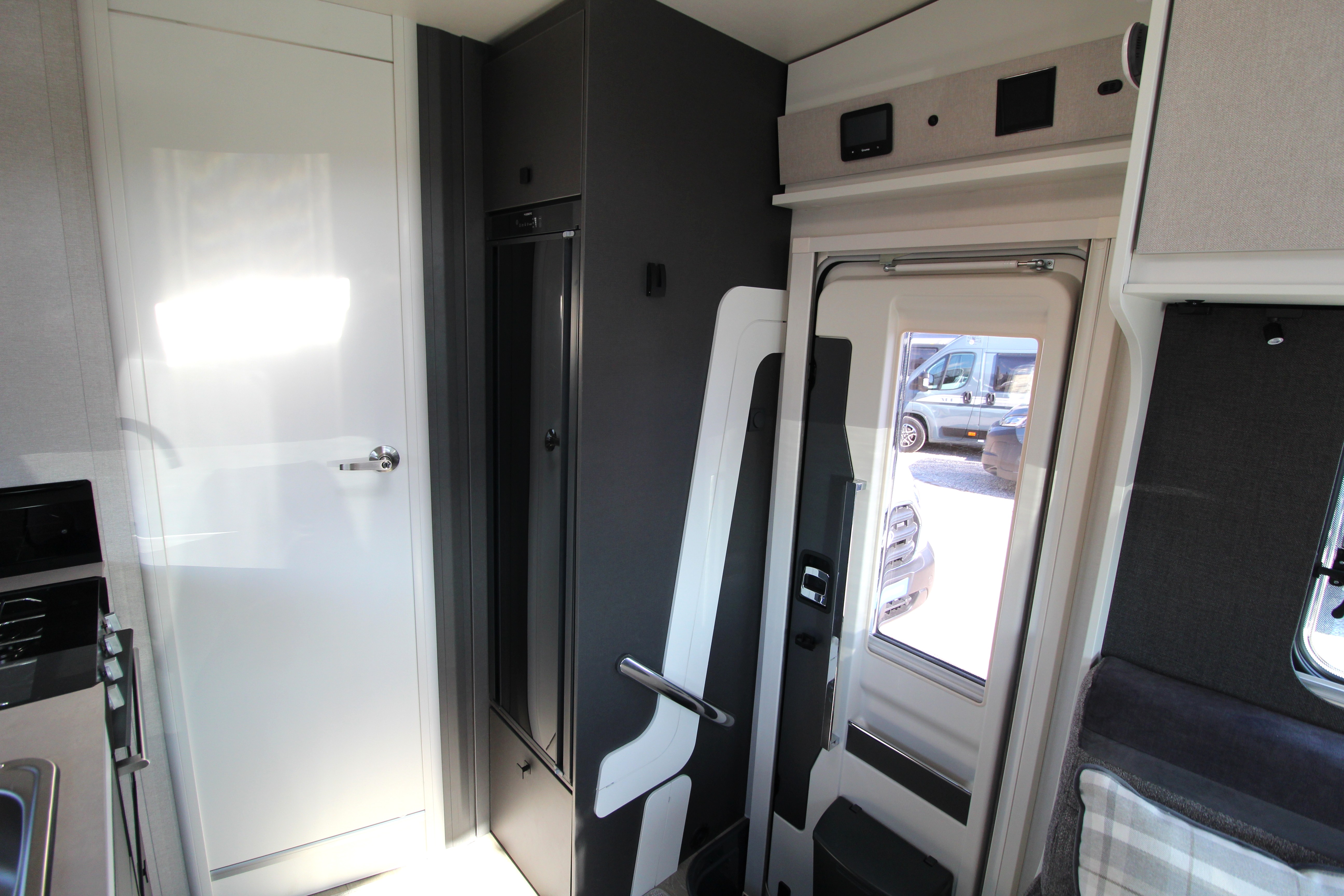 - Wide habitation door (600mm) with window, flyscreen, bin, umbrella stand and central locking