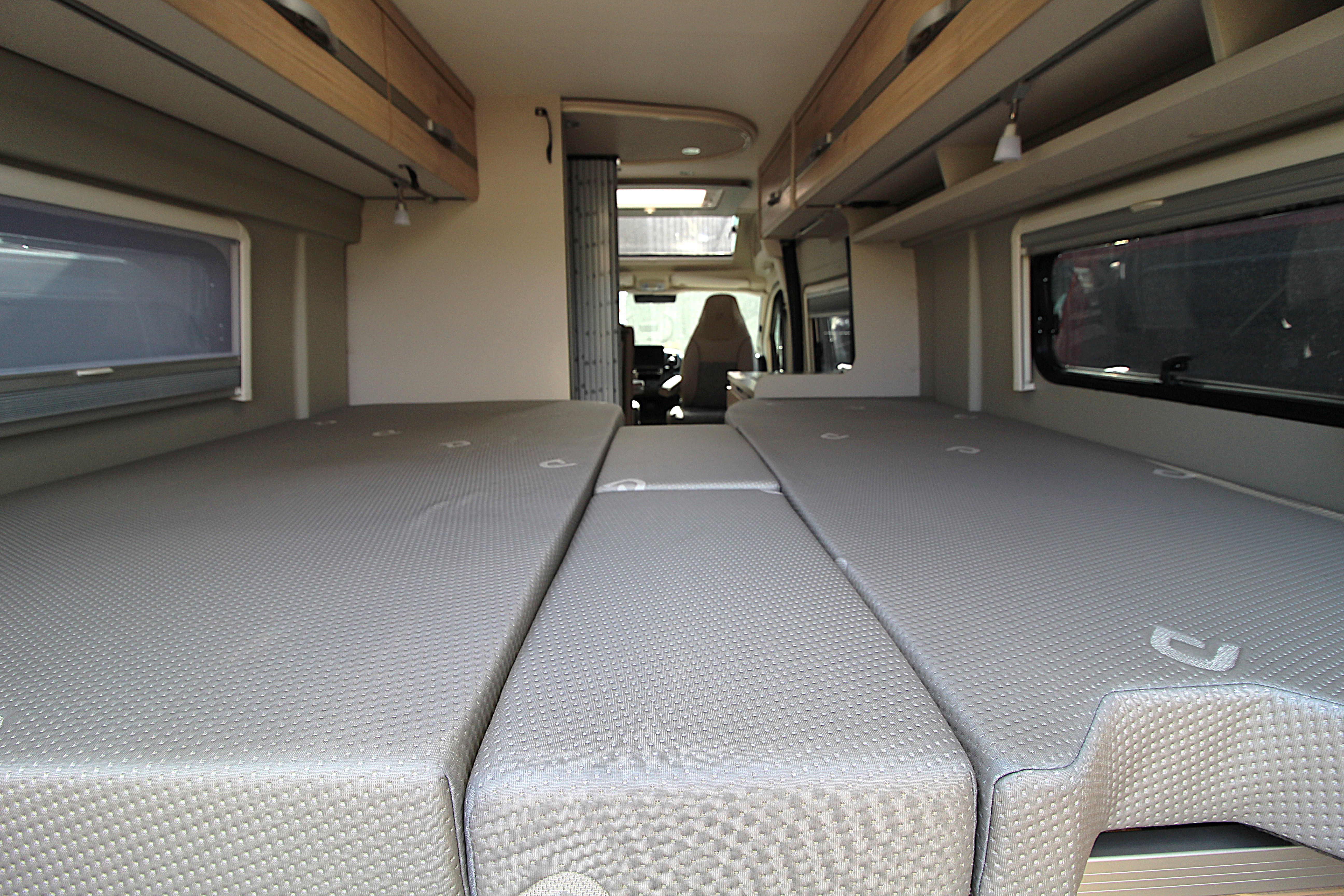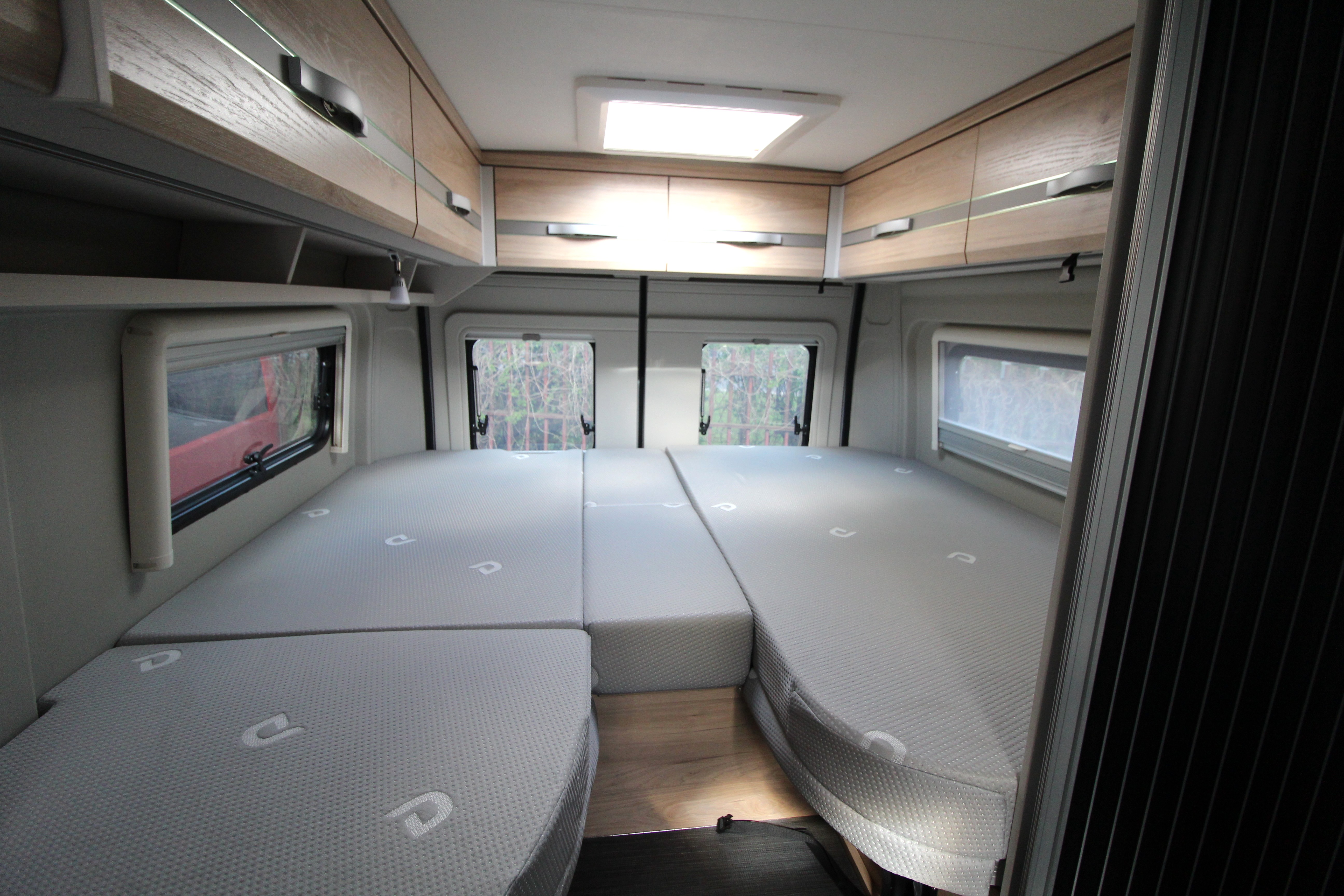 Dethleffs places great emphasis on a well-designed sleeping system. The rear sleeping area features spacious longitudinal rear beds ensuring plenty of space for everyone.