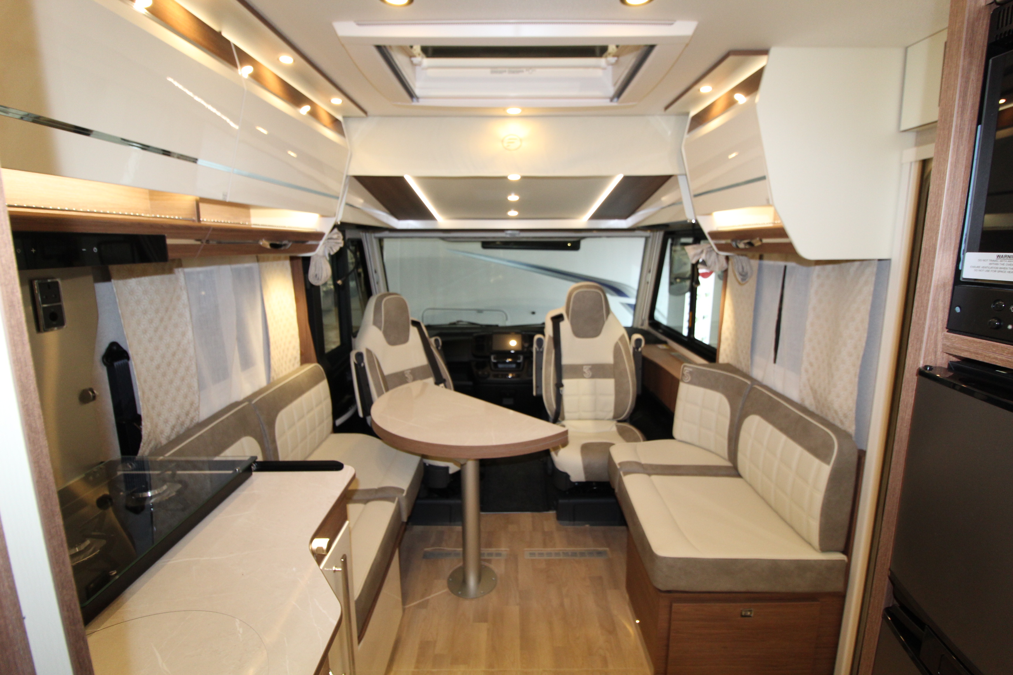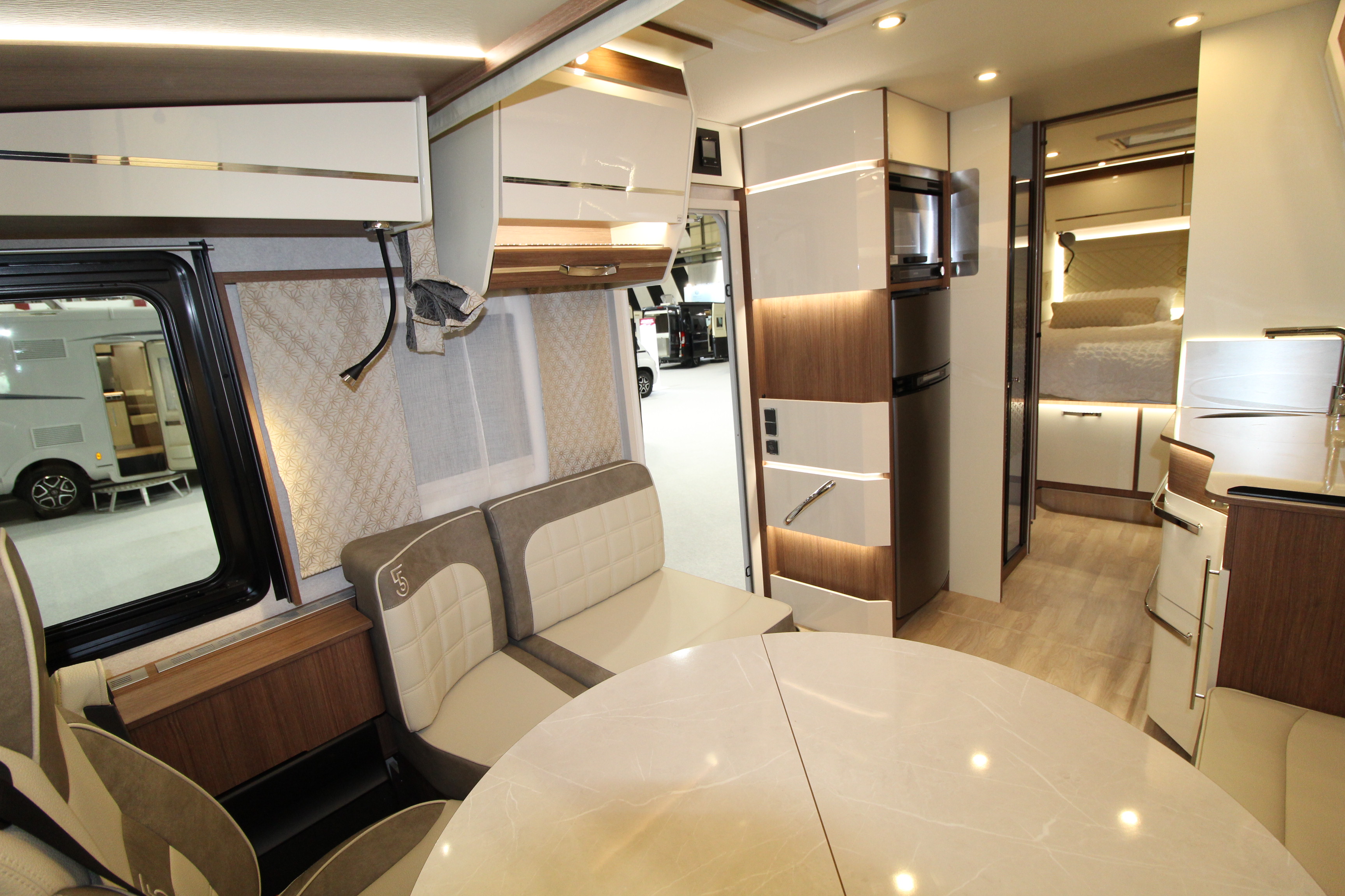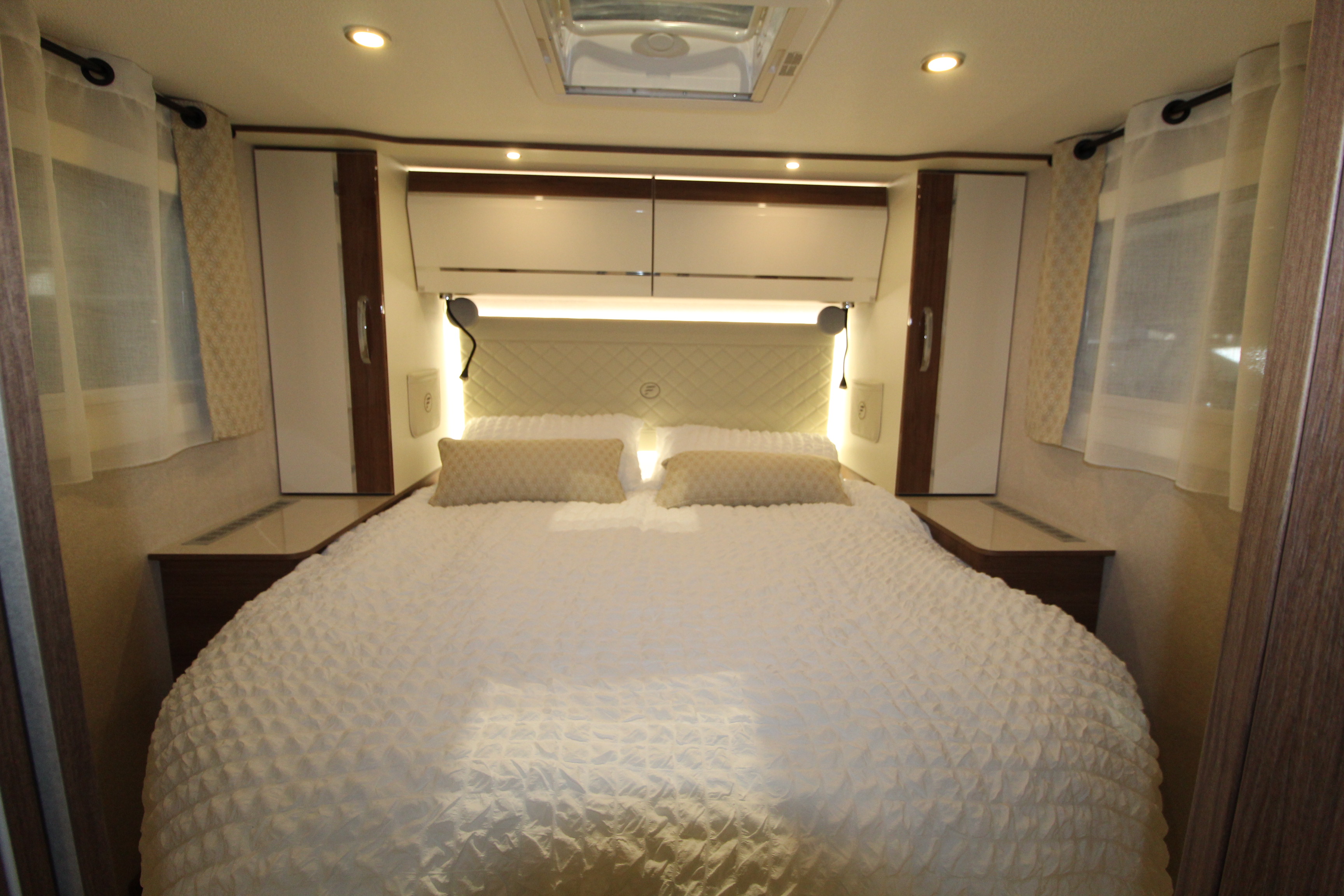 The generous Fleurette Discover 75 LMF A-Class motorhome offers high-quality and unique decor, an island bed over large garage area, on-trend face-to-face living room, dual partition shower and bathroom area and a large L-Shaped kitchen area with tall fridge.