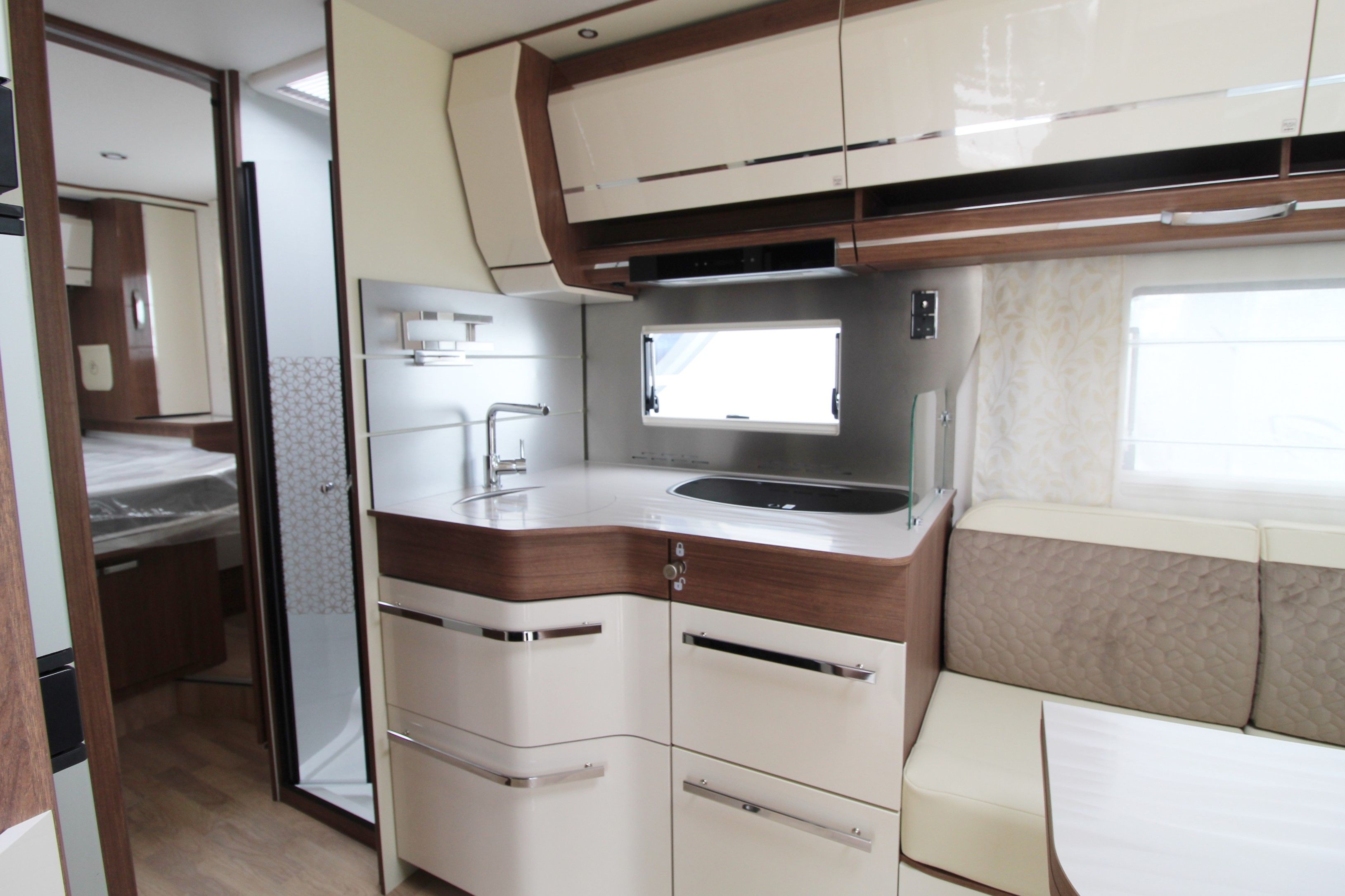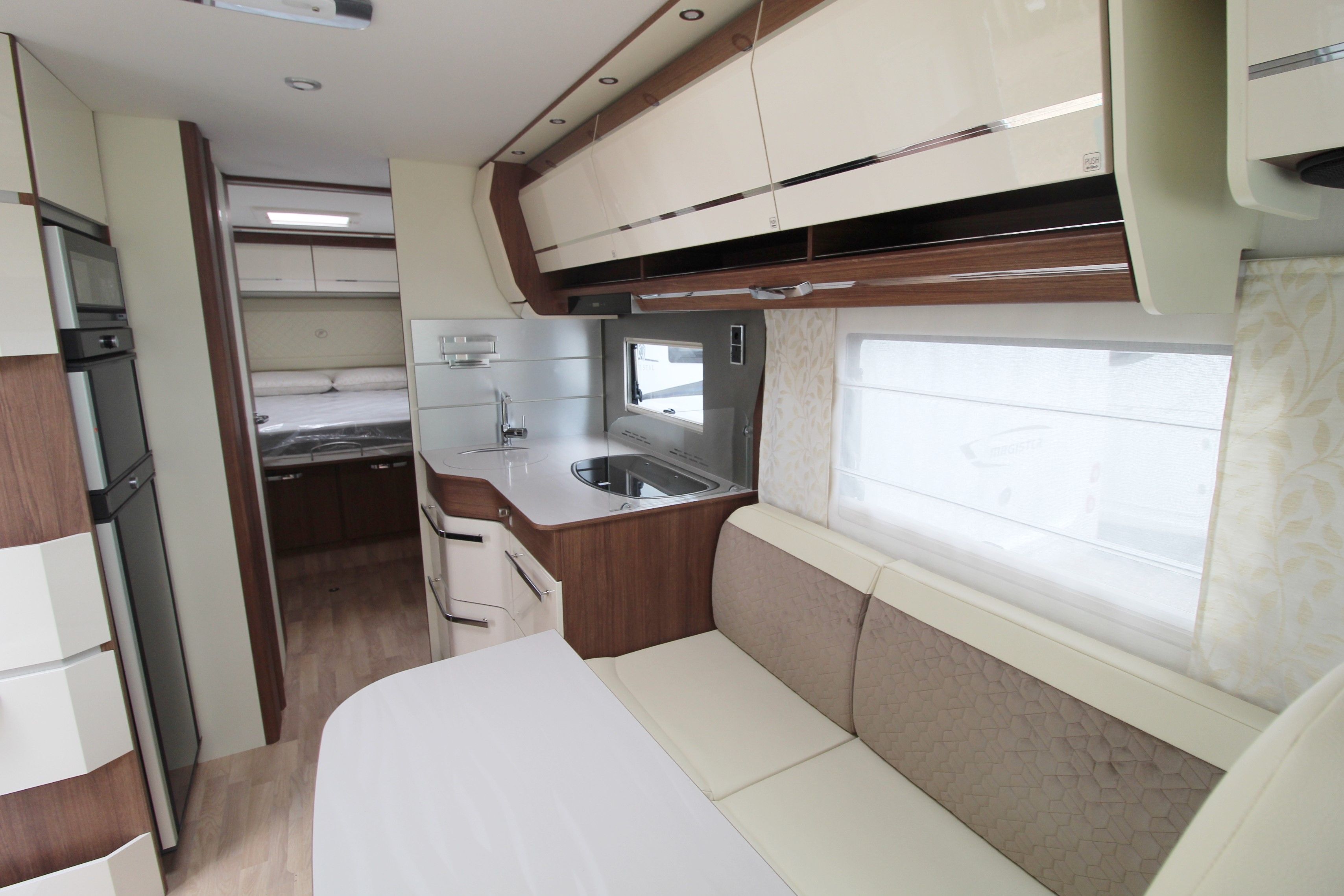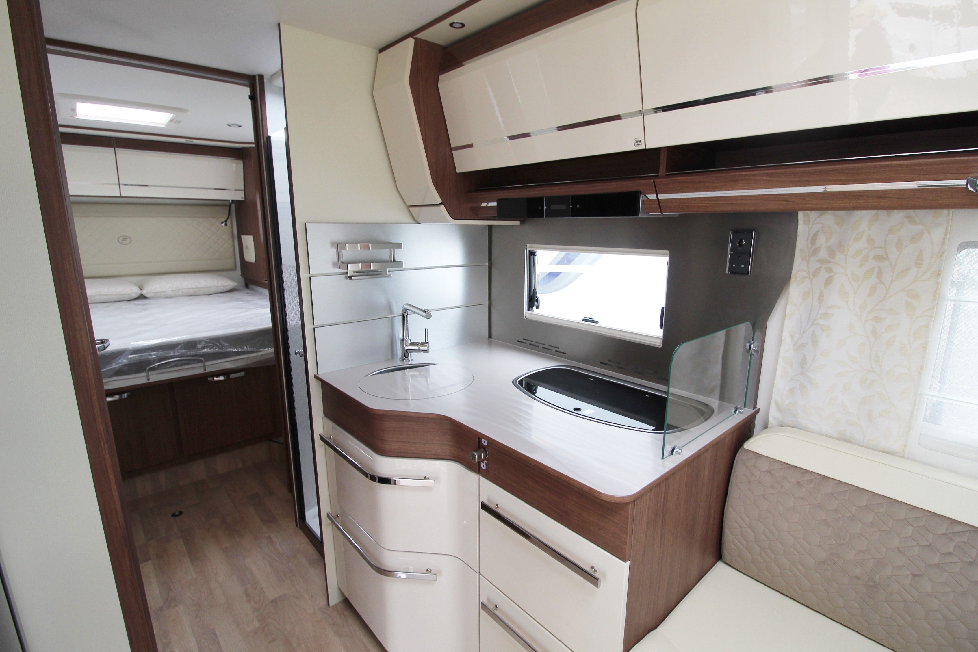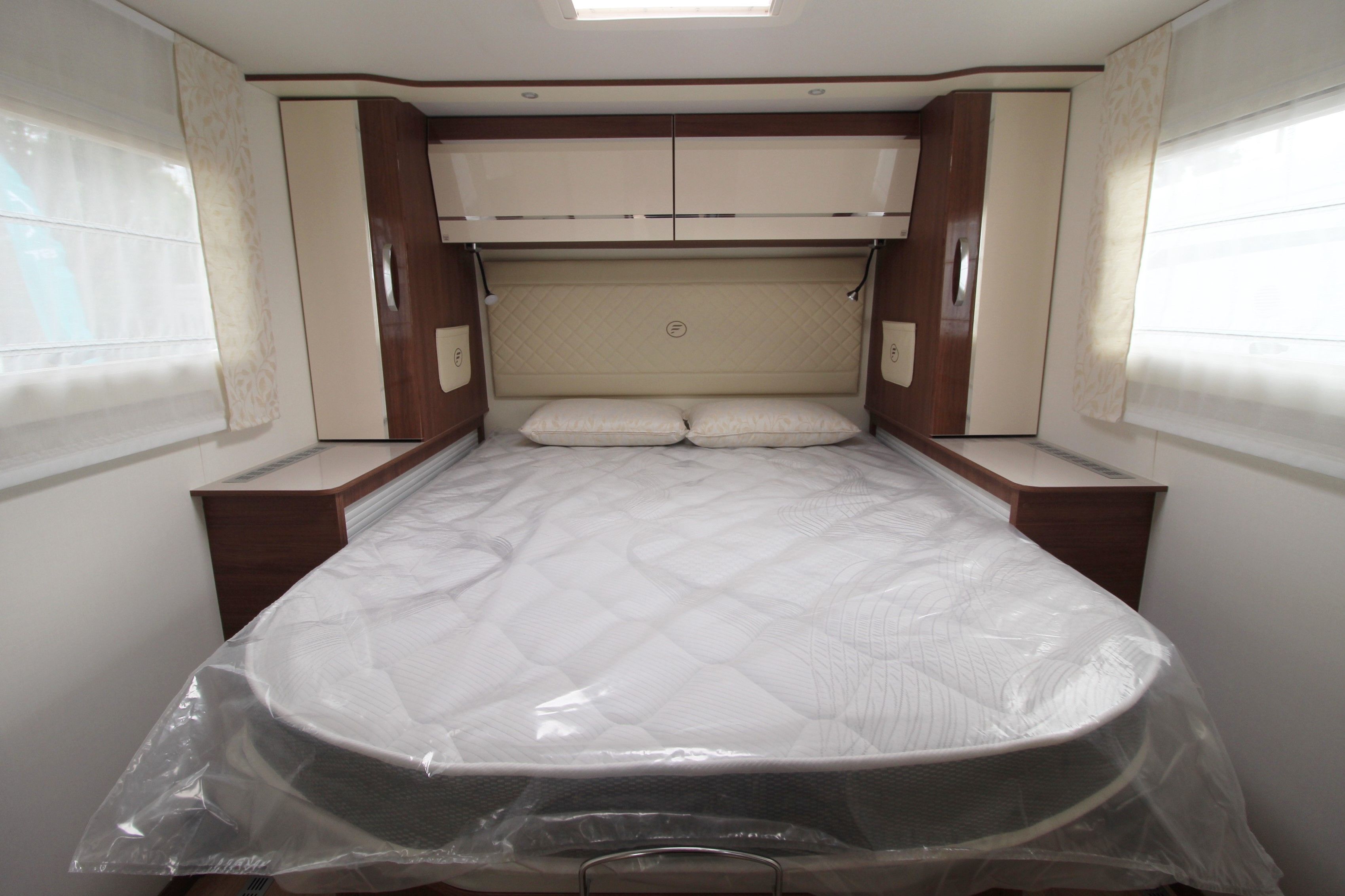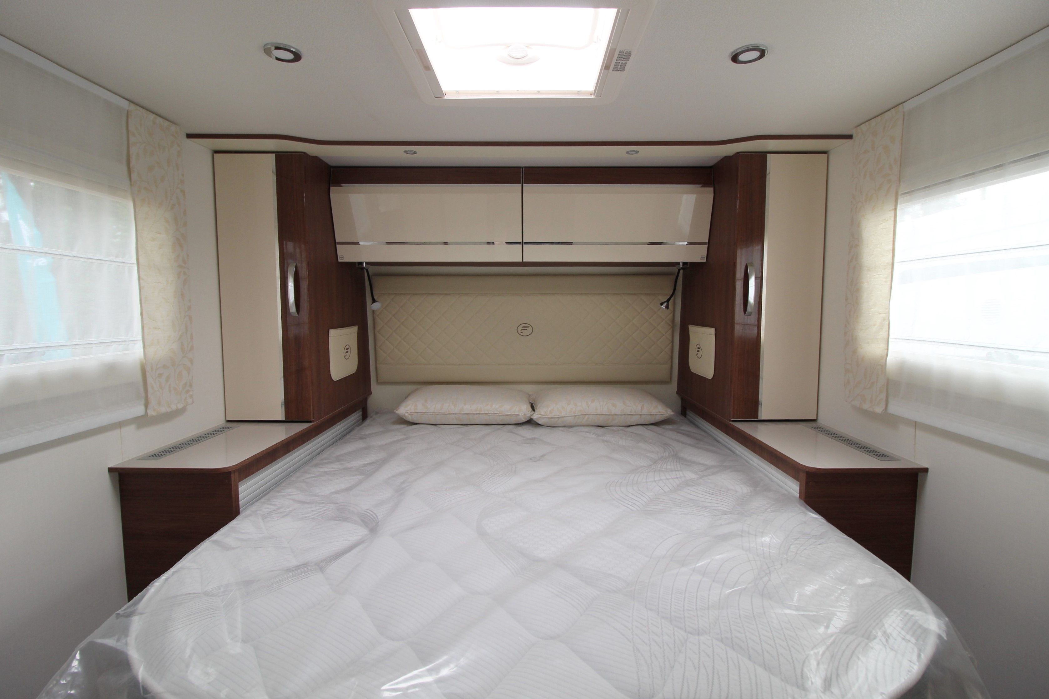 A true flagship of Fleurette Constructeur know-how, the prestigious 78 LMF is equipped accordingly: Al-Ko chassis, 16′ aluminium rims, Alde central heating system… Its warm atmosphere is adding to its unique exterior style.