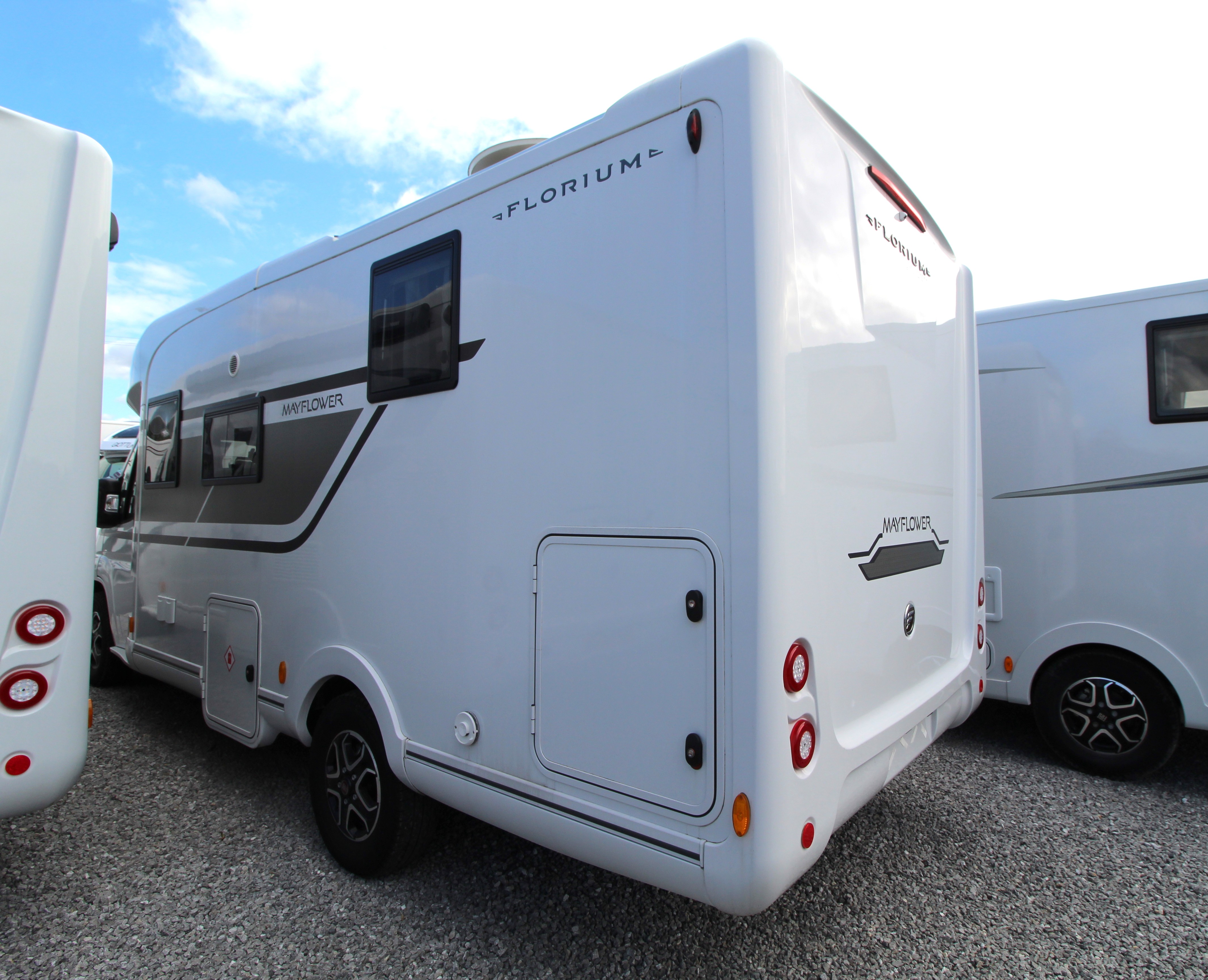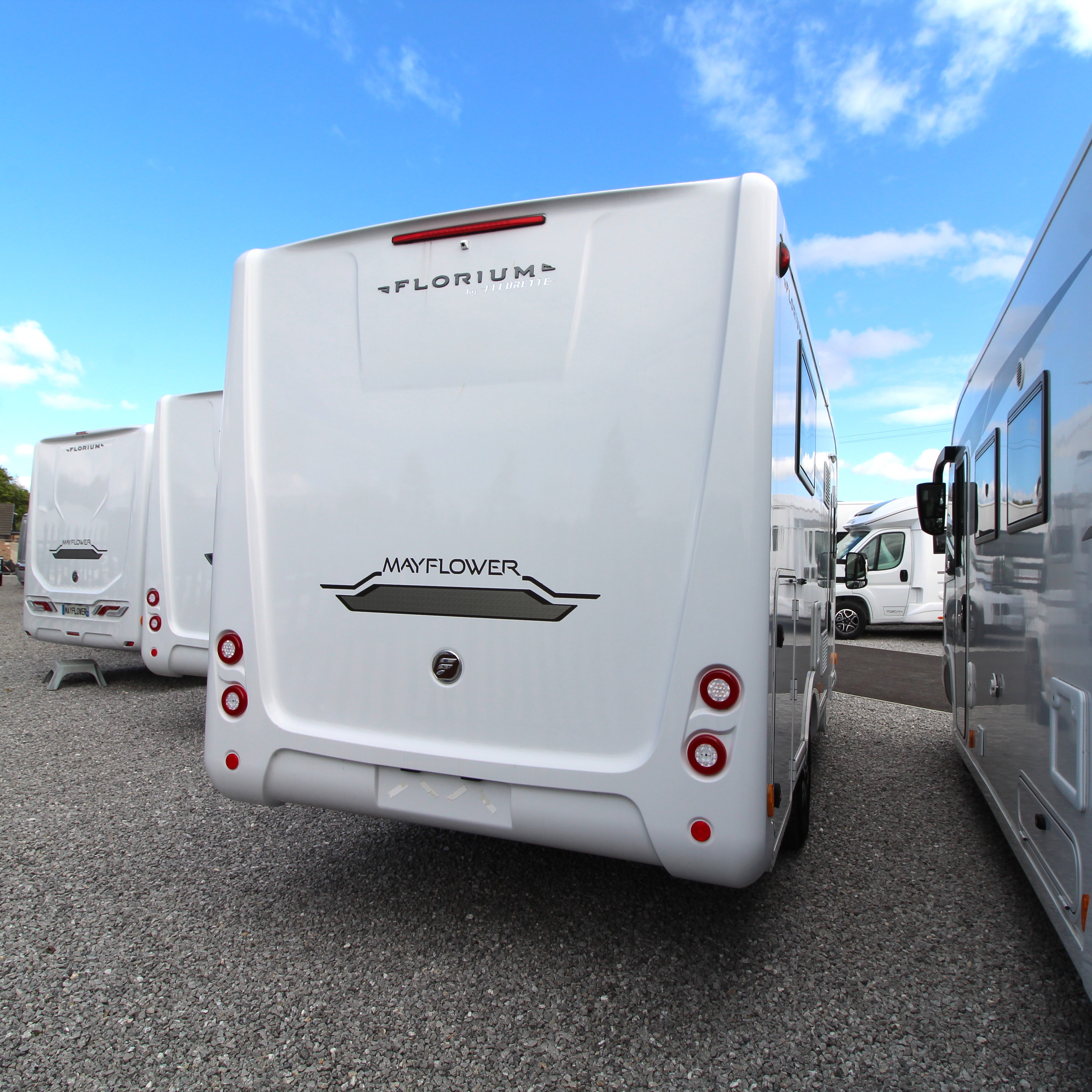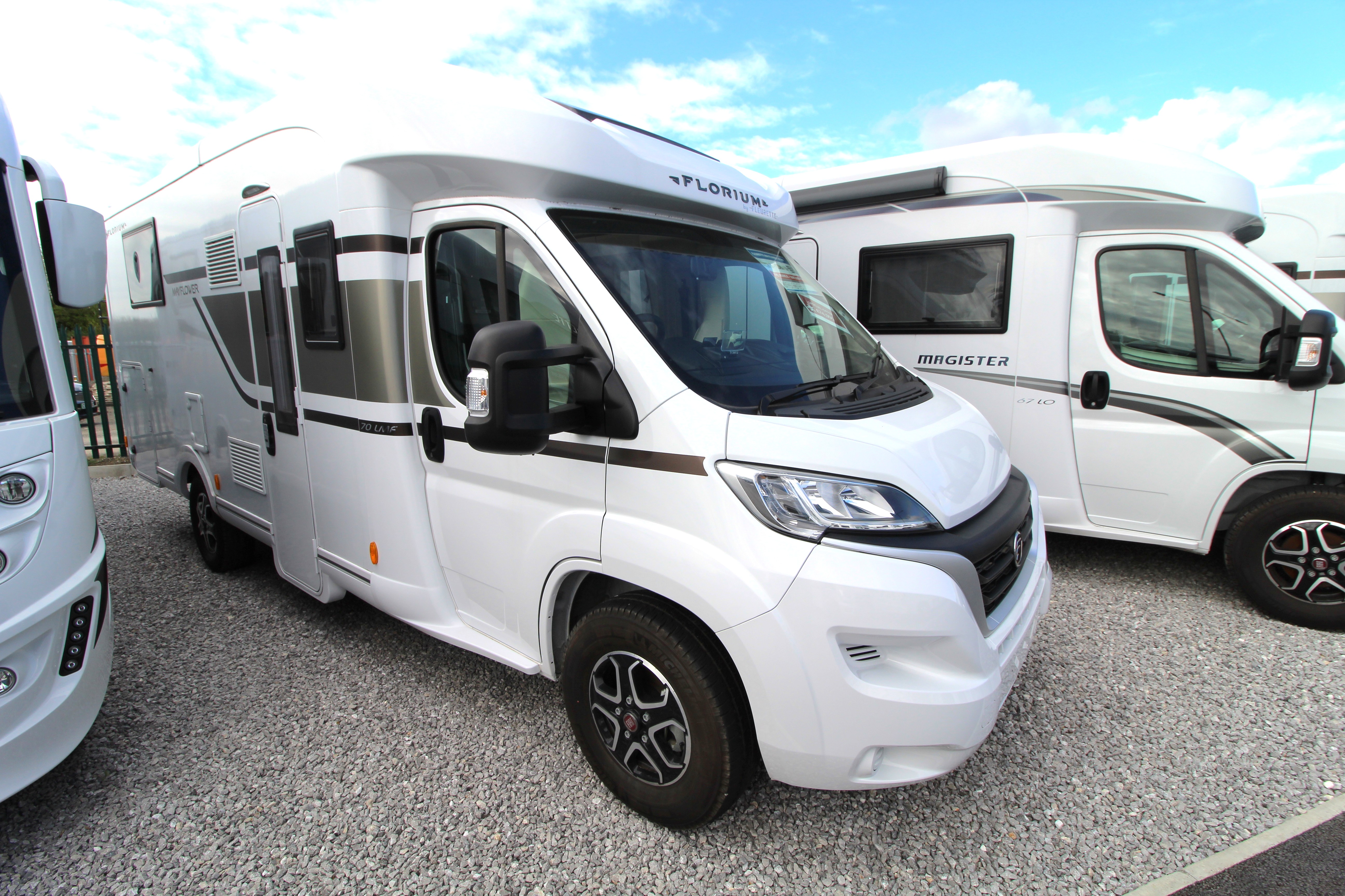 This elegant Fleurette Mayflower 70 LMF two-berth lluxury motorhome is based on a Fiat chassis and comes complete with a 9-speed automatic transmission and 180bhp. Additional features include multi-function steering wheel, navigation system, reverse camera, solar panel and a satellite dish.