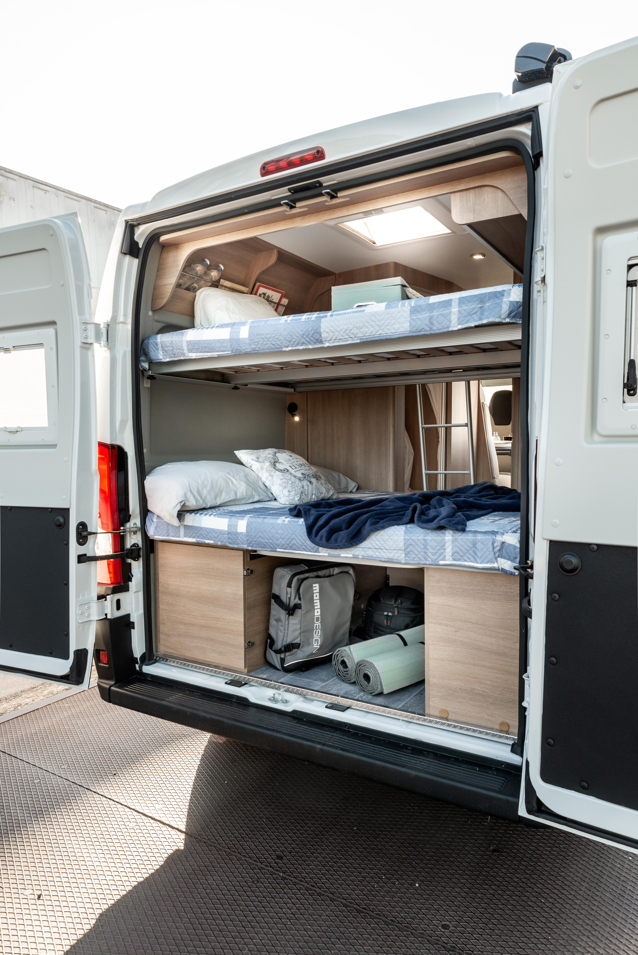 Smart Family Layout: Featuring a clever rear double bunk bed system (186 x 133 cm lower / 186 x 124 cm upper), comfortably sleeping up to 4 people. Remove the lower bed to create a large garage for sports gear (bikes, boards, etc.).