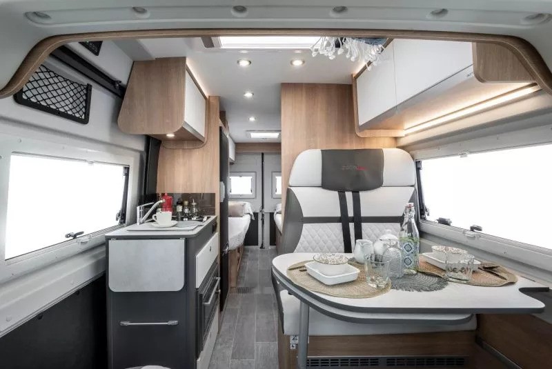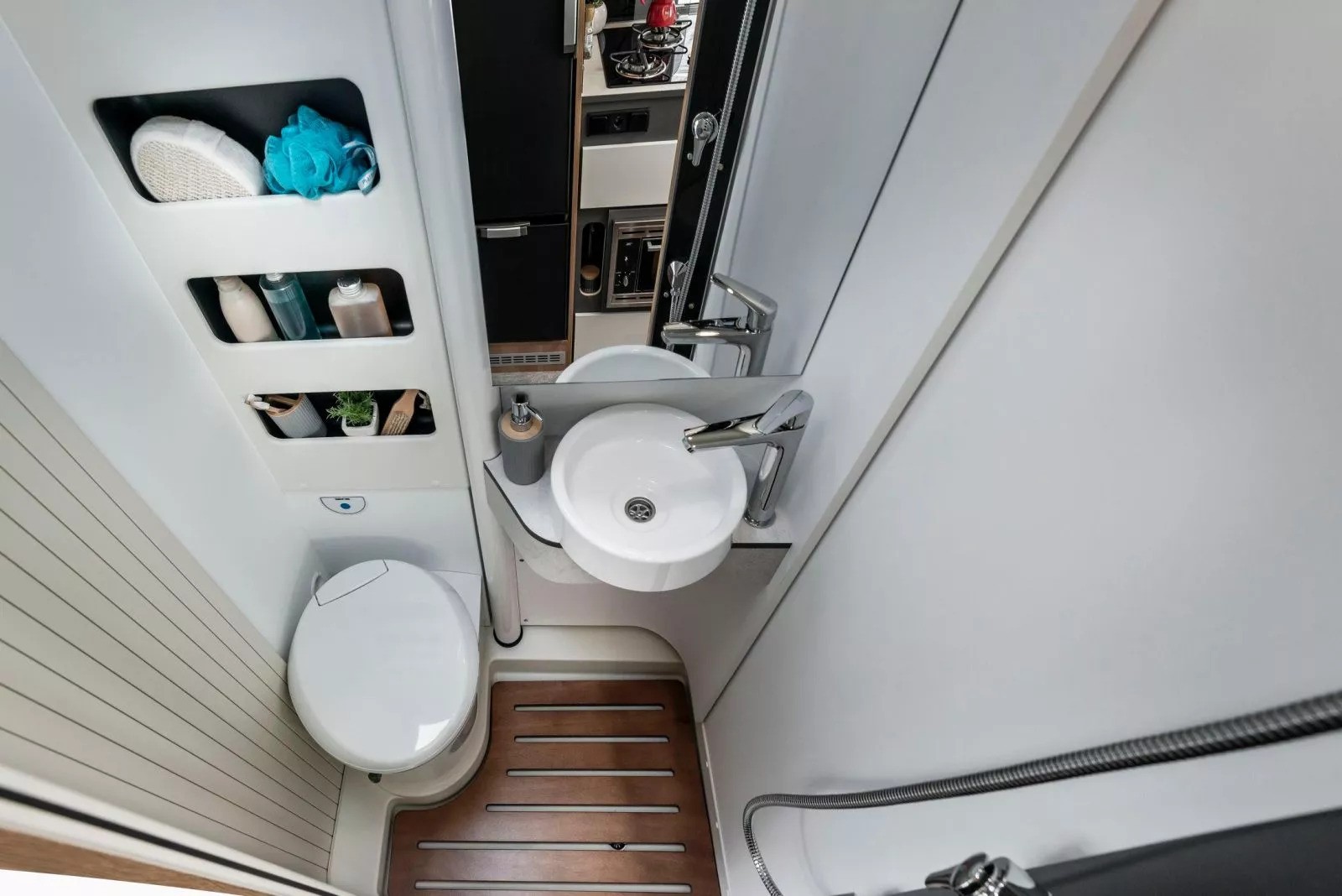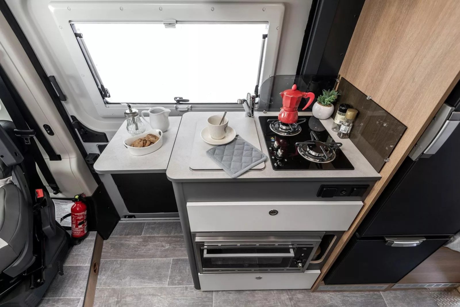 Maximum Storage: A central aisle and generous under-bed cupboards provide ample storage space, and ease of access for travelling with bikes, outdoor gear, and long-term travel essentials.