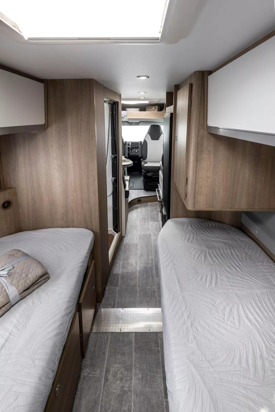XXL Sleeping Comfort: The rear features fixed single beds that easily convert into an XXL king-size bed (up to 209cm long), supported by a new retractable slatted base system.