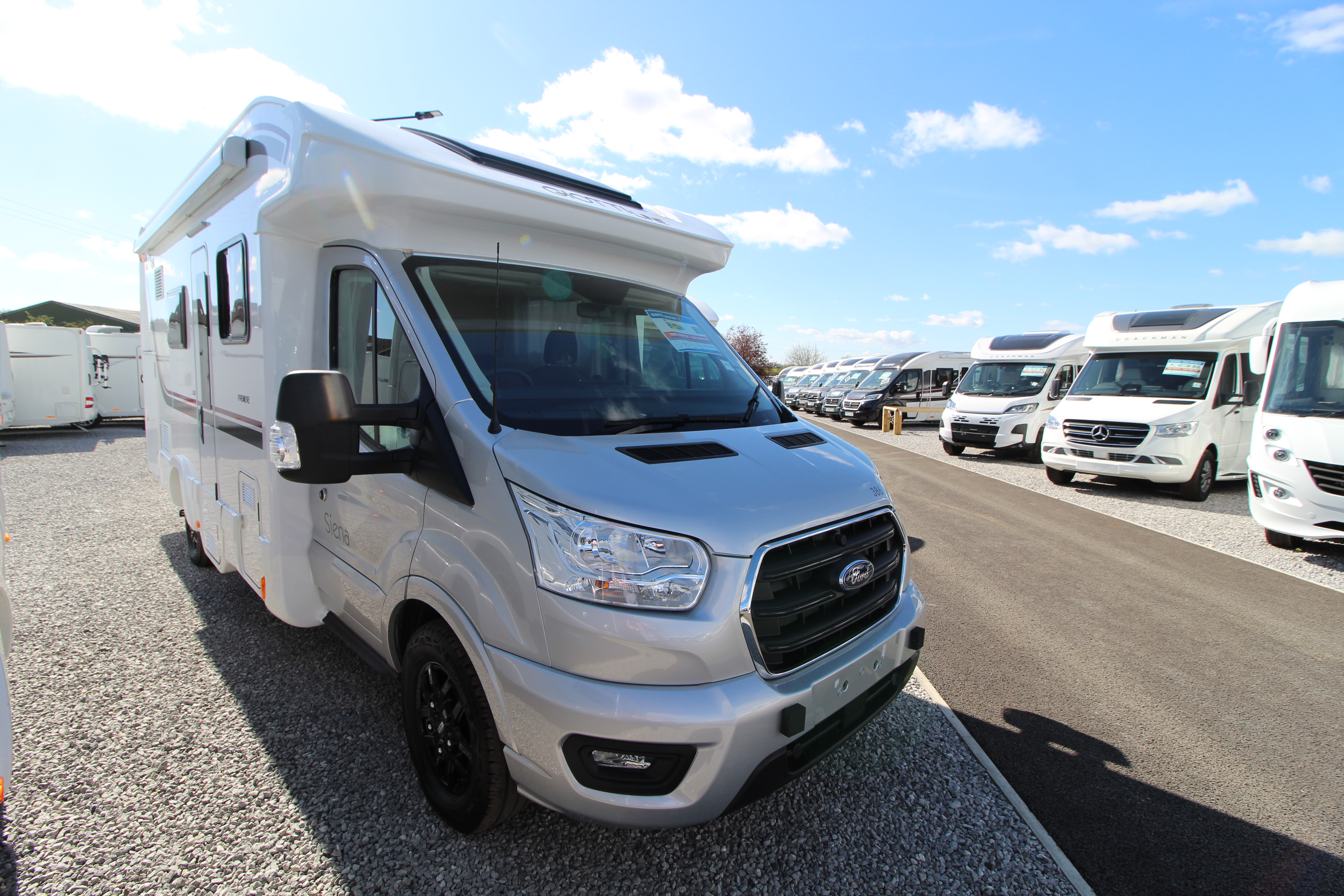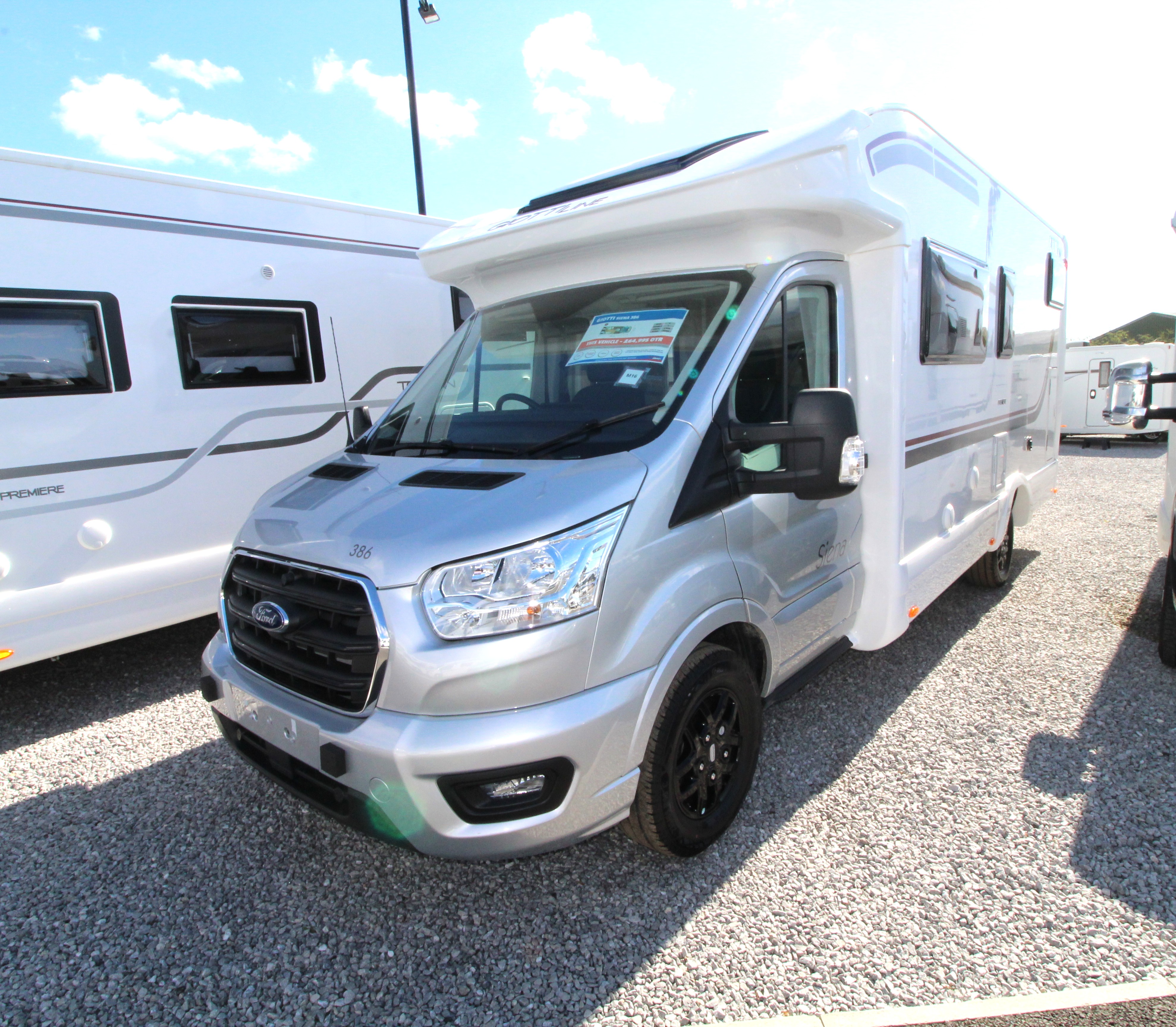 The 2024 Giottiline Siena 386 is a versatile, coachbuilt family motorhome built on a Ford Transit chassis. It is designed as a high-capacity 5-berth vehicle as standard, with a 6-berth option, making it ideal for family travel.