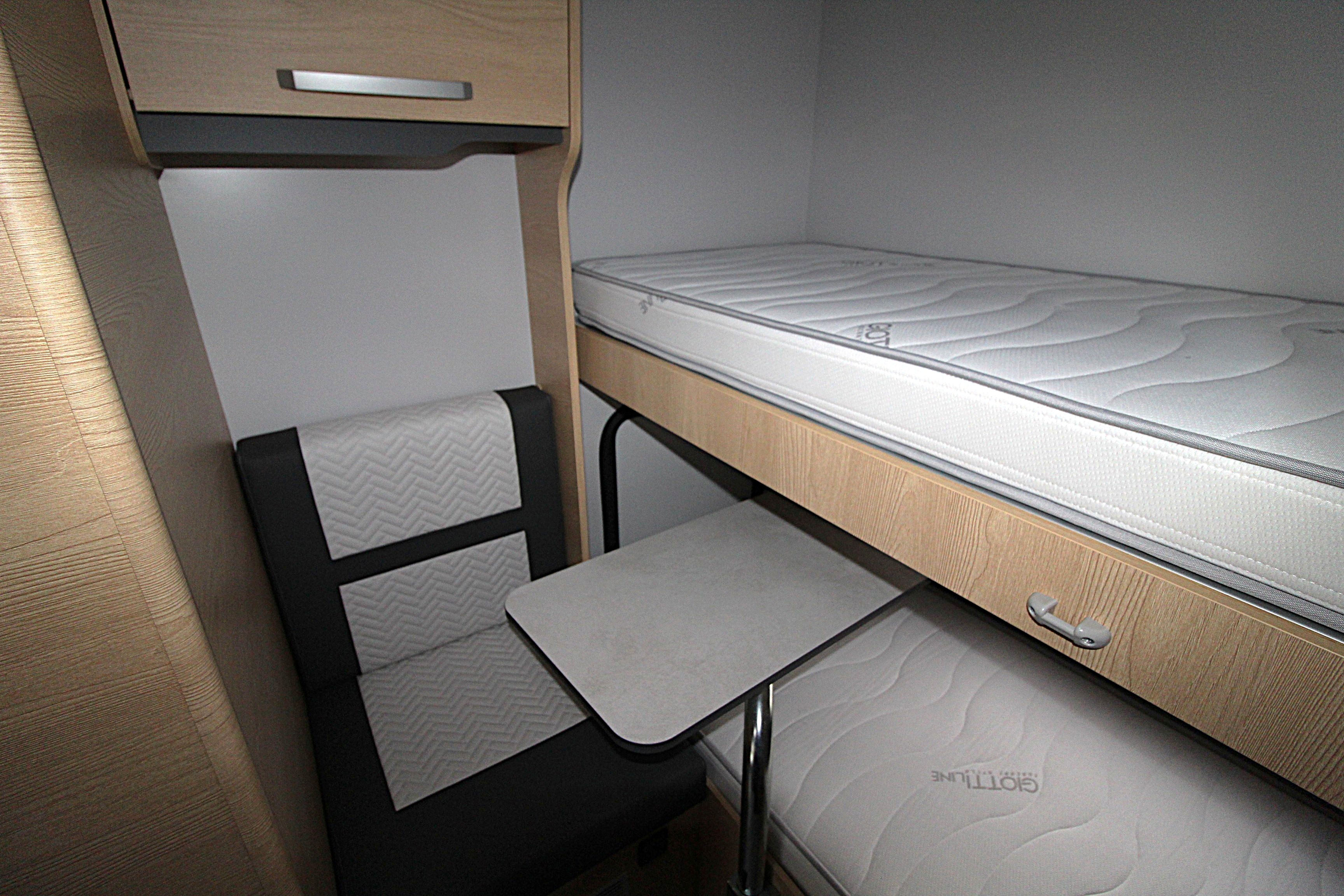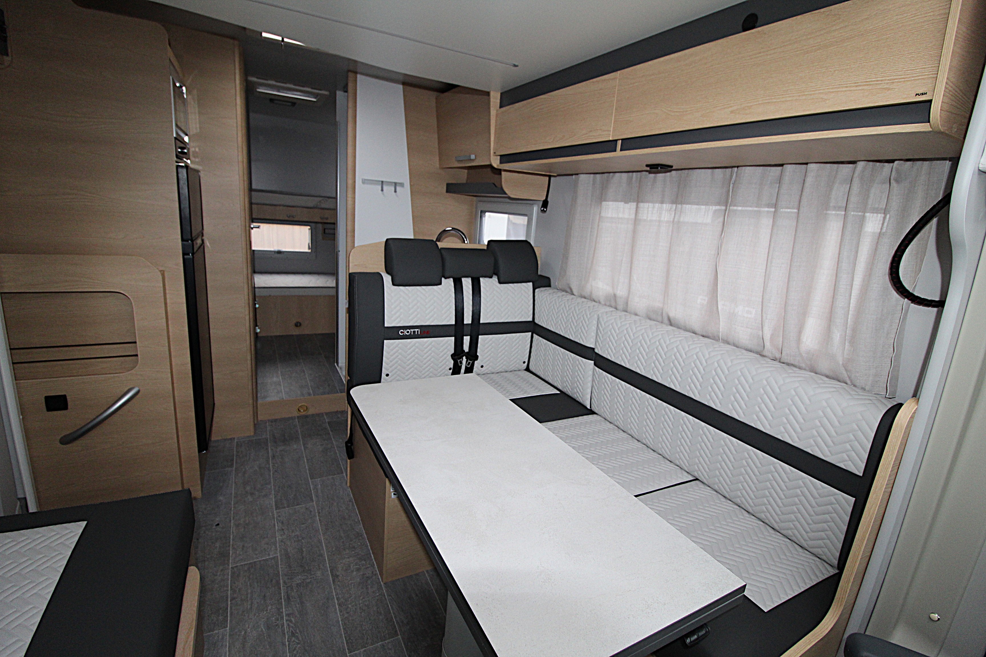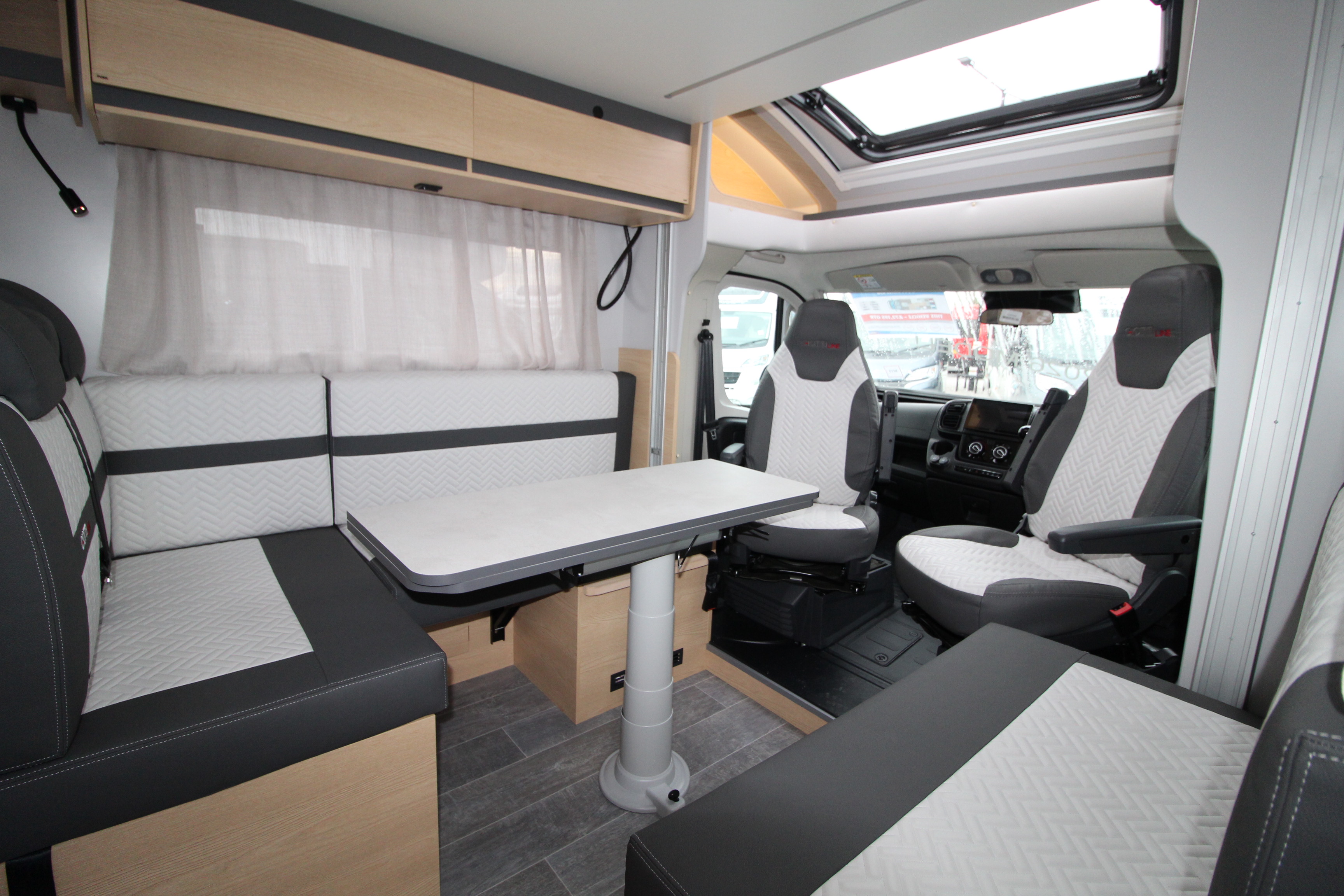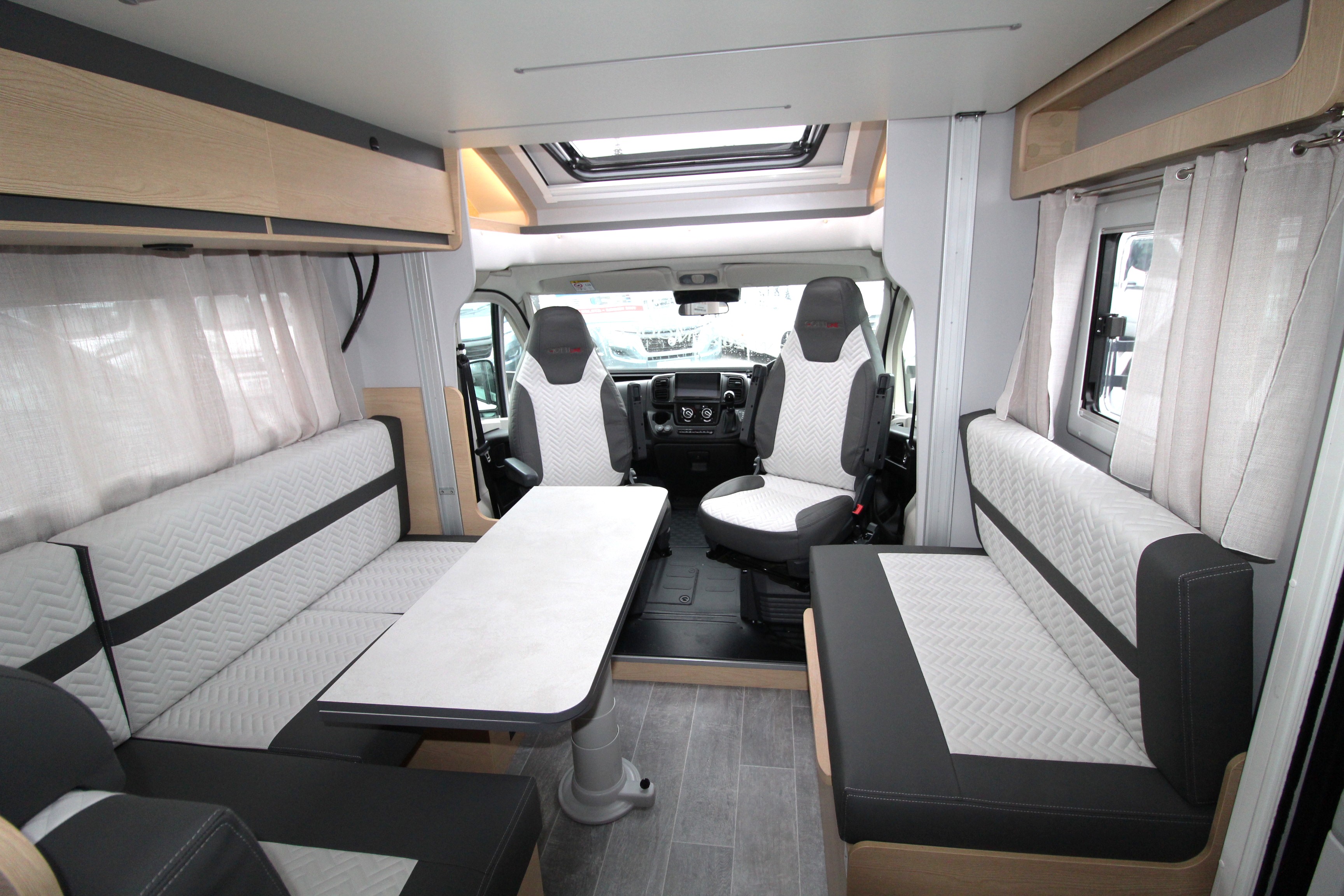 The Siena 396 premier is the perfect low-profile motorhome for families seeking space, comfort, and smart functionality. At 7.40 metres long, it features a clever layout with rear twin beds that can be joined, a separate shower box, and a spacious living area. The face-to-face dinette seats up to five and converts into a bed, while the electric drop-down bed offers even more sleeping space. A large rear garage, accessible from both sides, makes it easy to bring everything needed for long journeys.