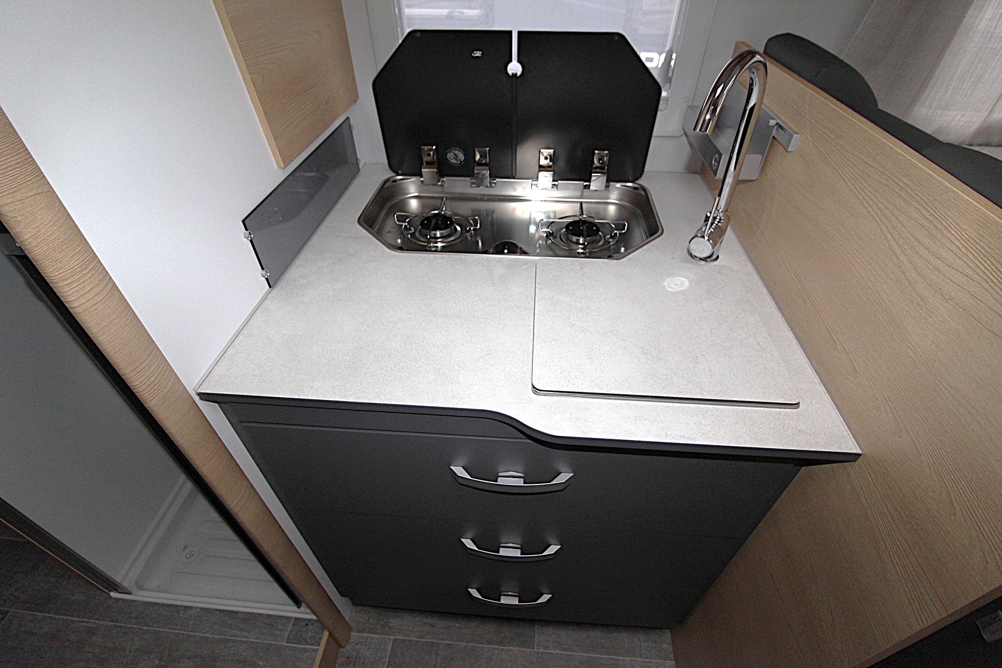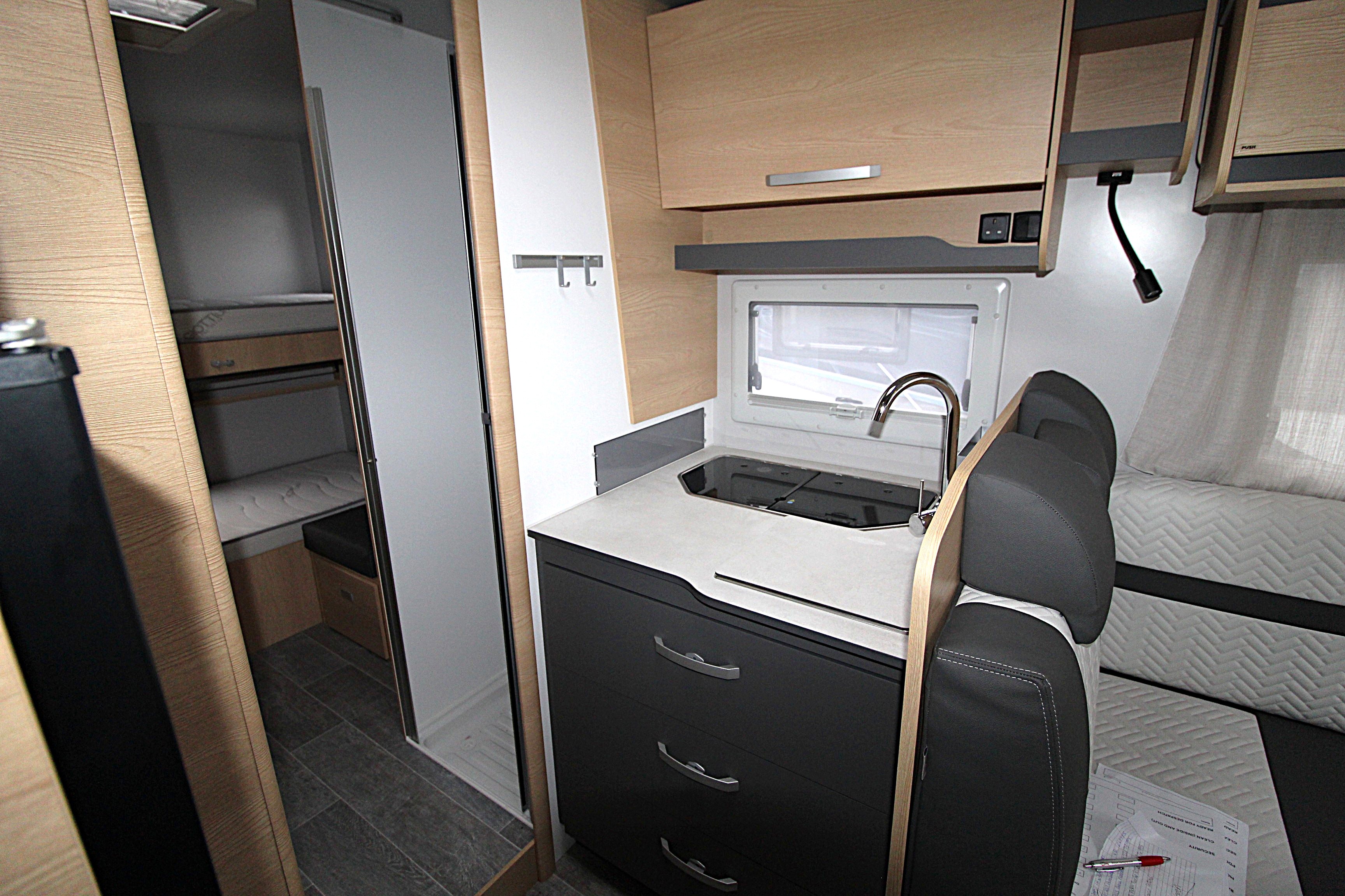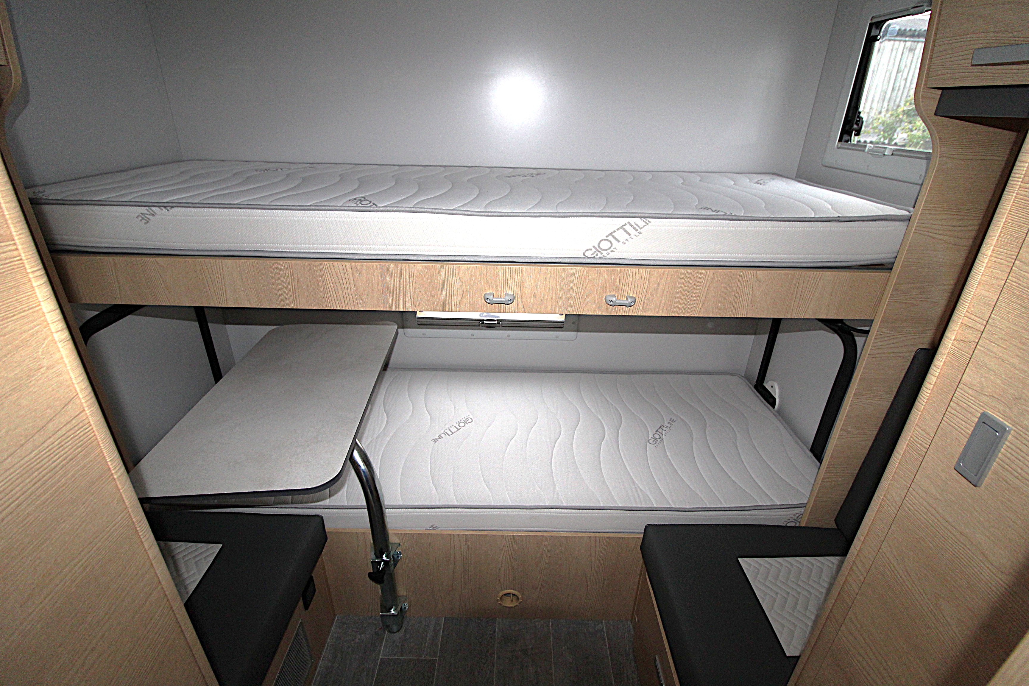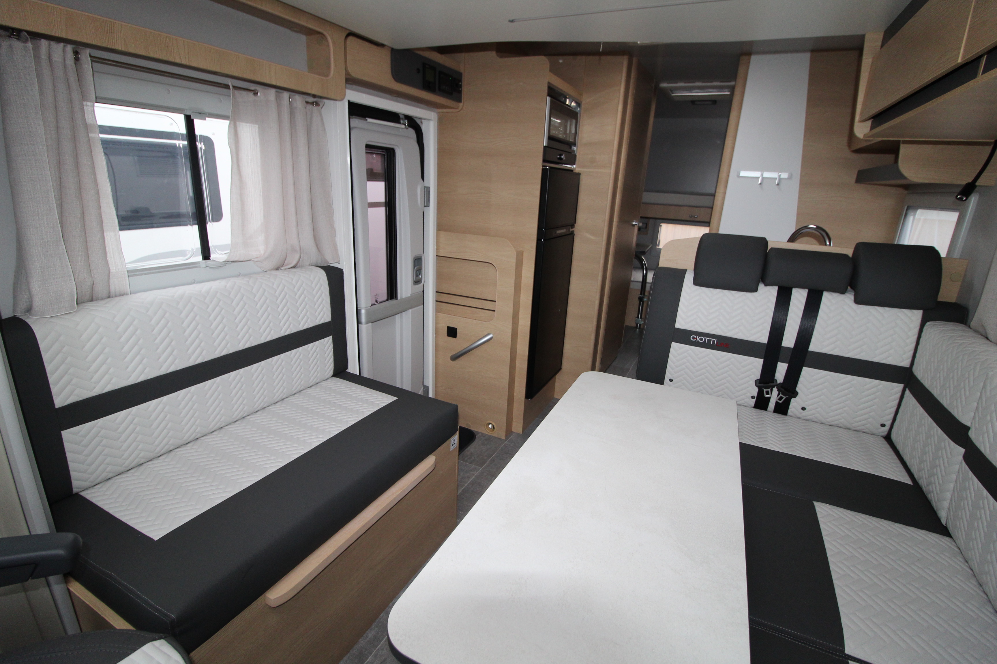 The Siena 396 premier is the perfect low-profile motorhome for families seeking space, comfort, and smart functionality. At 7.40 metres long, it features a clever layout with rear twin beds that can be joined, a separate shower box, and a spacious living area. The face-to-face dinette seats up to five and converts into a bed, while the electric drop-down bed offers even more sleeping space. A large rear garage, accessible from both sides, makes it easy to bring everything needed for long journeys.