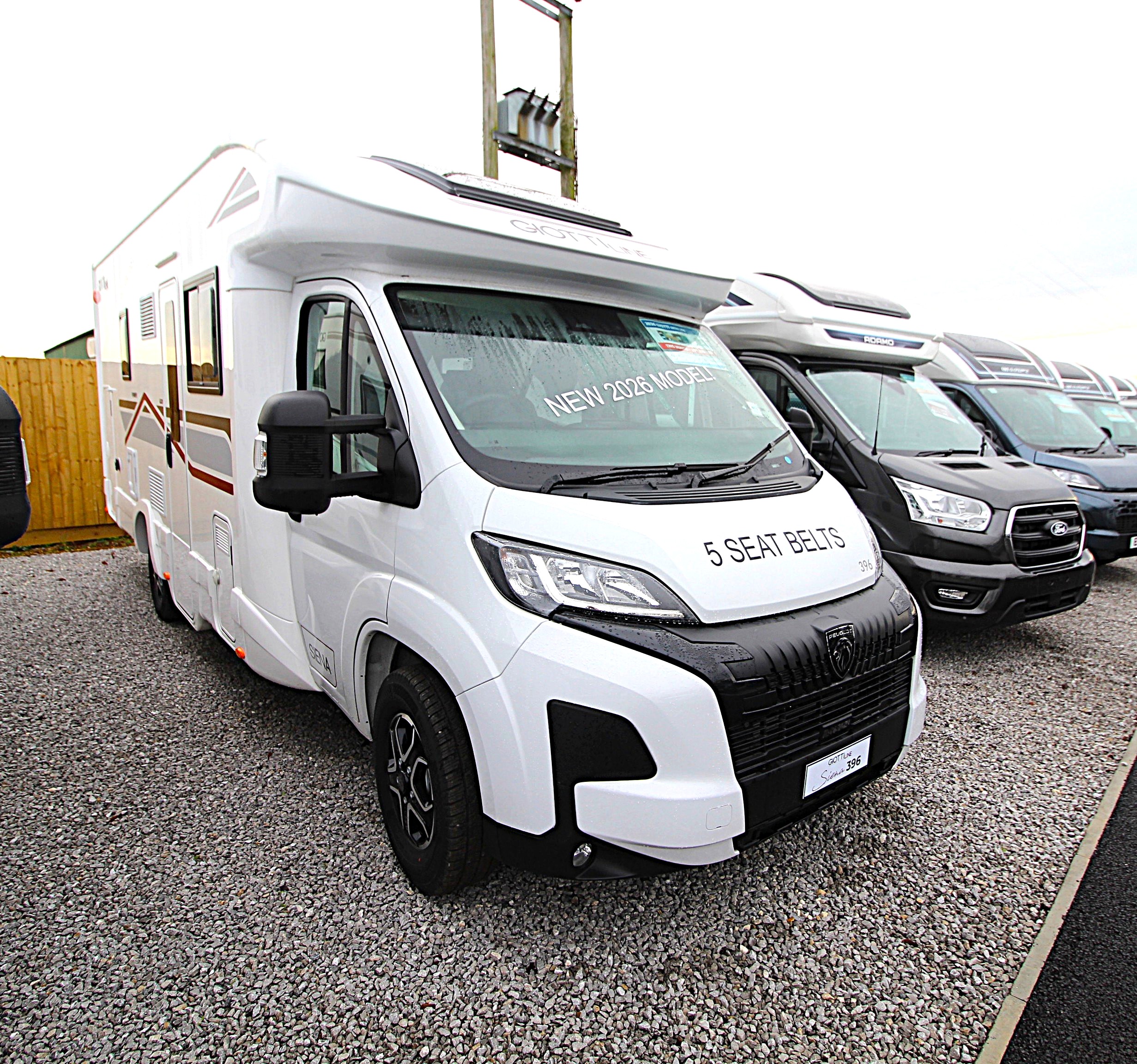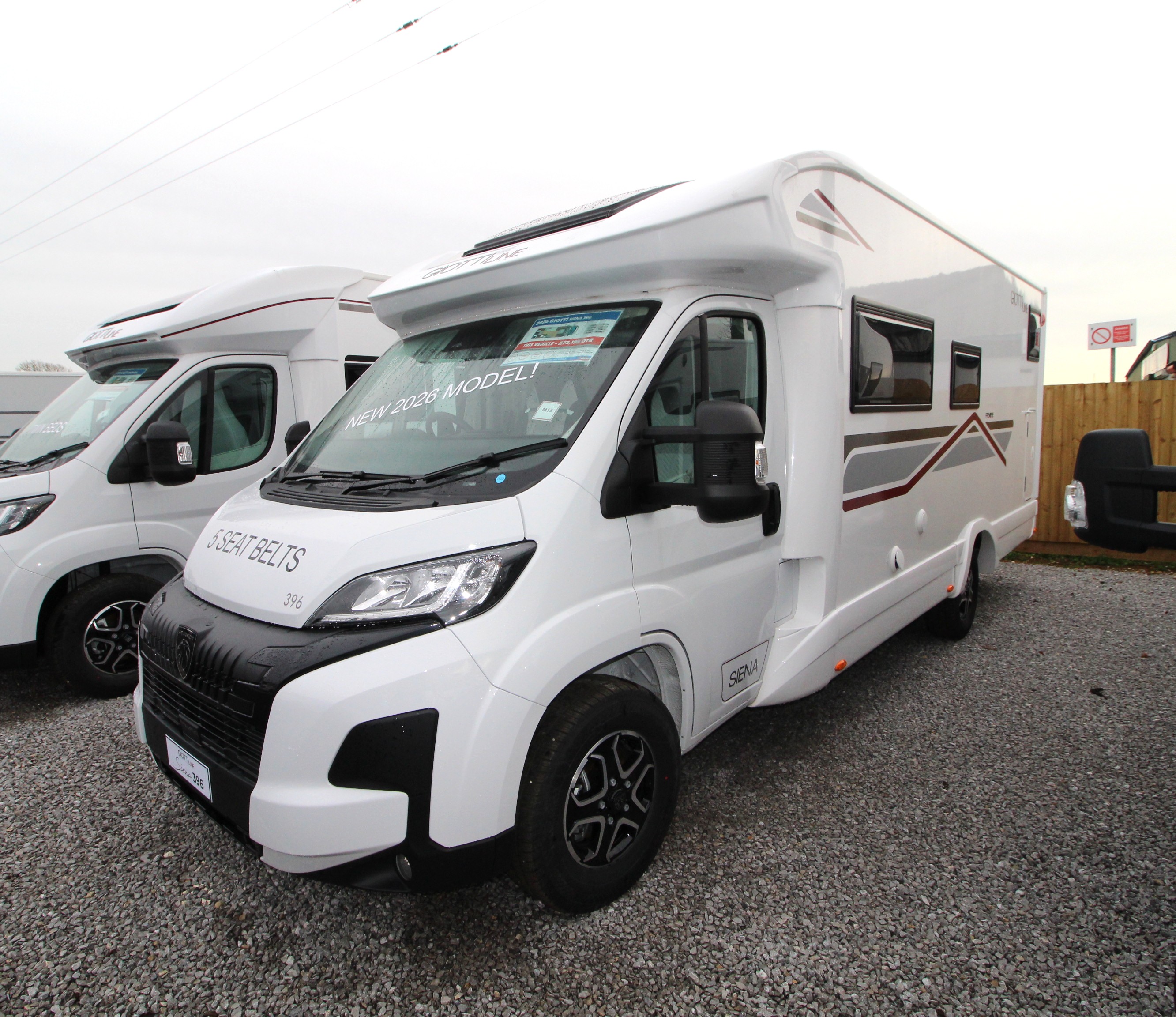 The Siena 396 is the perfect low-profile motorhome for families seeking space, comfort, and smart functionality. At 7.40 metres long, it features a clever layout with rear twin beds that can be joined, a separate shower box, and a spacious living area. The face-to-face dinette seats up to five and converts into a bed, while the electric drop-down bed offers even more sleeping space. A large rear garage, accessible from both sides, makes it easy to bring everything needed for long journeys.