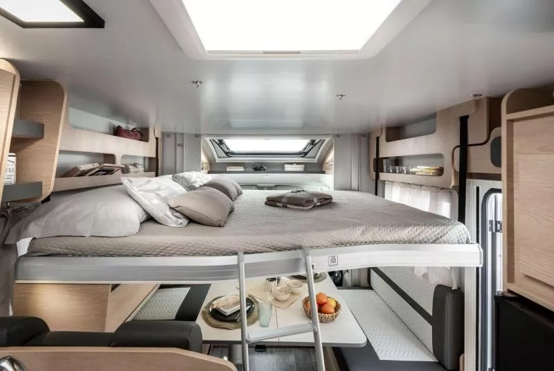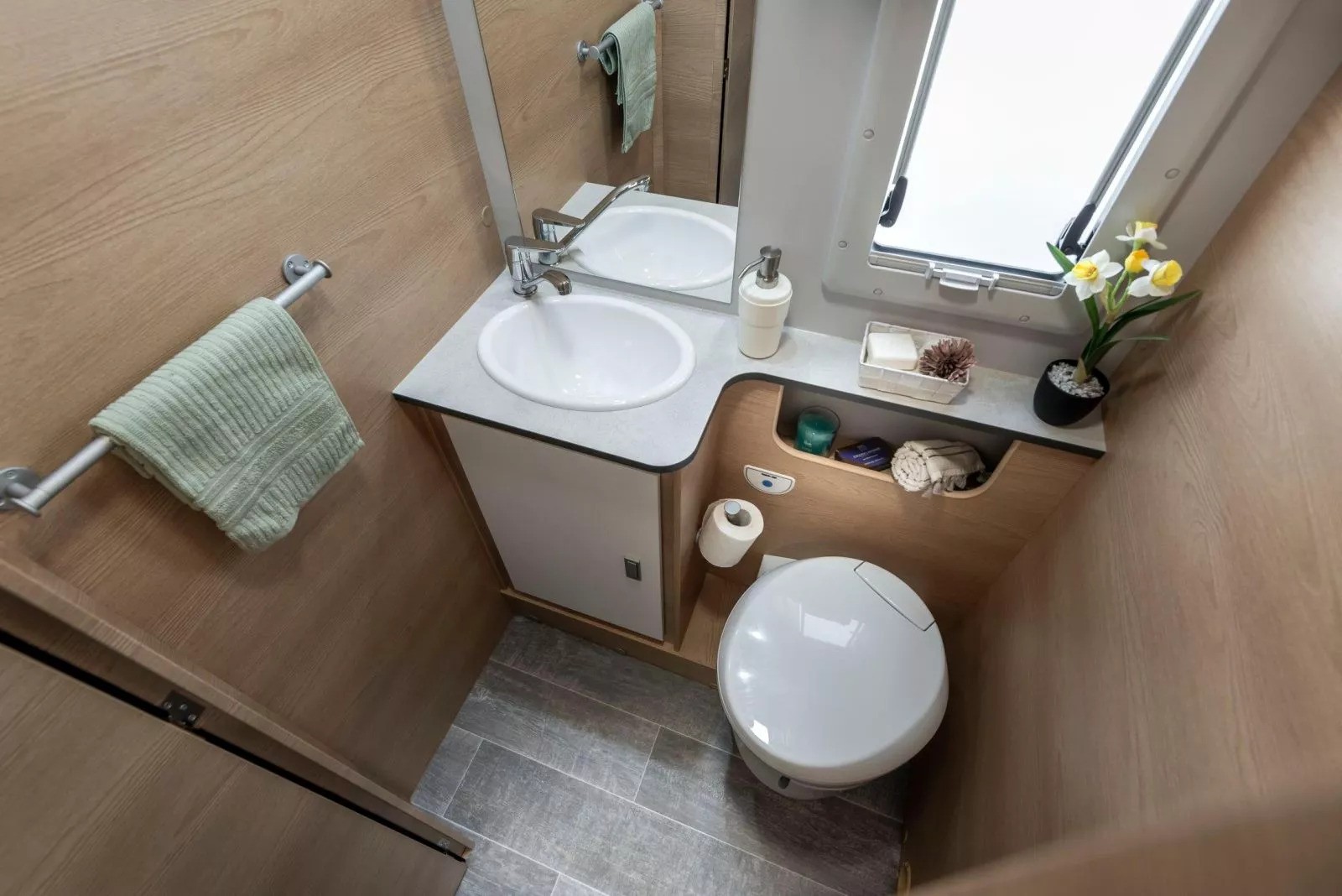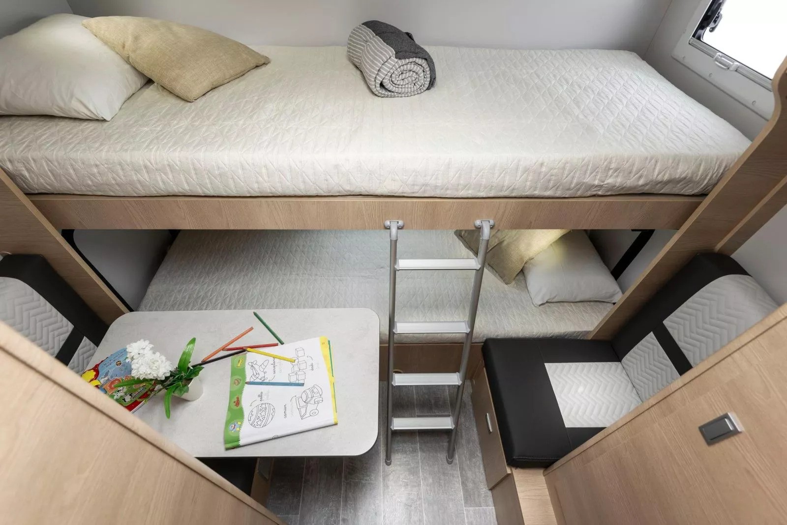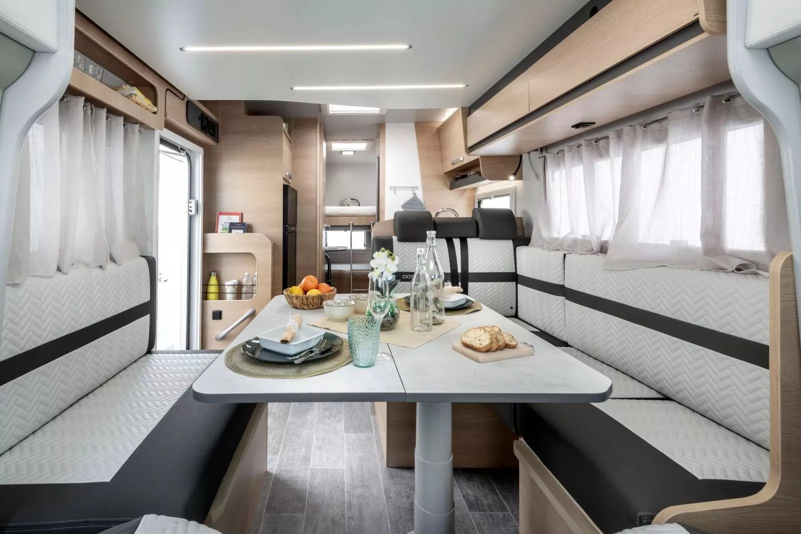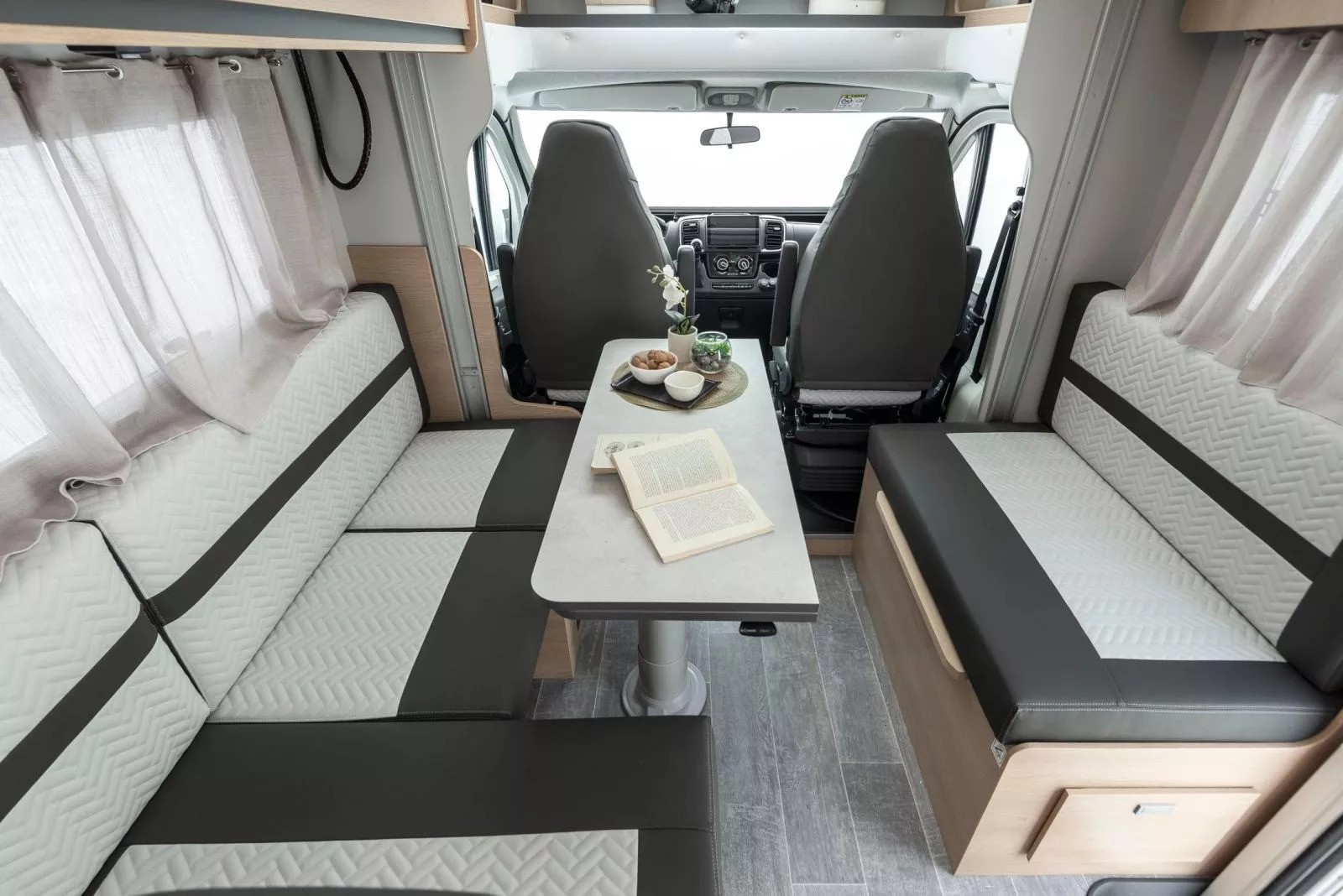 The Siena 396 is the perfect low-profile motorhome for families seeking space, comfort, and smart functionality. At 7.40 metres long, it features a clever layout with rear twin beds that can be joined, a separate shower box, and a spacious living area. The face-to-face dinette seats up to five and converts into a bed, while the optional electric drop-down bed offers even more sleeping space. A large rear garage, accessible from both sides, makes it easy to bring everything needed for long journeys.