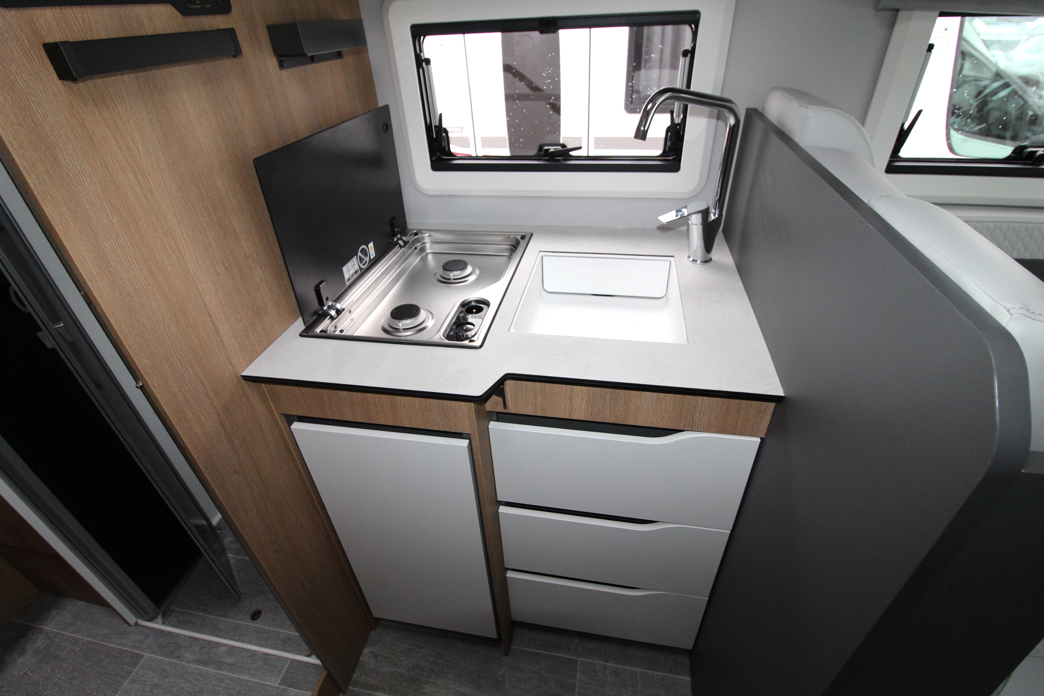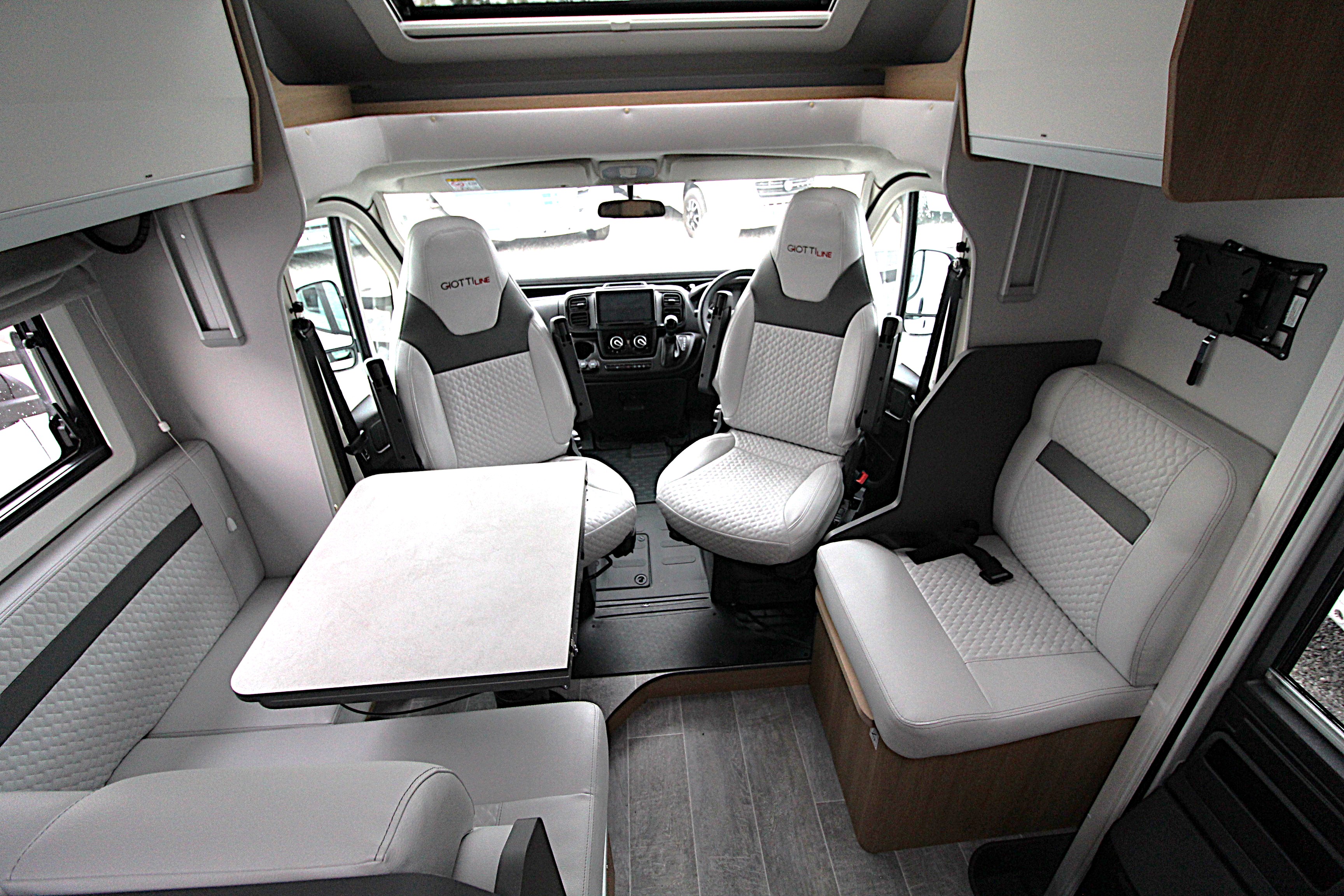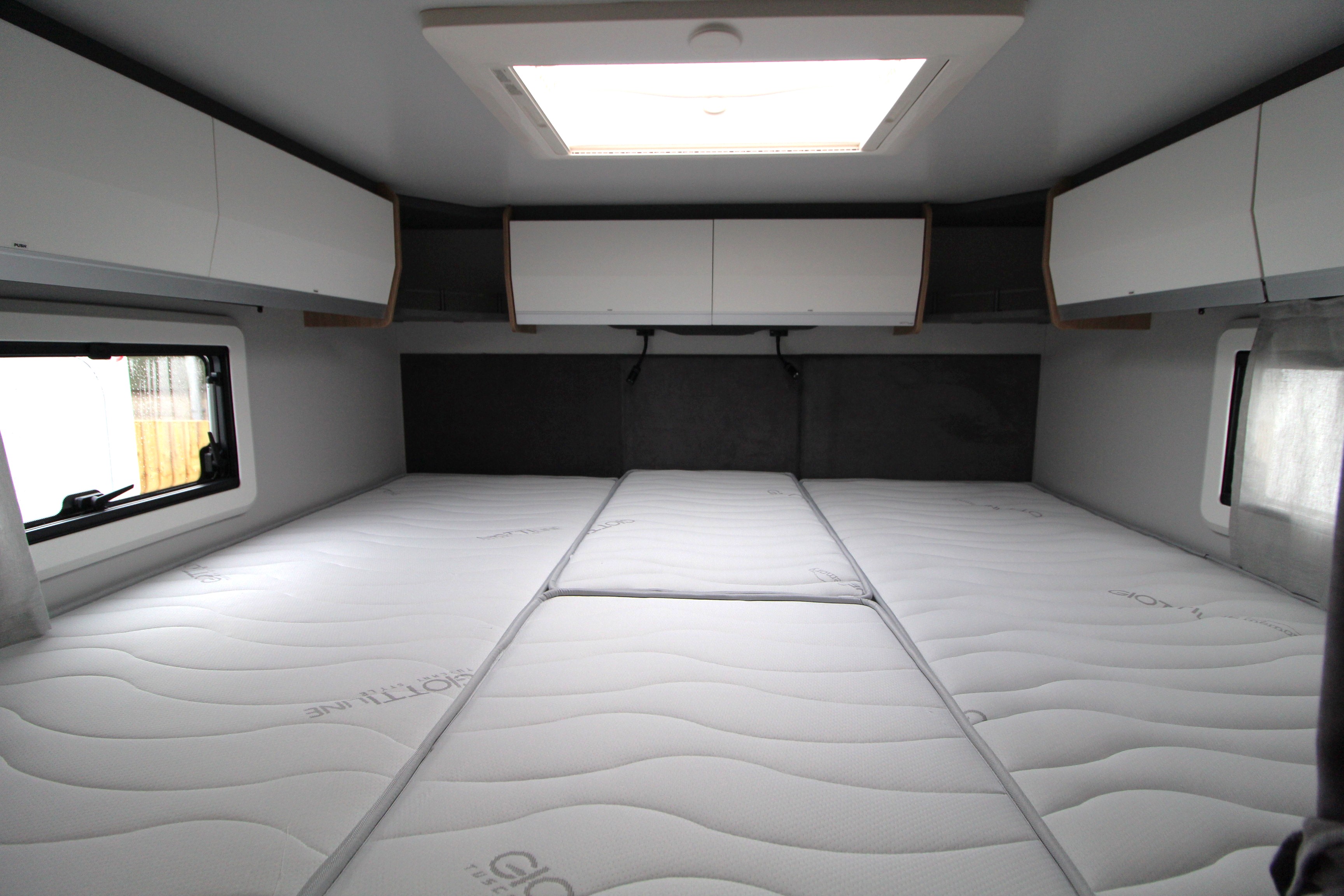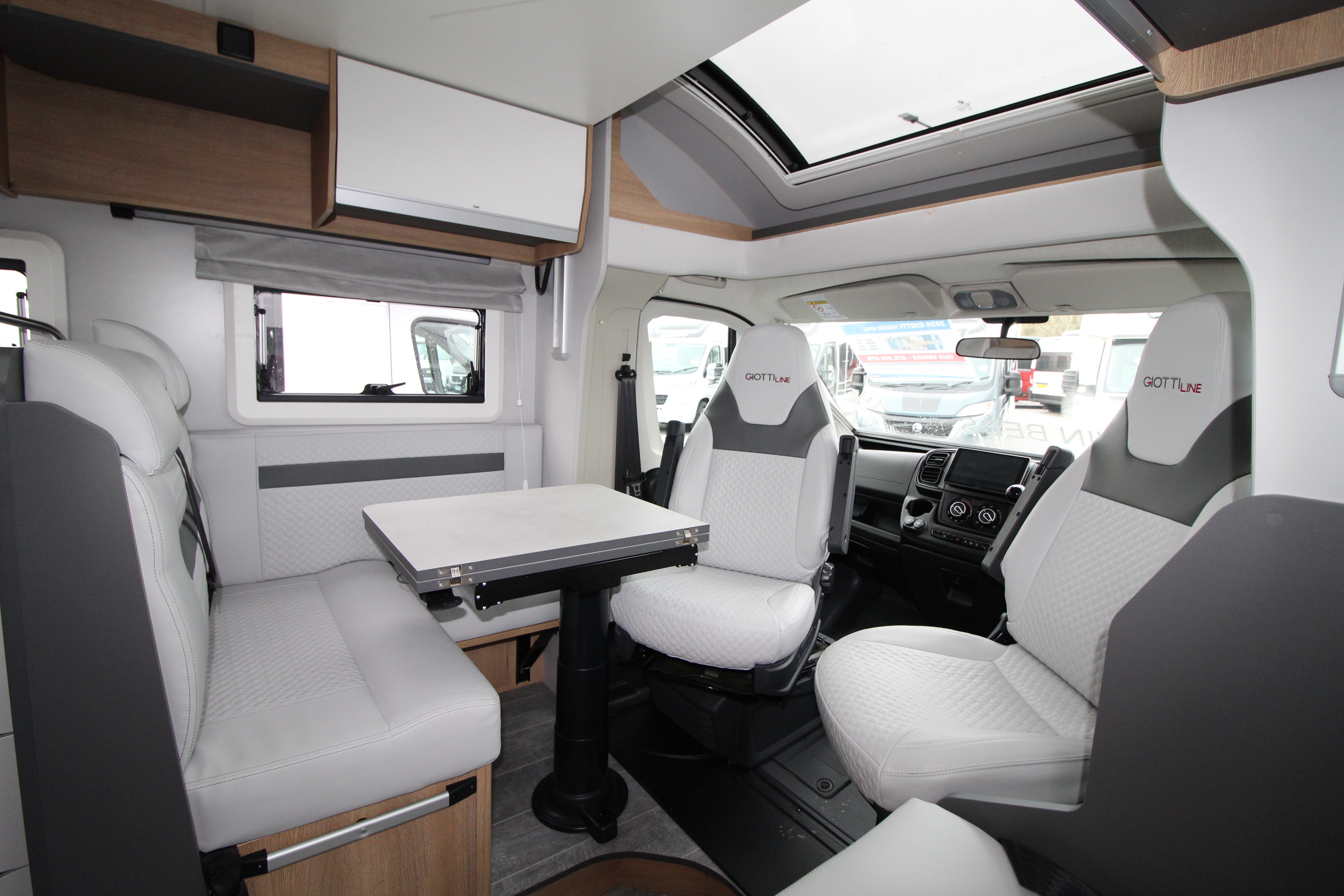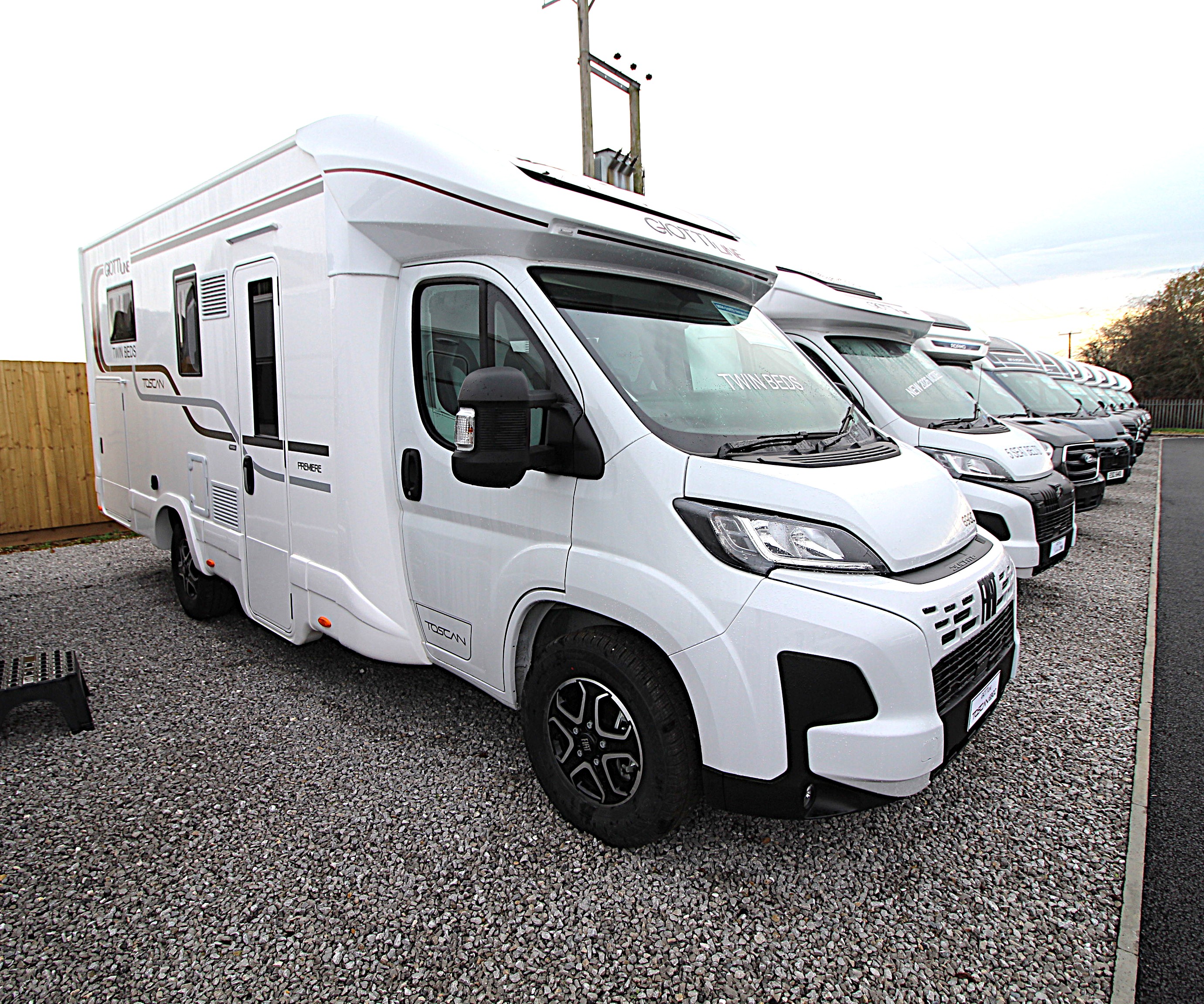 The all new, premium 2026 Giottiline Toscan 69GC is a 6.99-meter, semi-integrated motorhome available on a Fiat Ducato chassis. Designed for comfort and style with rear twin beds, a walk-through bathroom with a separate shower, and a modern living area. This model features a convertible dinette, and a drop-down bed adding sleeping flexibility for up to four people.