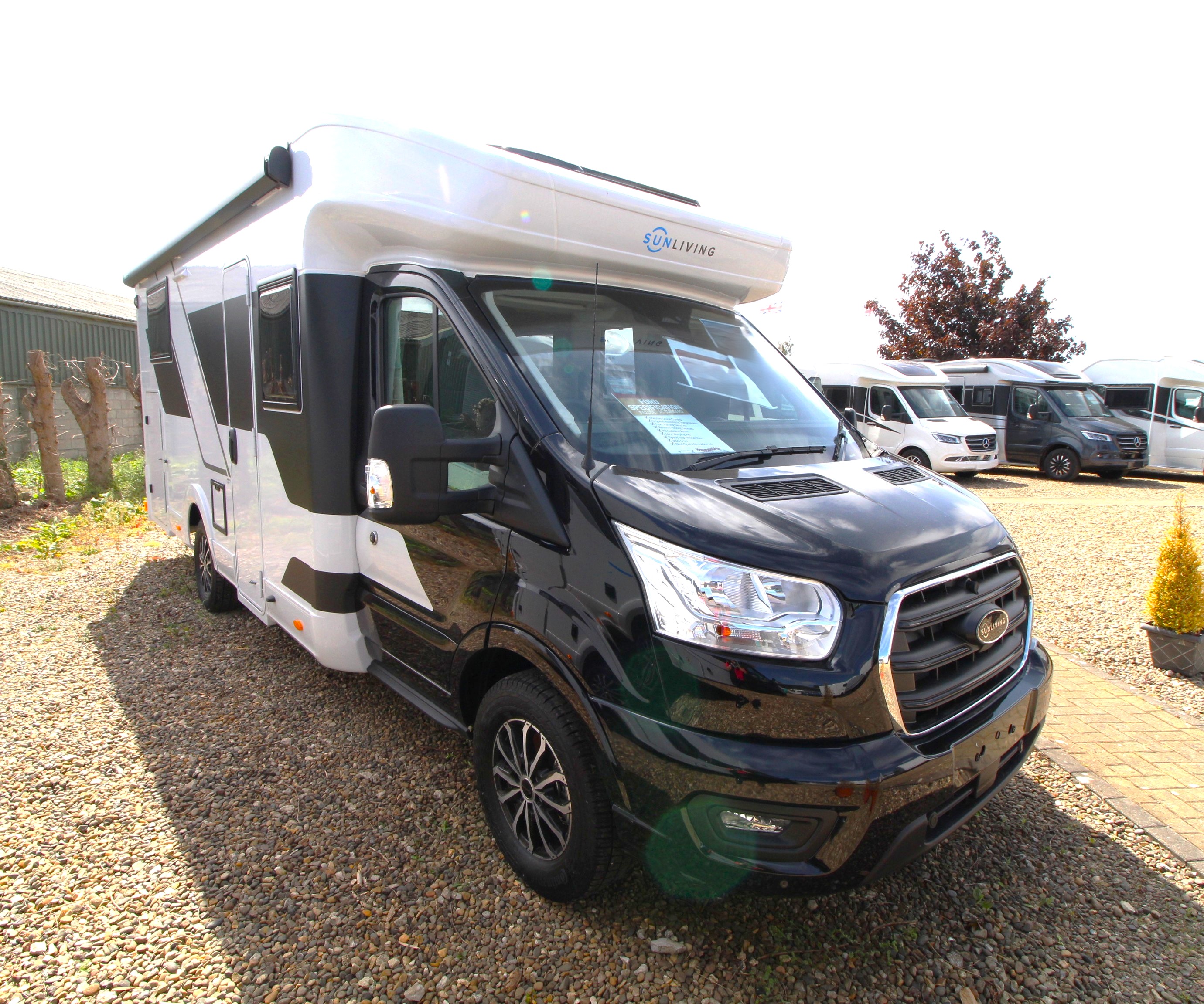 The Adria Sun Living 75 DC is a four berth low profile family motorhome built on a Ford chassis and comes complete with fixed island bed to the rear and drop down double bed over the lounge area.