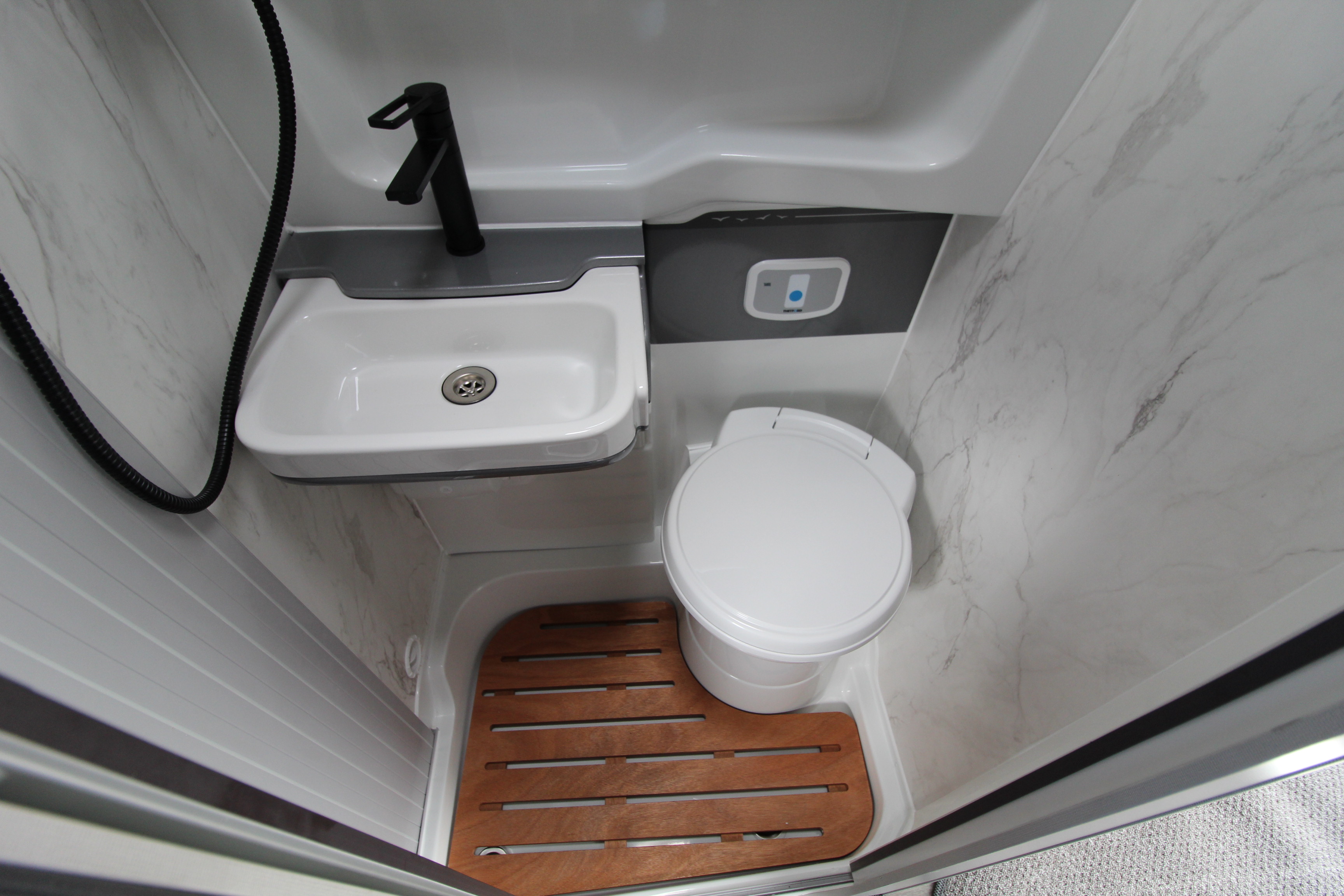 Thetford cassette toilet with electric flush and 18 litre wheeled tank and concealed waterproof toilet roll holder