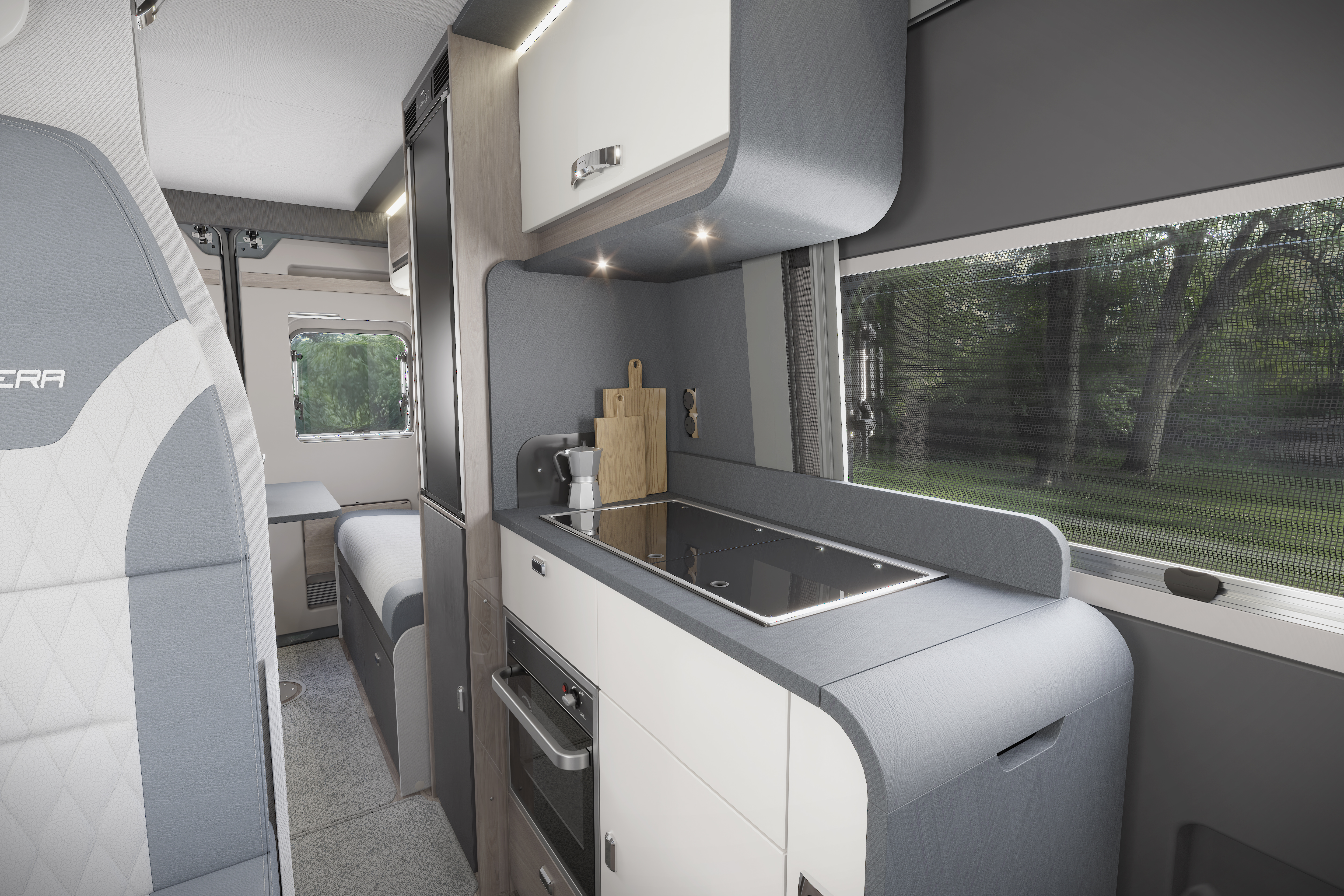 This stylish panel van range is powered with the FIAT series Euro 6D Final 140bhp 2.2 litre engine and comes with ESC and Eco packs as standard. Carrera is designed for relaxed campervan living whilst practical for everyday use. Packed with all the home comforts you need for off-grid exploring.