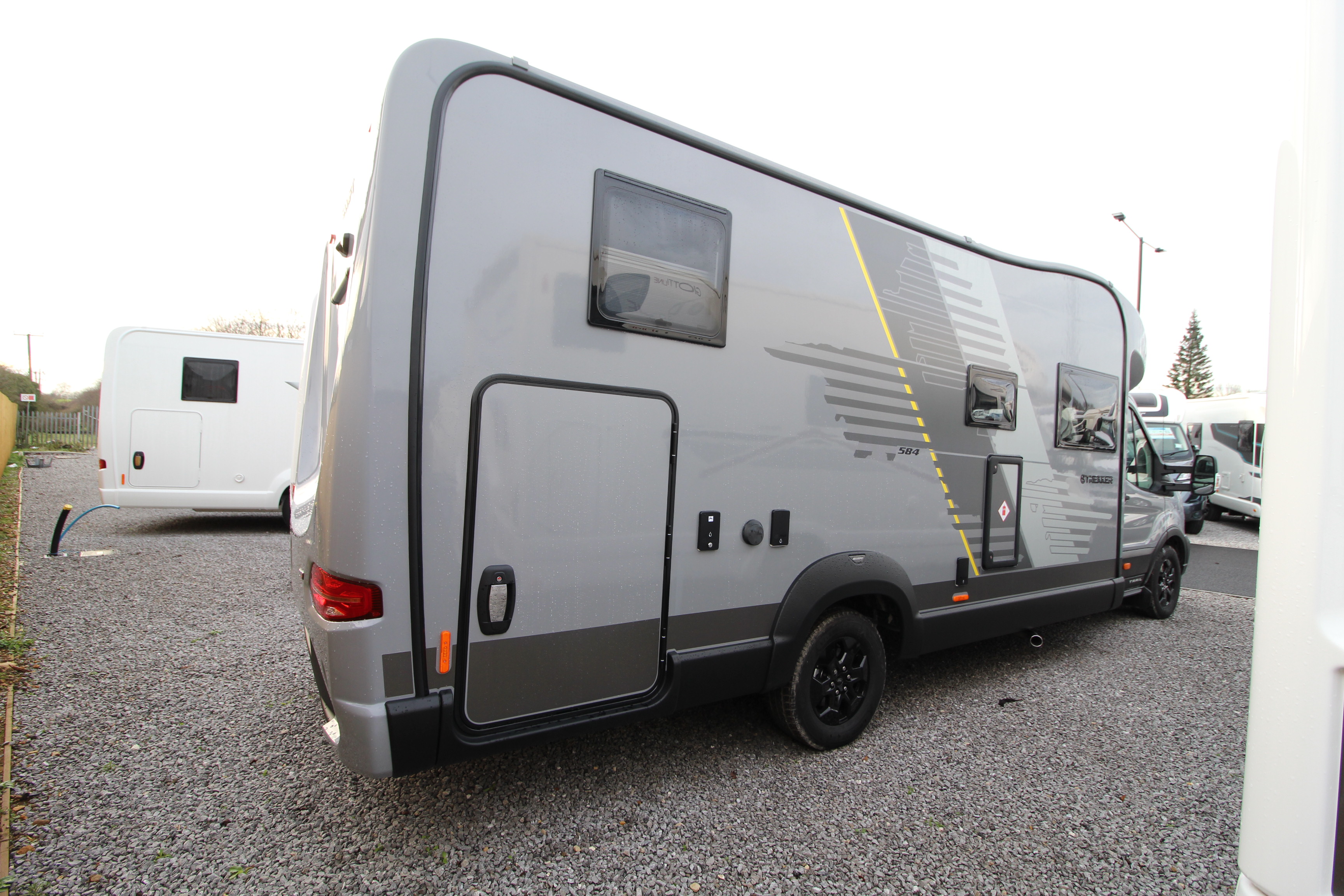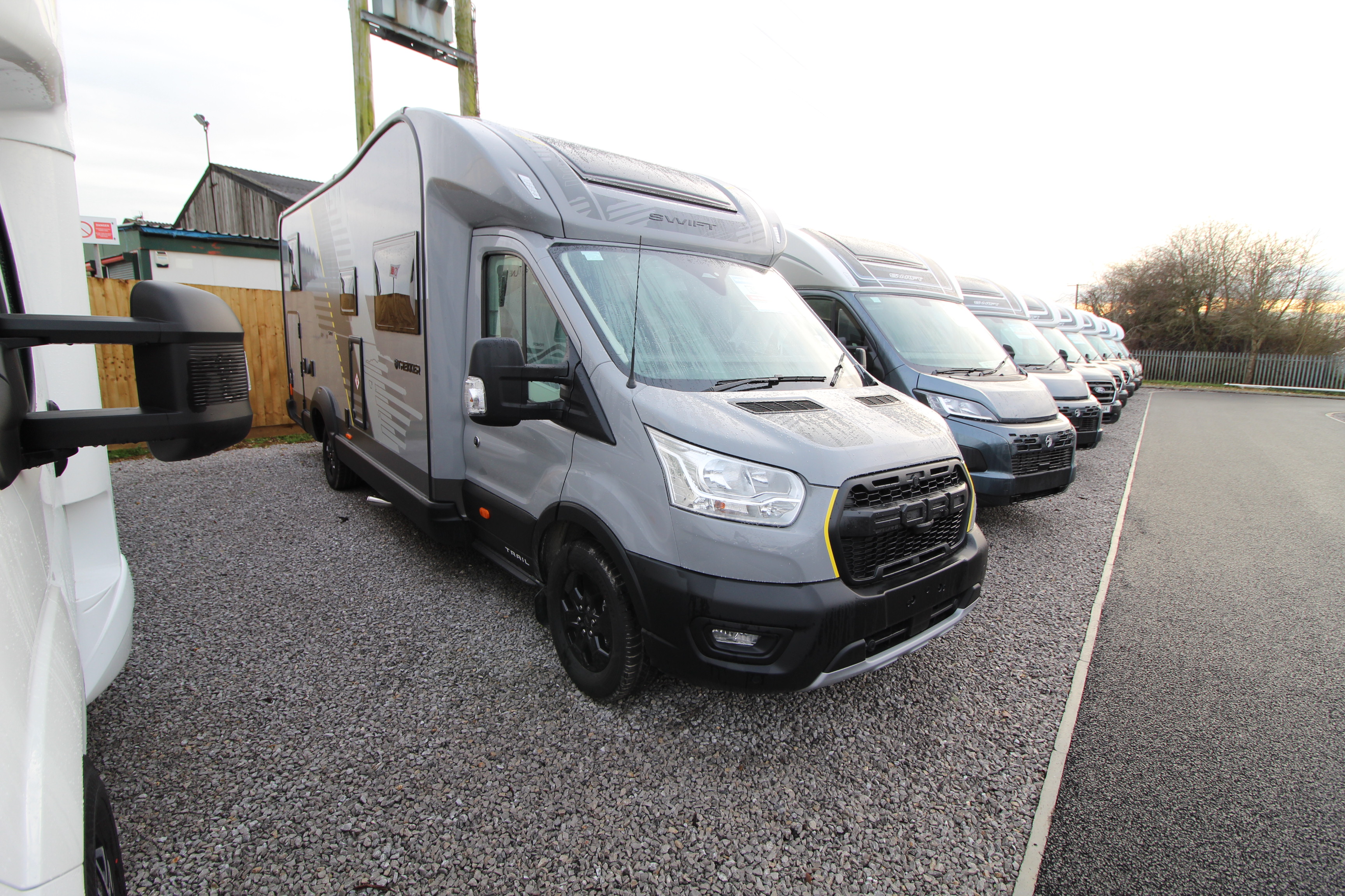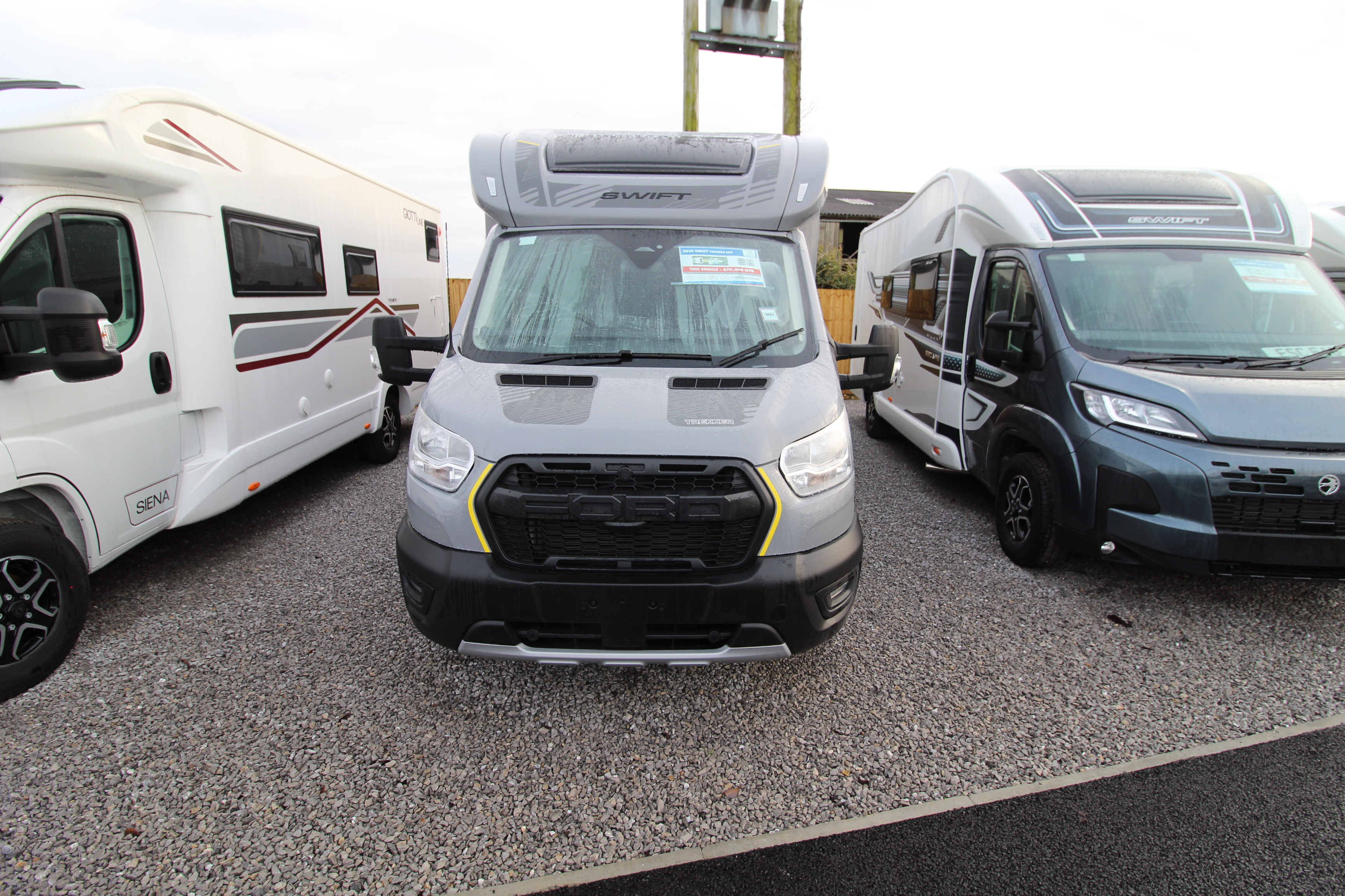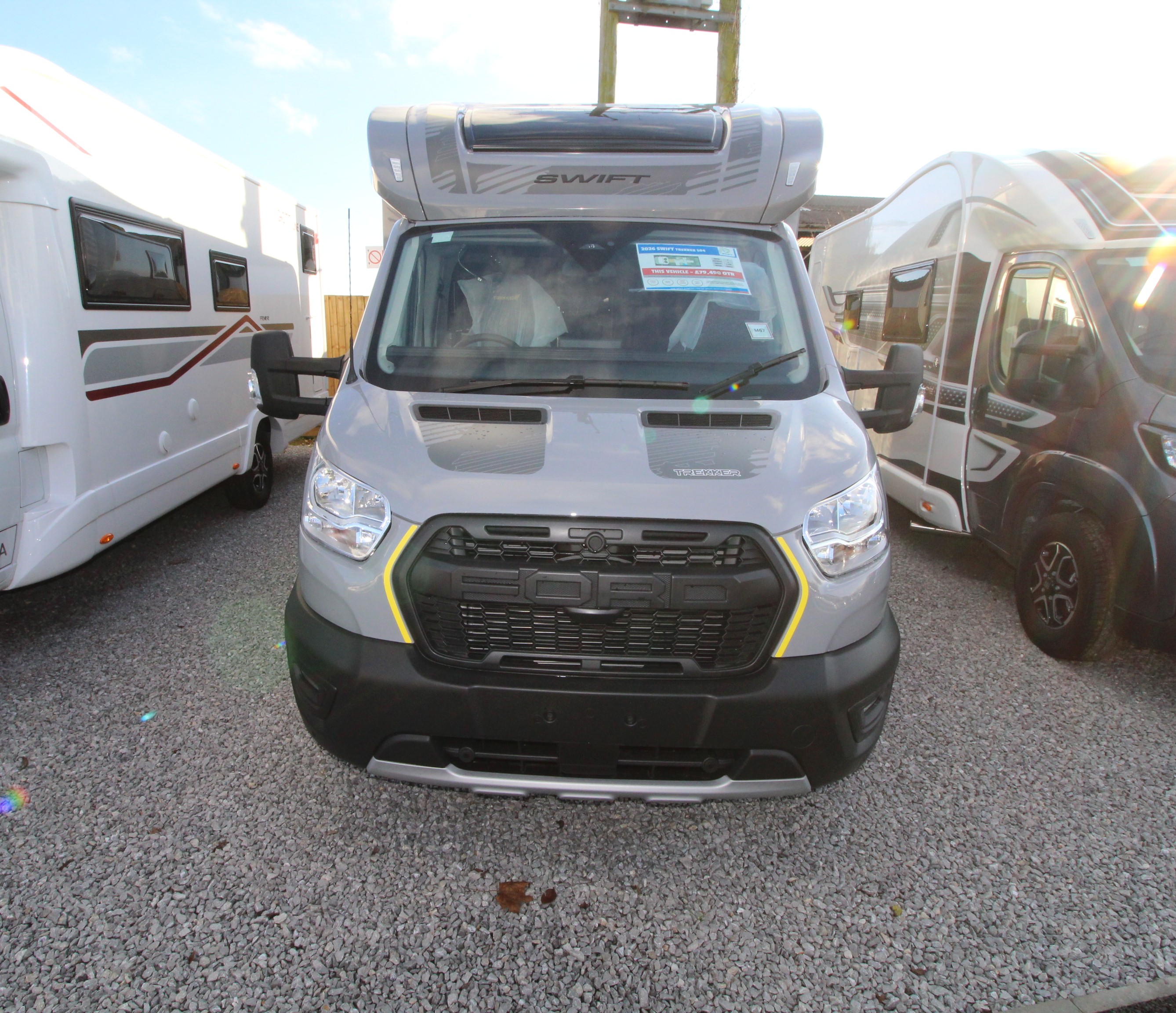 The striking all new Swift Trekker 584 four berth motorhome features a spacious lounge area, electric drop down double bed overhead, ceentre washroom with shower cubicle and fixed twin beds to the rear.