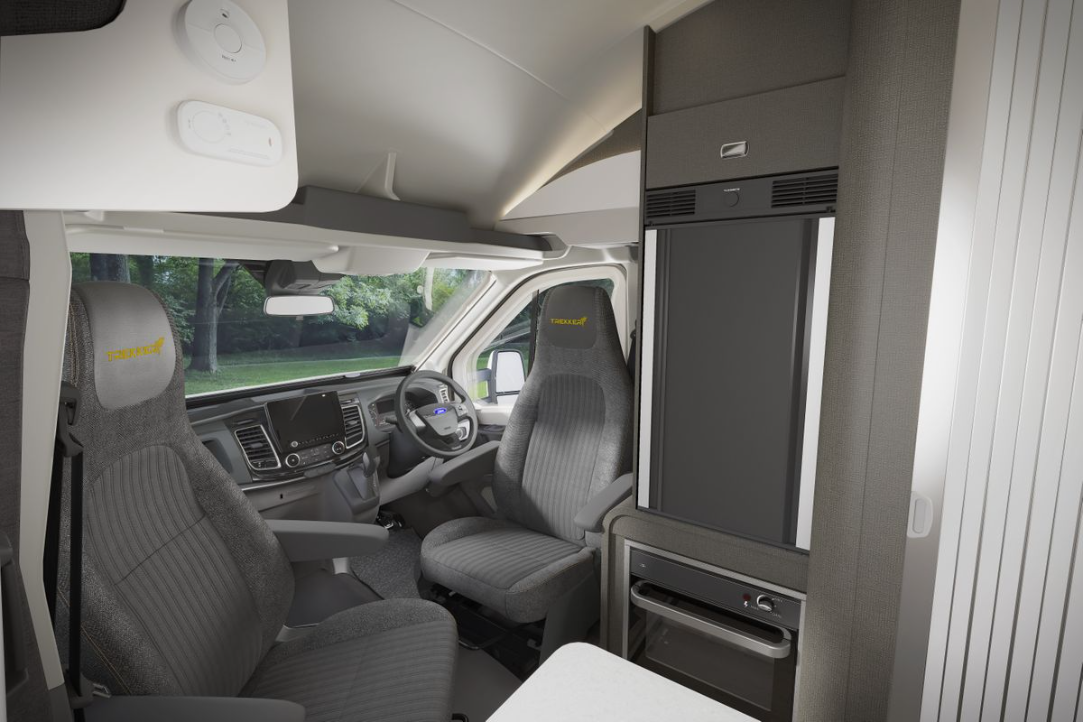- Forward facing travelling seats with 3-point seat belts, ISOFix connections on aisle seat and armrest to side wall, incorporating USB socket (Trekker & Trekker X)