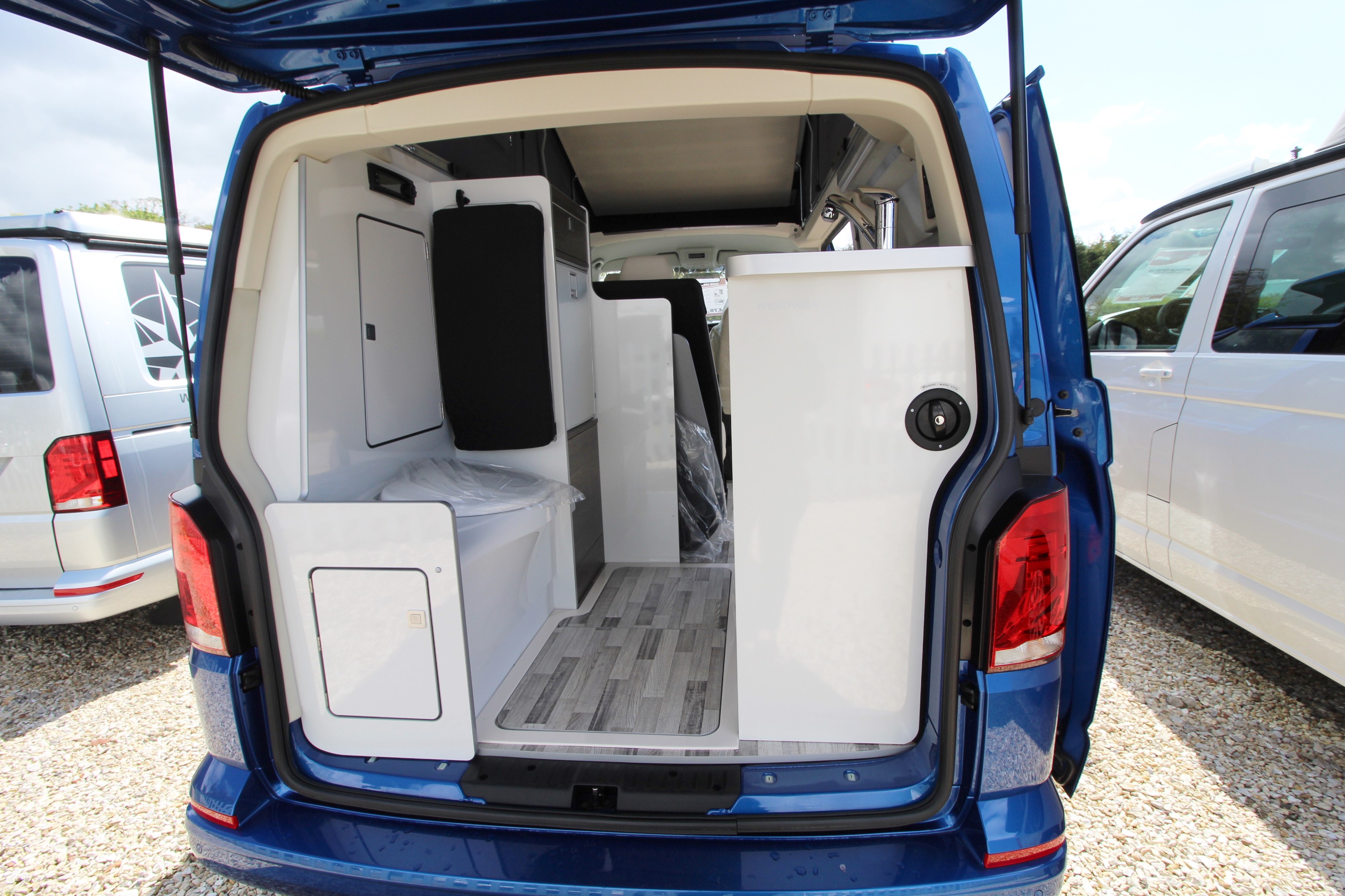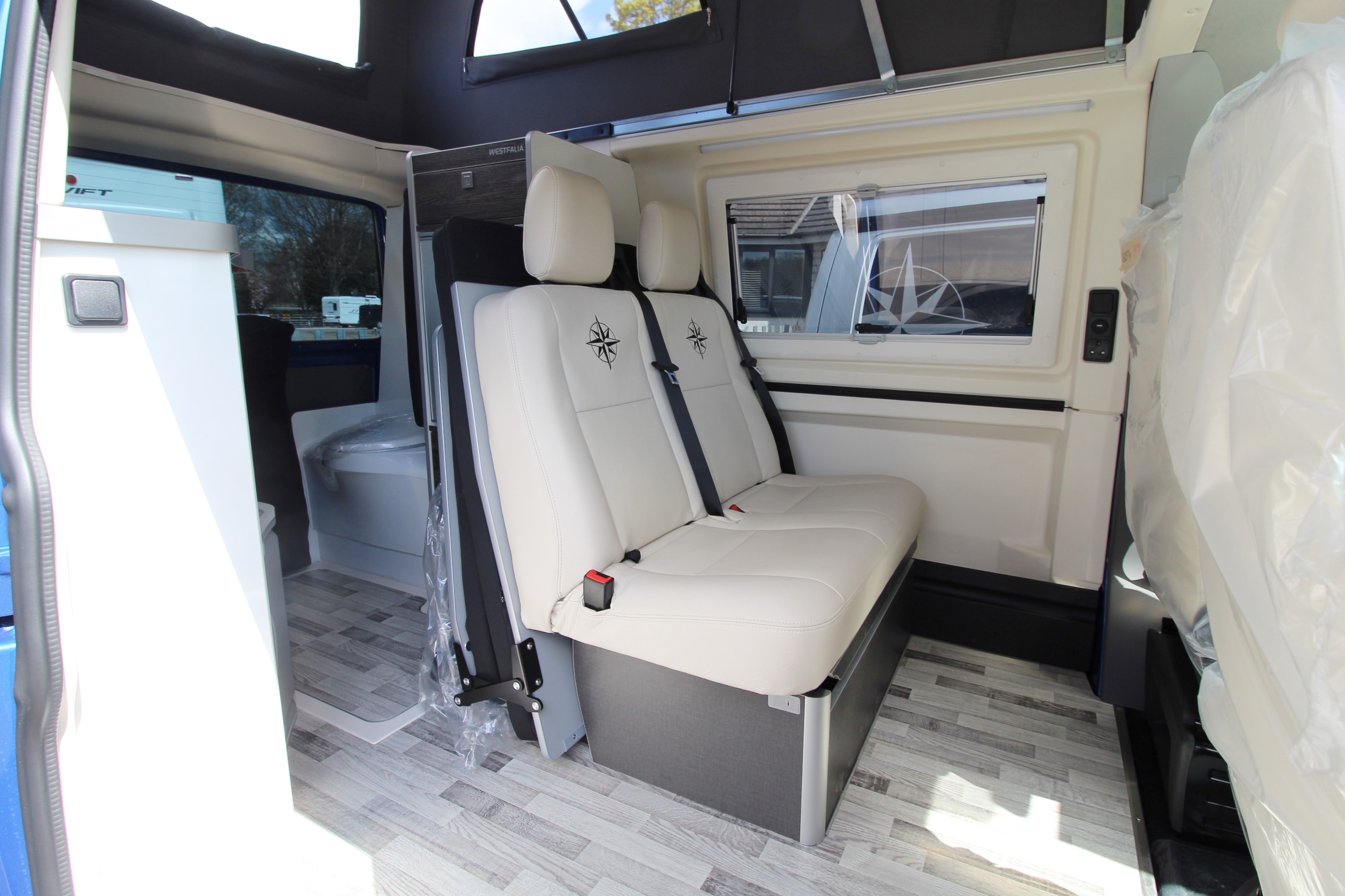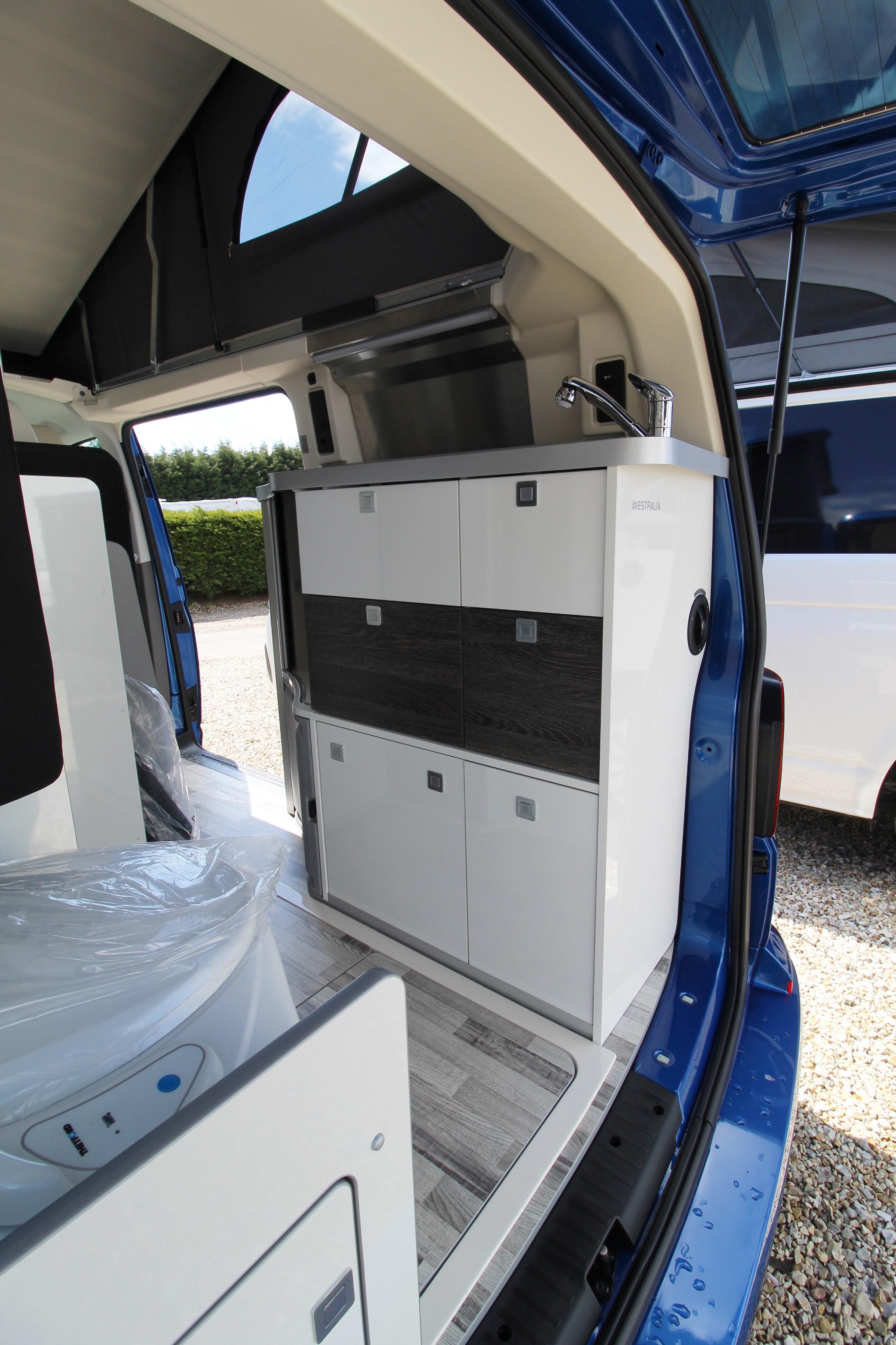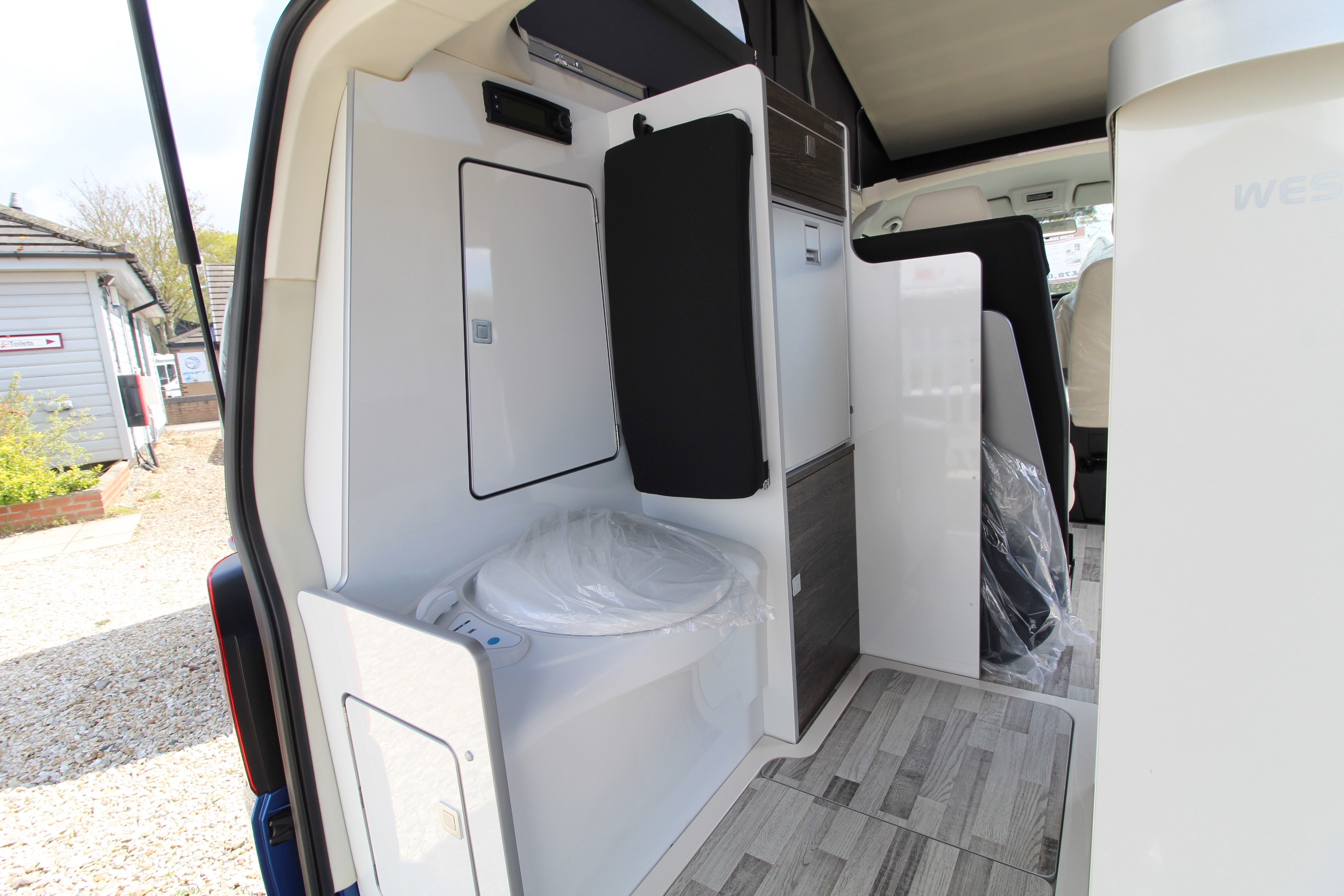 A new addition to Wandahome for 2021, the Westfalia Club Joker City is an exciting and modern campervan built on a Volkswagen chassis and less than 5 Metres in length. If you are looking for a luxurious, spacious and well-equipped campervan, then the Club Joker city was built for you. The Club Joker City has a large seating area with an integrated table, with enough space to seat all four travellers. This area can easily be converted into a very large and comfortable single bed. Adjacent to the seating area you have a well equipped kitchen which includes a fridge, sink and hob, plus plenty of clever and well-designed storage solutions. A clever and well-designed double bed is located in the pop-up roof, easily accessed by pulling down on the tab. What makes this Westfalia truely unique is the spacious washroom area located at the rear of the Campervan. Boasting a cassette toilet, vanity sink and shower head, nothing has been excluded from the Club Joker City.