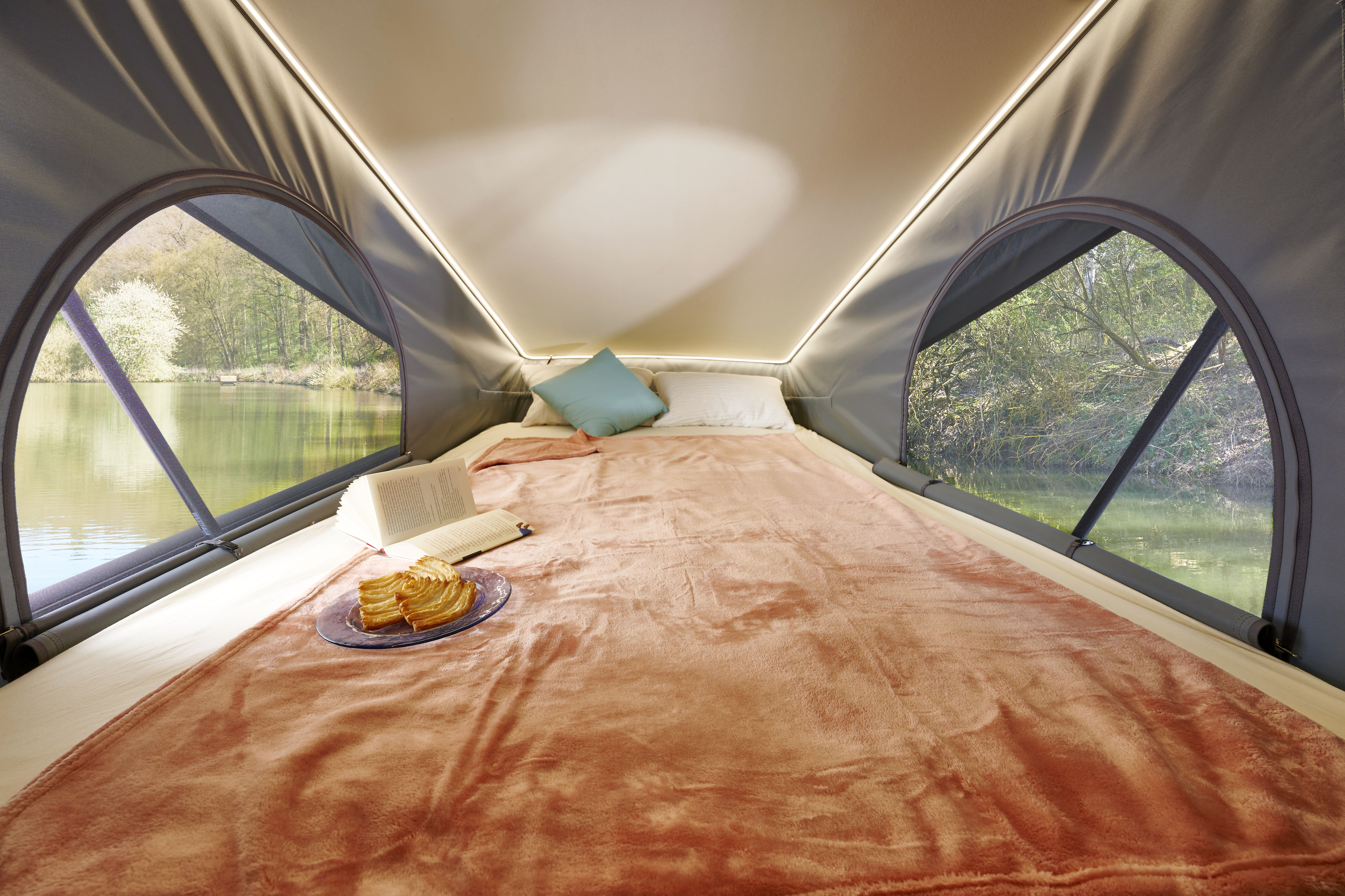 A pop-top roof creates additional sleeping space — giving up to four berths while preserving generous living areas down below.