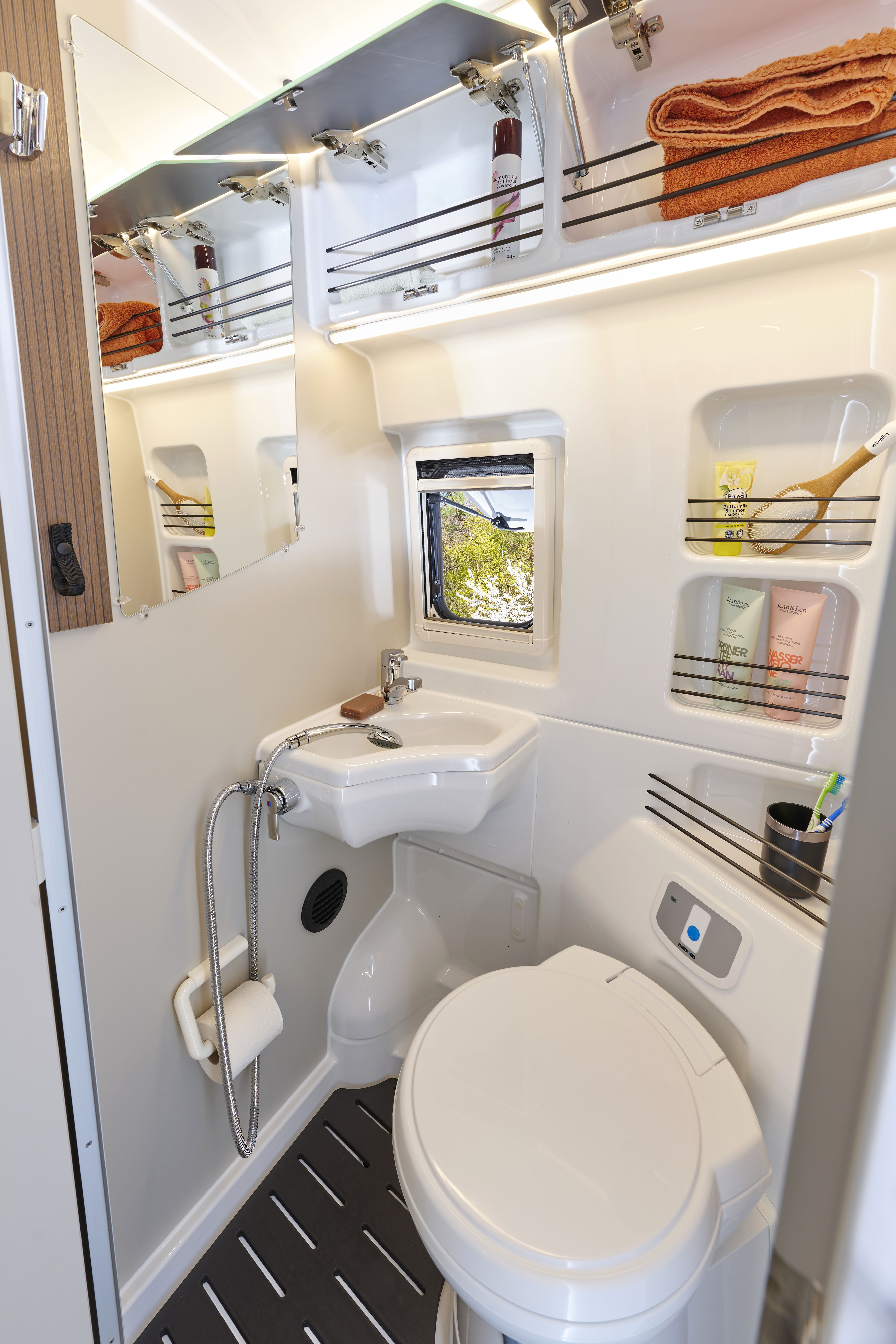 Outside shower hot/cold, wood floor inlay shower, front heated seats, winter pack:heated waste tank, insulated rear door, and sliding door and insulation mat for rear door, insulation mat for windscreen, additional convector in driver's cab, underfloor heating, heated shower tub, plugtronic (heating 230V)