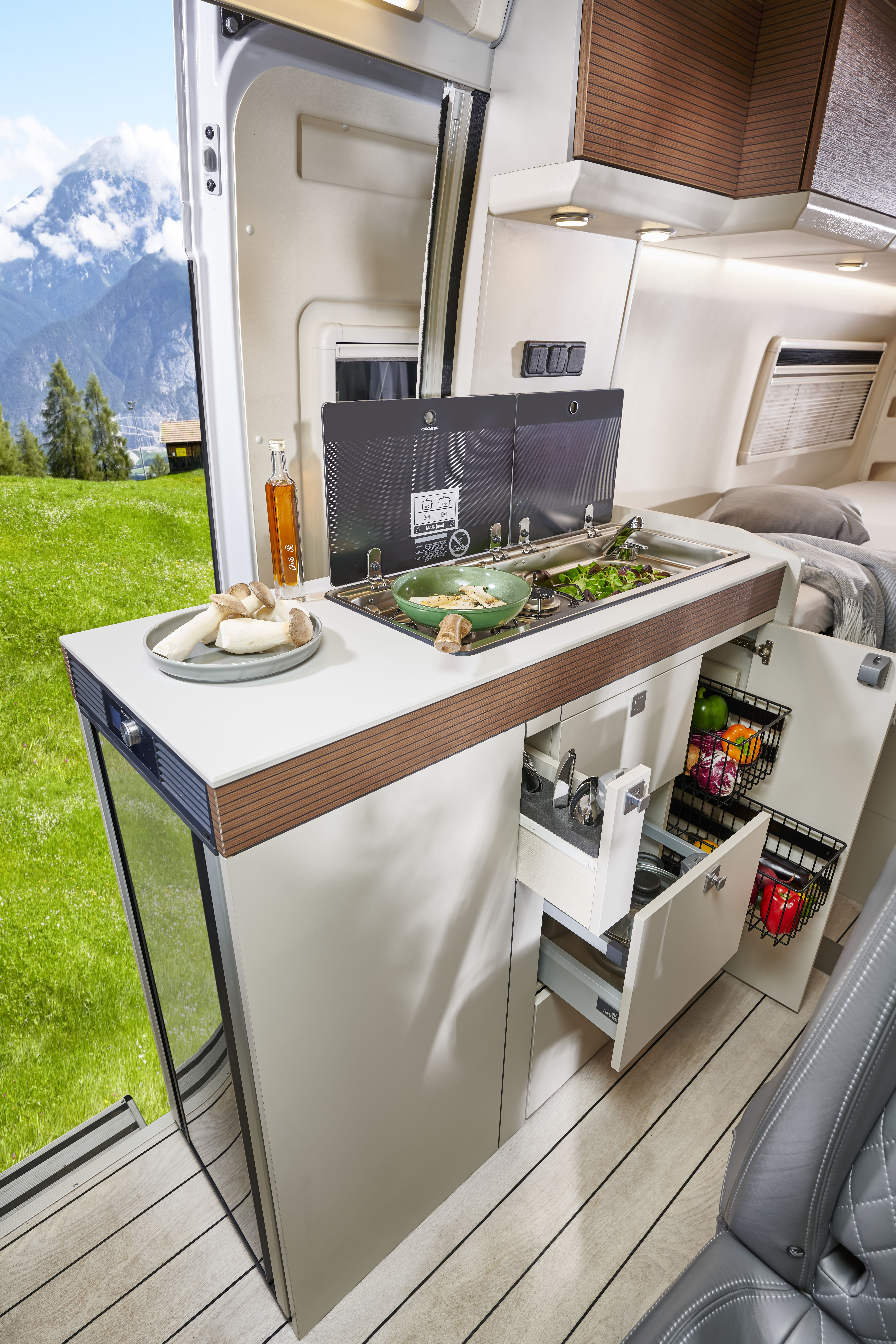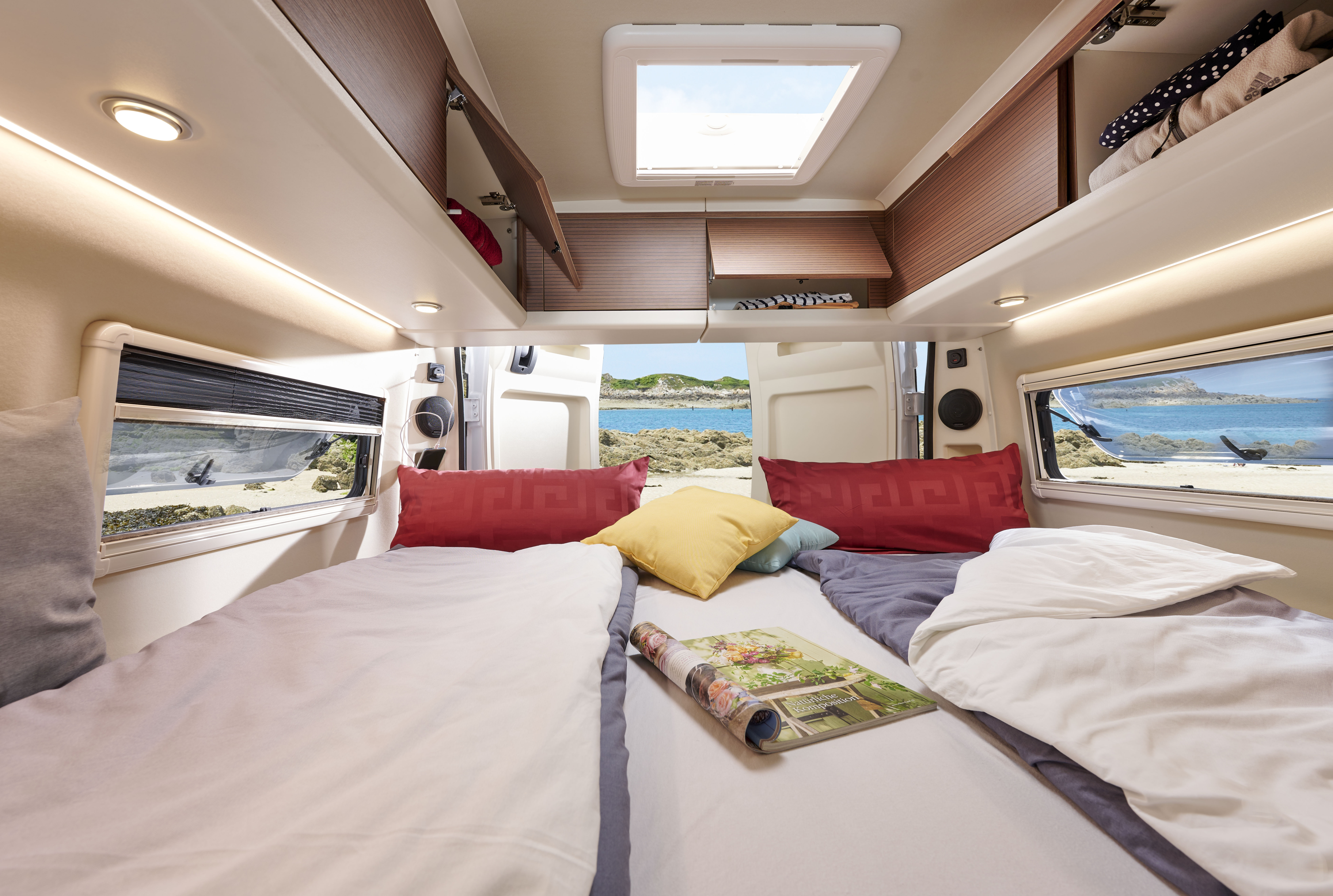 Inside, you’ll find a sophisticated, modern interior with premium materials, intelligent storage solutions, and a layout designed for real-life travel. The fully equipped kitchen, comfortable sleeping arrangements to the rear, and cleverly designed living space with a panoramic sky roof , make long journeys effortless and spontaneous escapes irresistible.