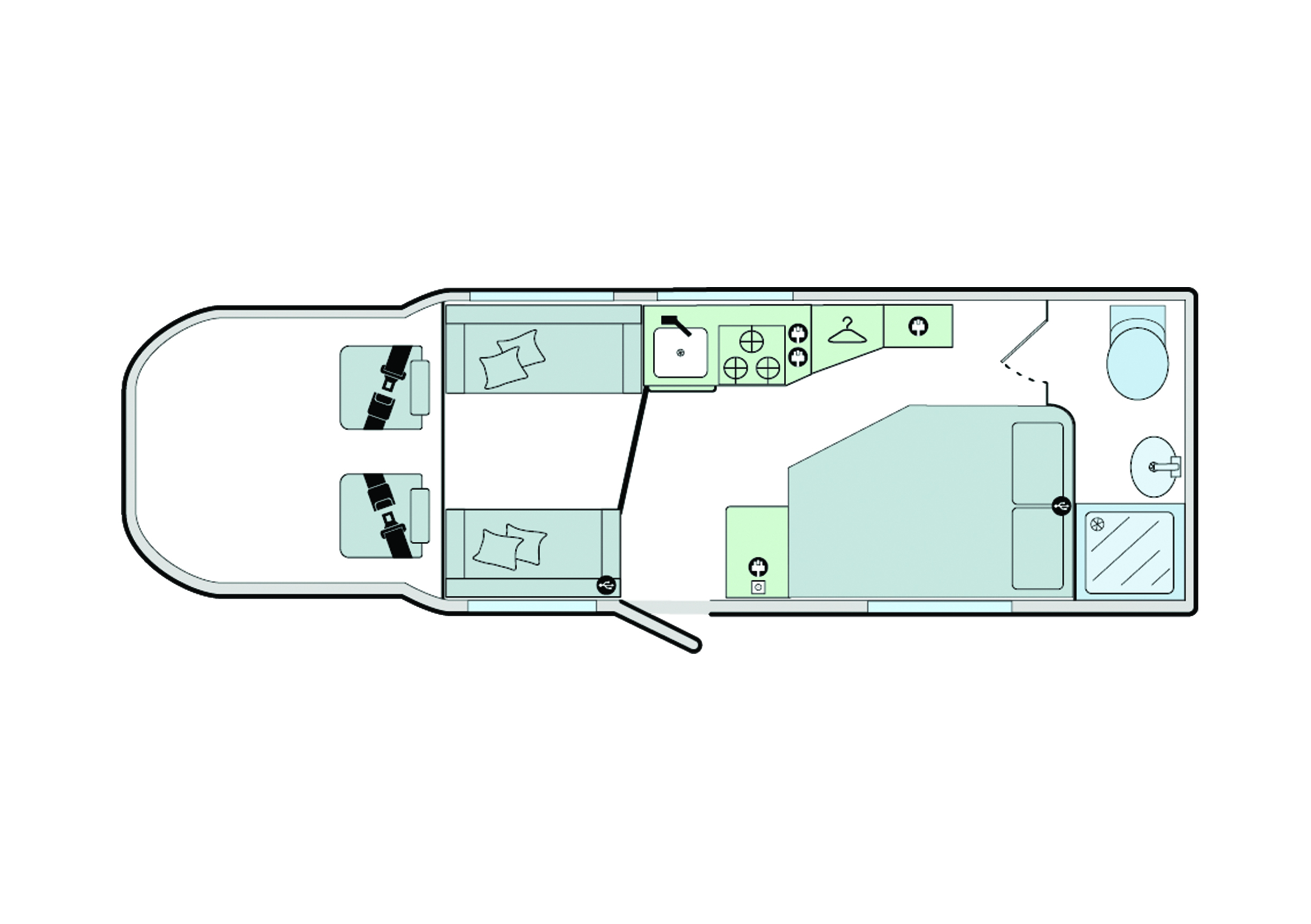 The brand new Bailey Alliance 76-2 Silver Edition is a four-berth motorhome perfect for small family’s looking for an escape right on your doorstep. Featuring a fixed double bed, end washroom and large front lounge that can be converted into a double bed to sleep two, this motorhome transforms from day to night seamlessly. Powered by the latest Peugeot 2.0 Hdi 160bhp Euro 6 Engine with a six speed manual gearbox this motorhome has all the power you need to get to your destination, and with amazing features such as cab air-con, a Sat Nav system and cruise control as standard your journey will be just as enjoyable as your destination. The Bailey Alliance 76-2 is fitted with two seatbelts, a fixed double bed, full width end washroom and a large front lounge with parallel bench seats that can be converted into a large double bed to sleep two. With the Bailey 'Eucalyptus' finish and high quality soft furnishings, the Alliance 76-2 Silver Edition emits luxury and comfort from every element.
