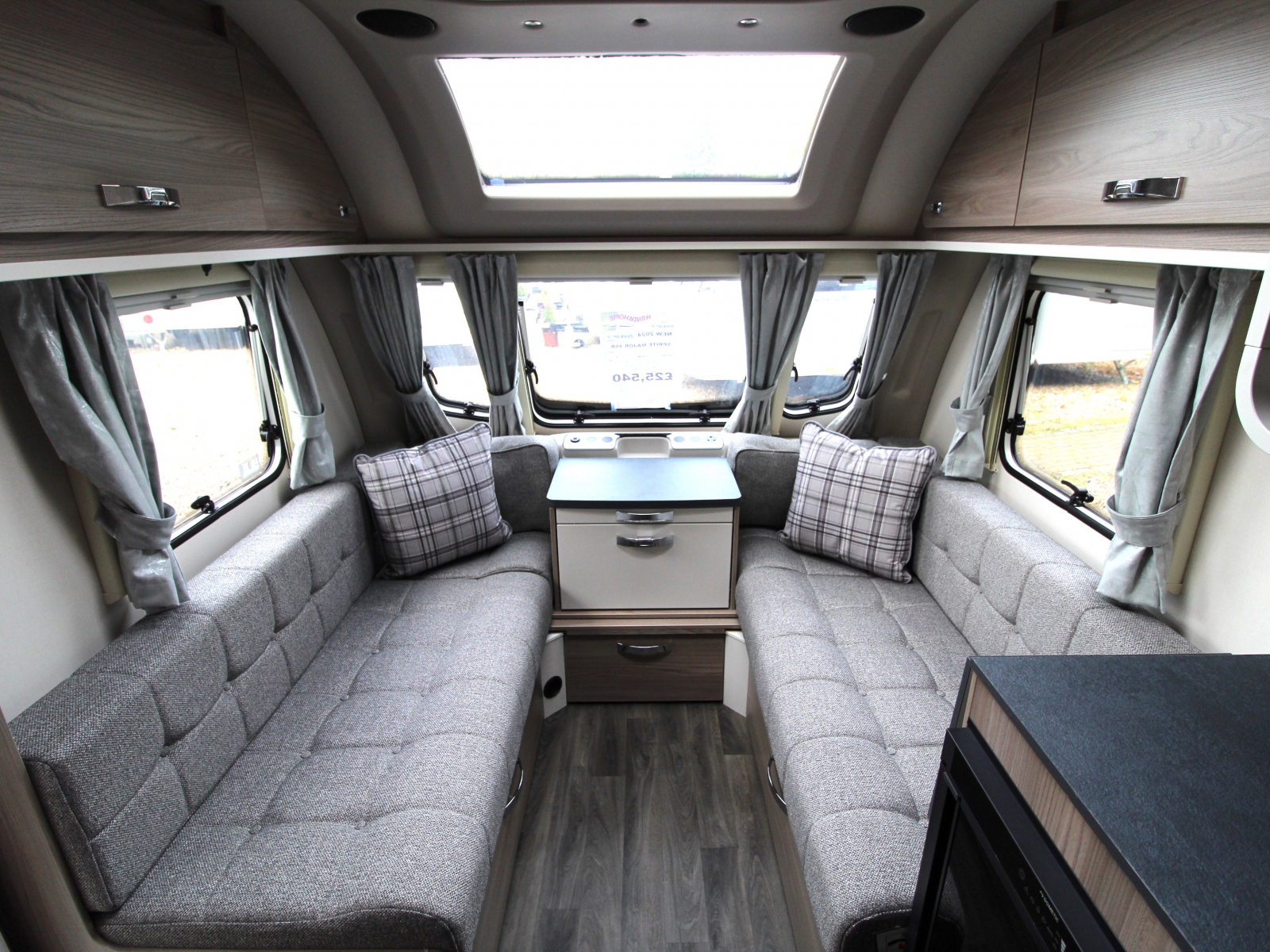 The Swift Sprite Major 4SB is extremely popular with the touring couple. Offering a light and airy lounge area and transverse island bed and a full width end washroom.