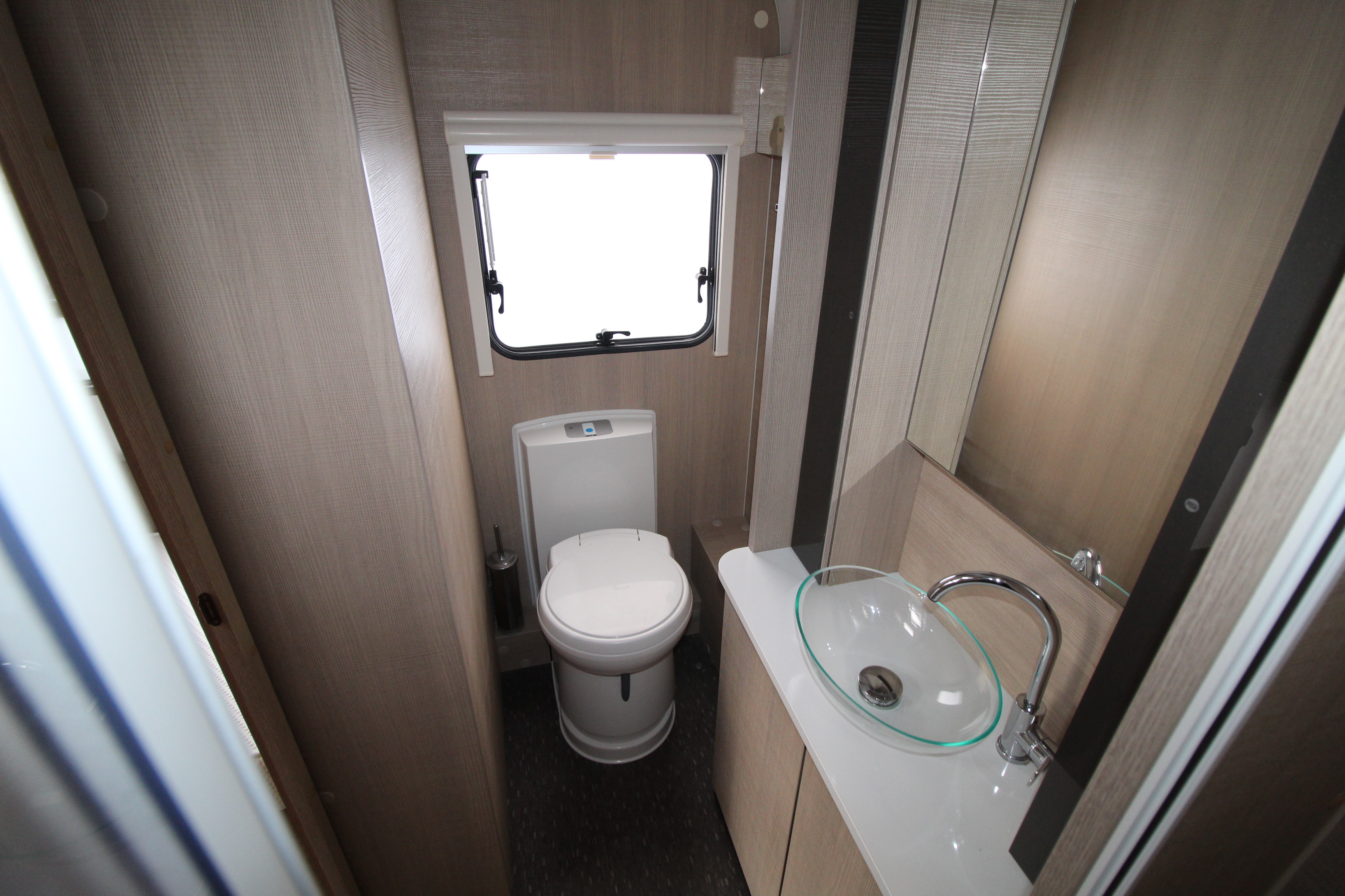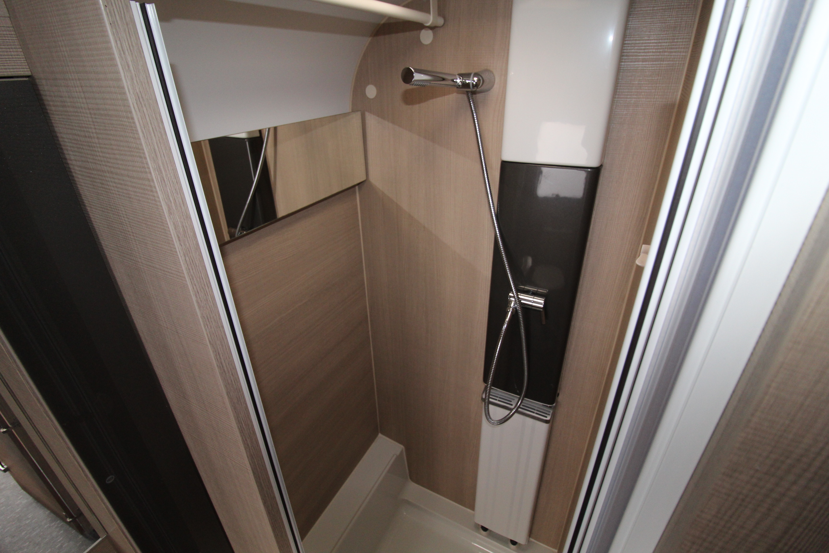 The full width end washroom offers cassette toilet, vanity sink with mirror over and a separate corner shower cubicle.