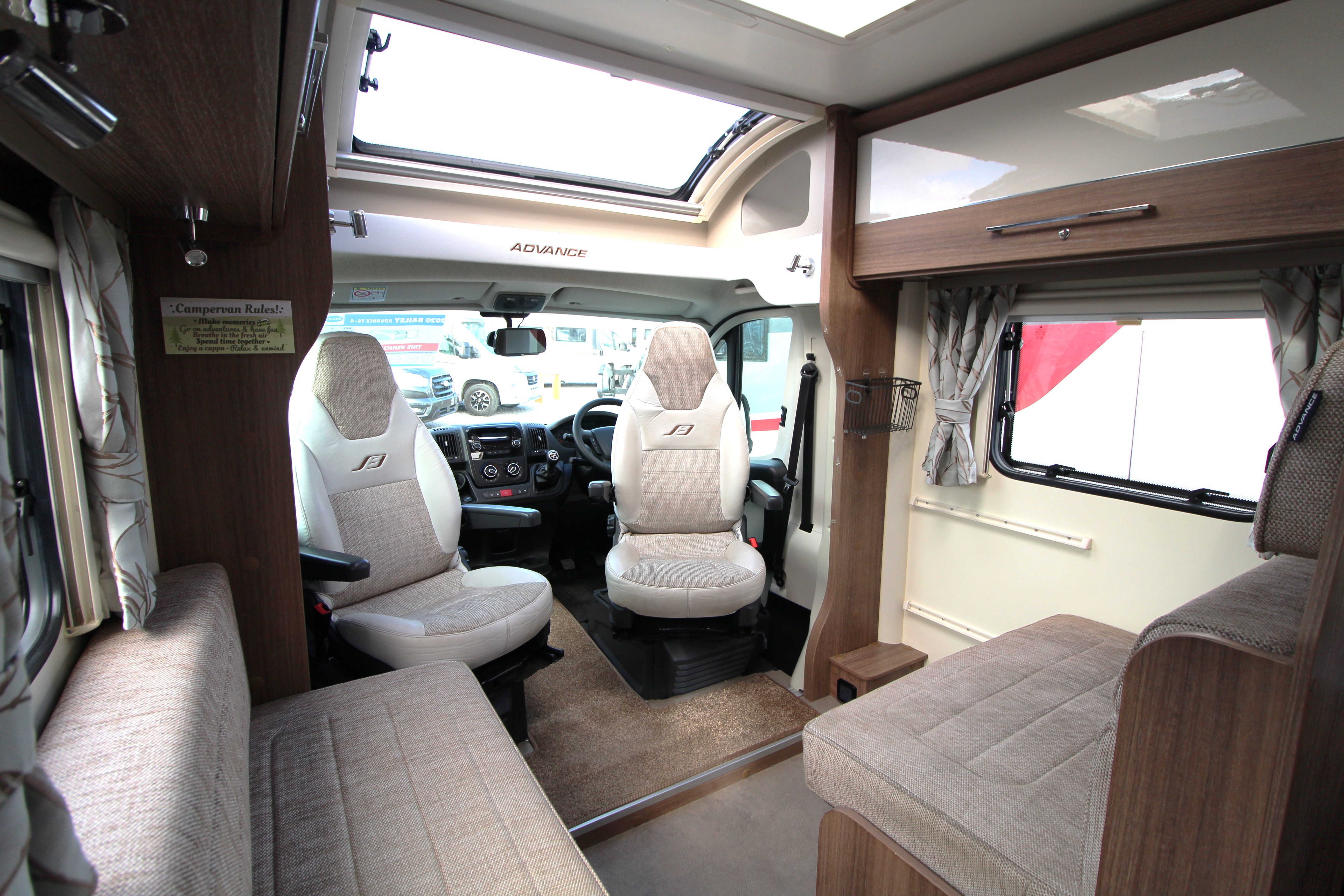 Presenting a generous front lounge/dining area with a forward facing and side twin bench seat, enhanced by swivel cab seats. Transform this area to a sleeping area for two on a night if required.