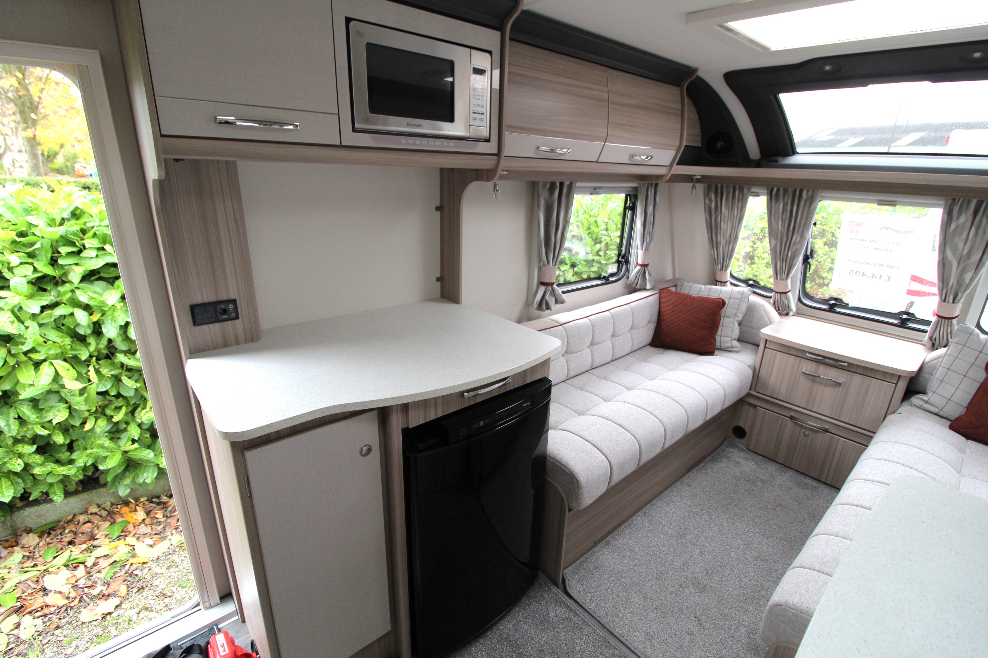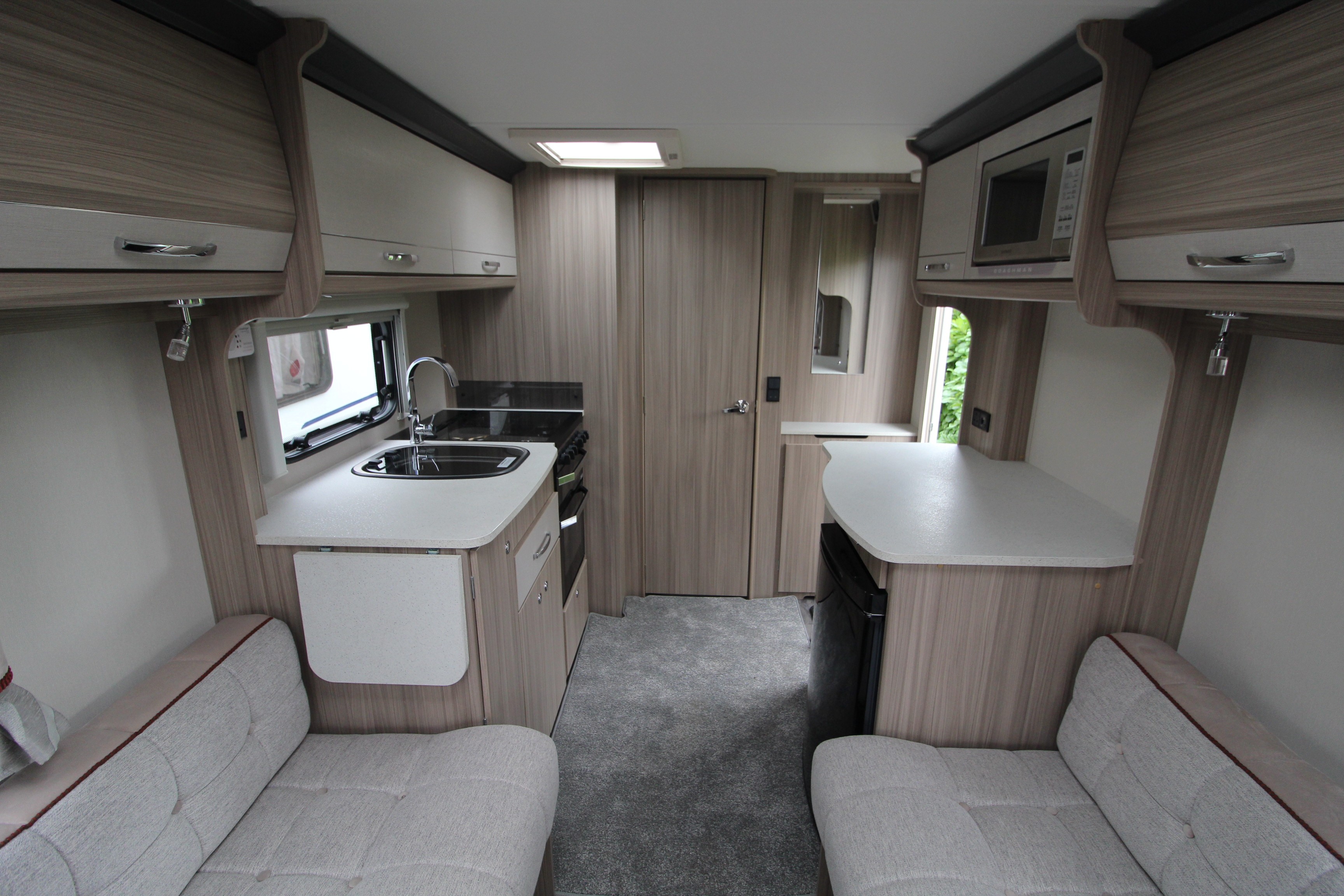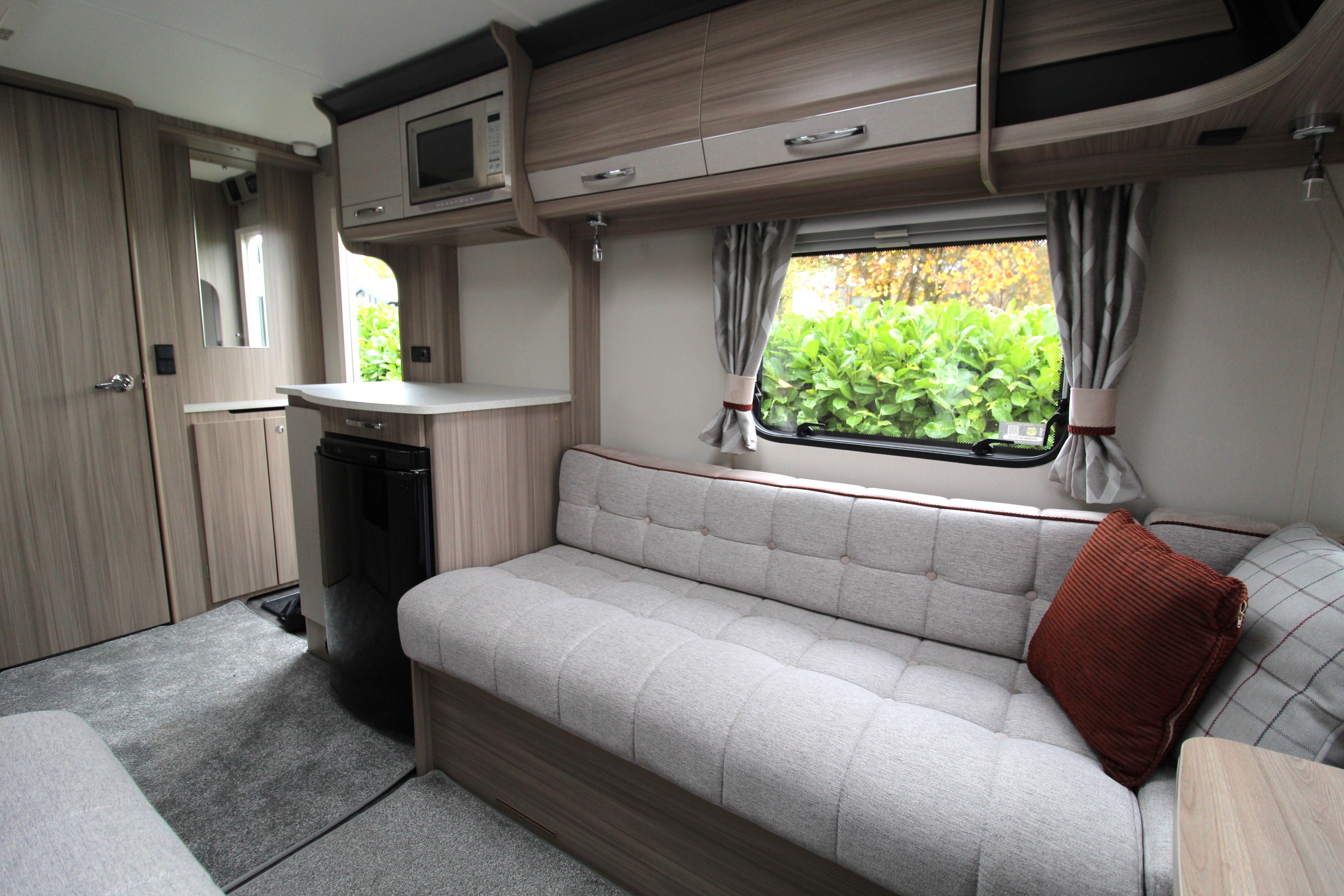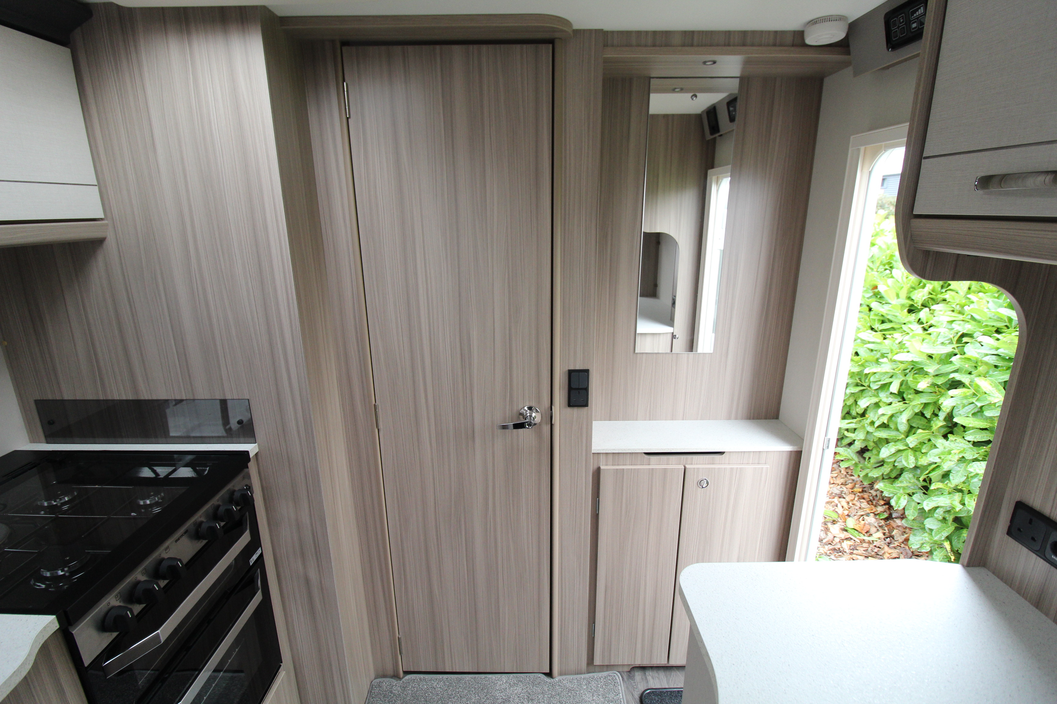 The spacious, modern, light and airy lounge area with its face to face seating offers a comfortable area to relax whilst an easy conversion offers two-single beds or one large Adjacent to the entrance door is a large display cabinet with shelving above and cupboards below, the ideal place to display your television or use as extra workspace.