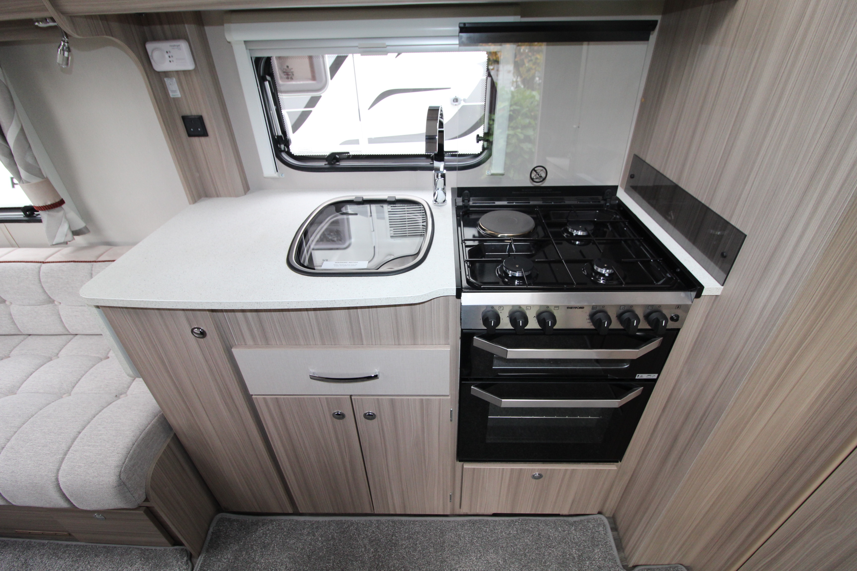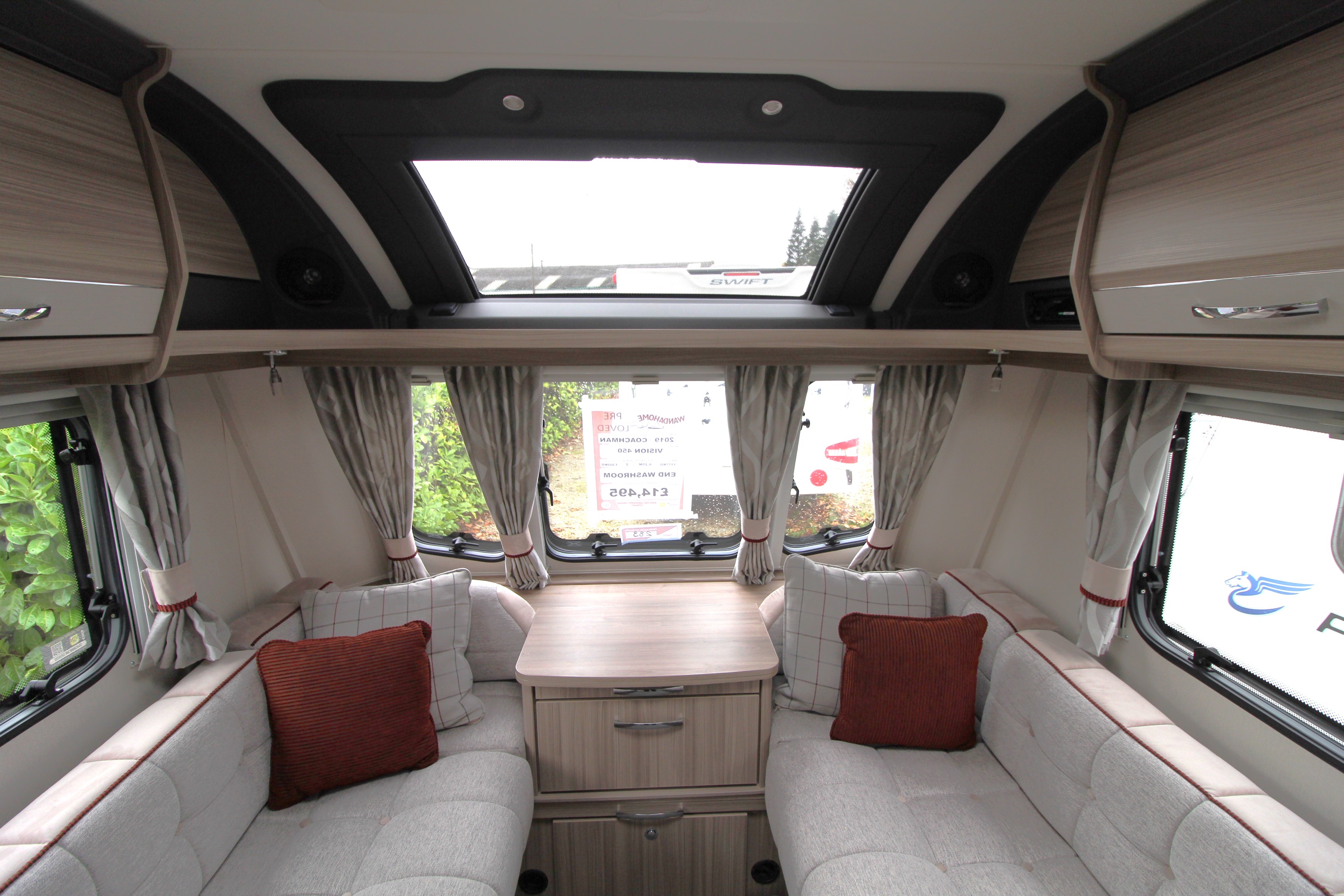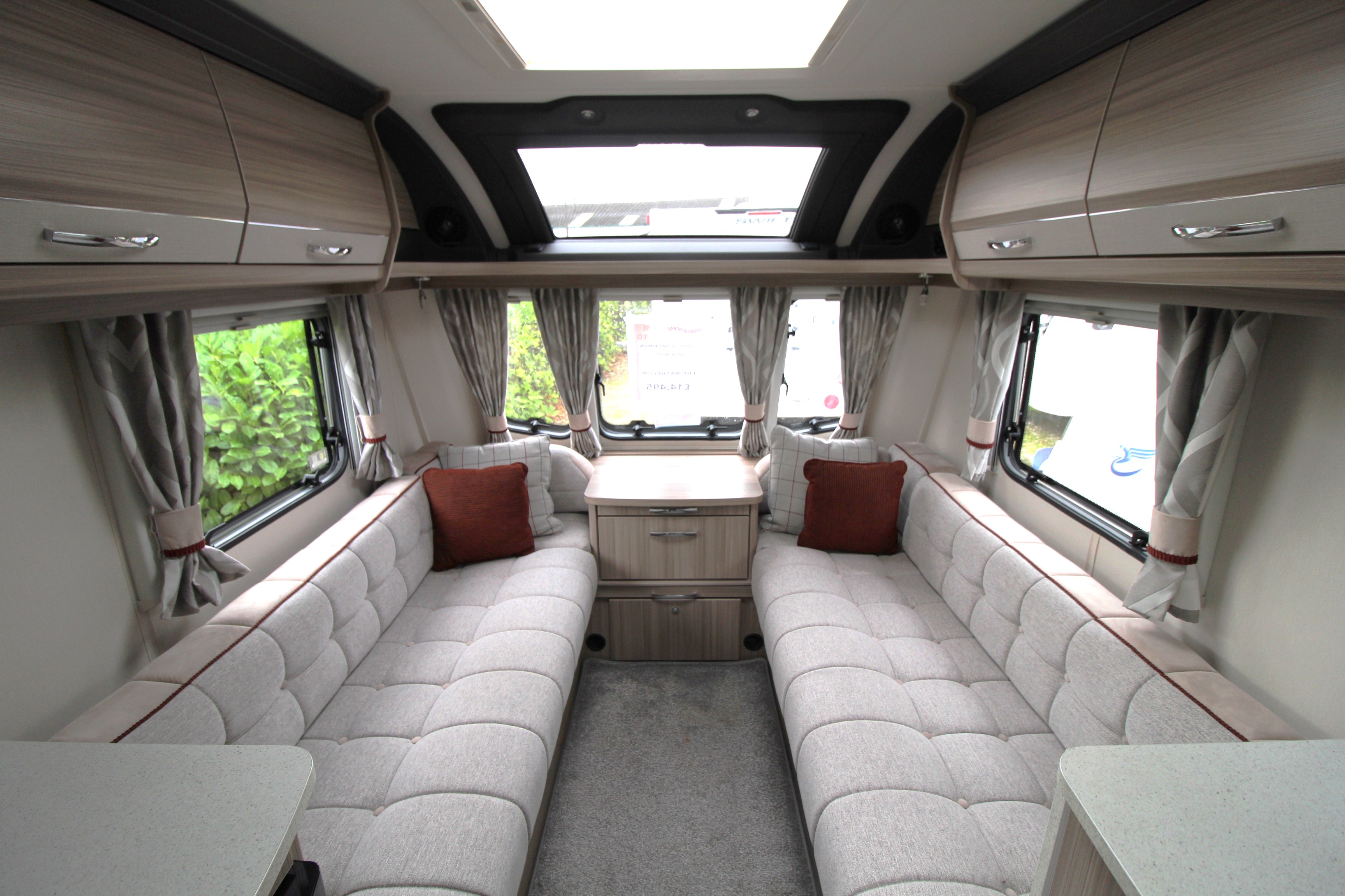 The spacious, modern, light and airy lounge area with its face to face seating offers a comfortable area to relax whilst an easy conversion offers two-single beds or one large Adjacent to the entrance door is a large display cabinet with shelving above and cupboards below, the ideal place to display your television or use as extra workspace.