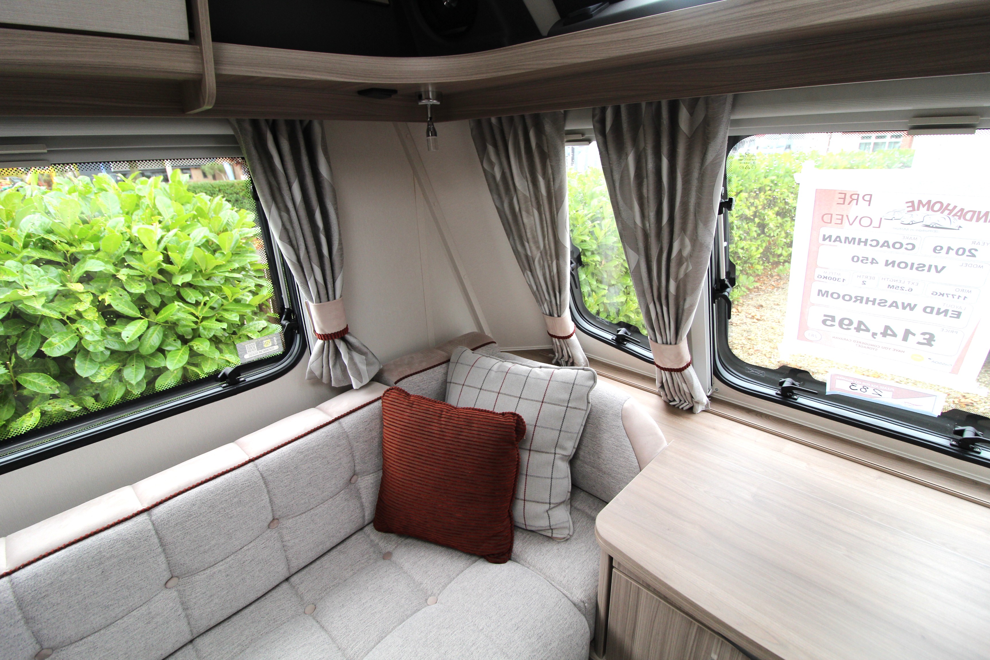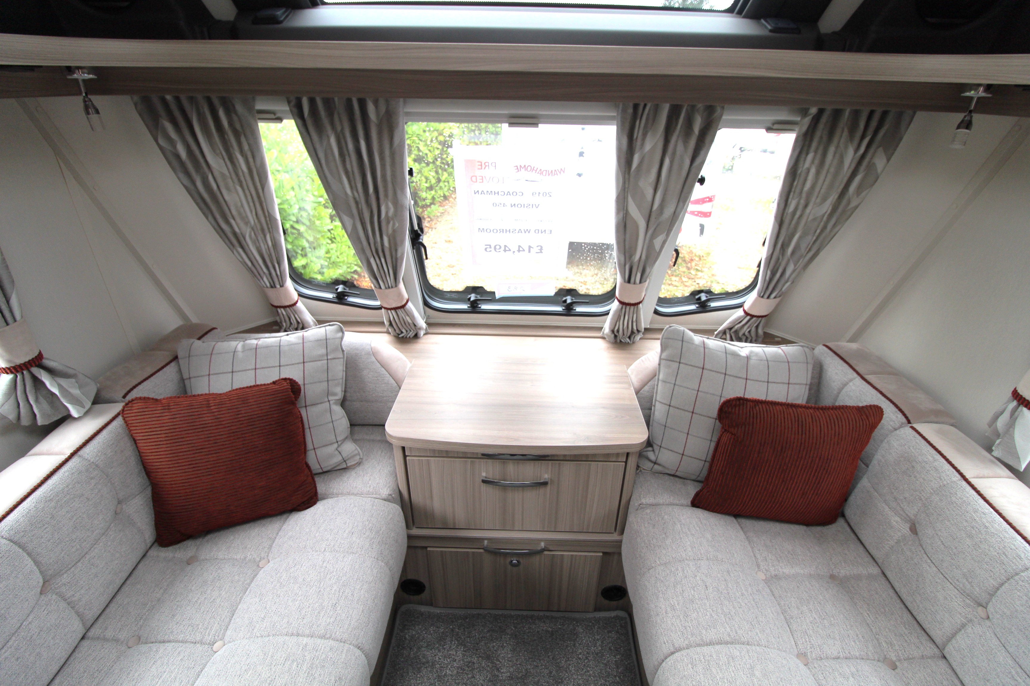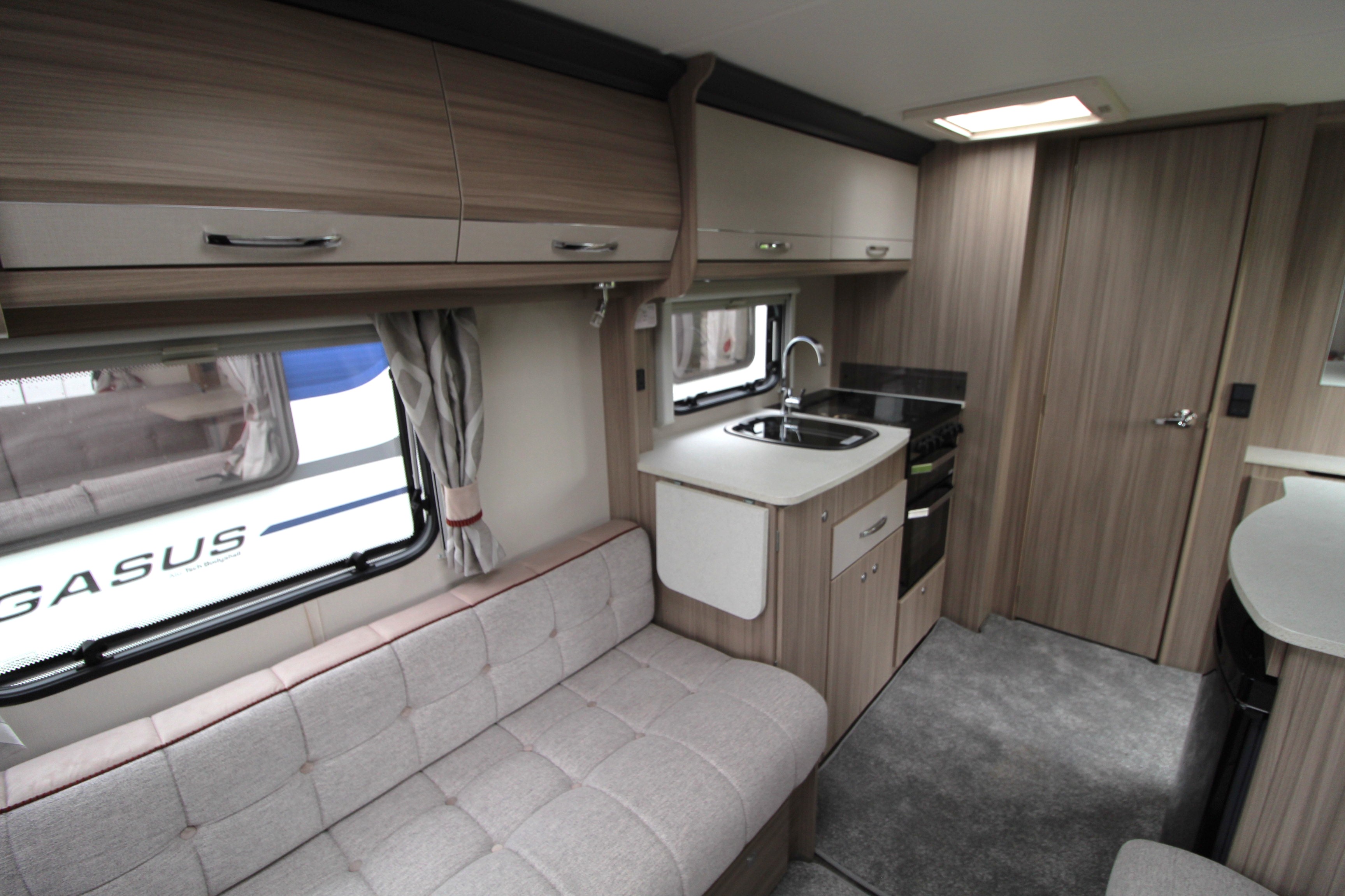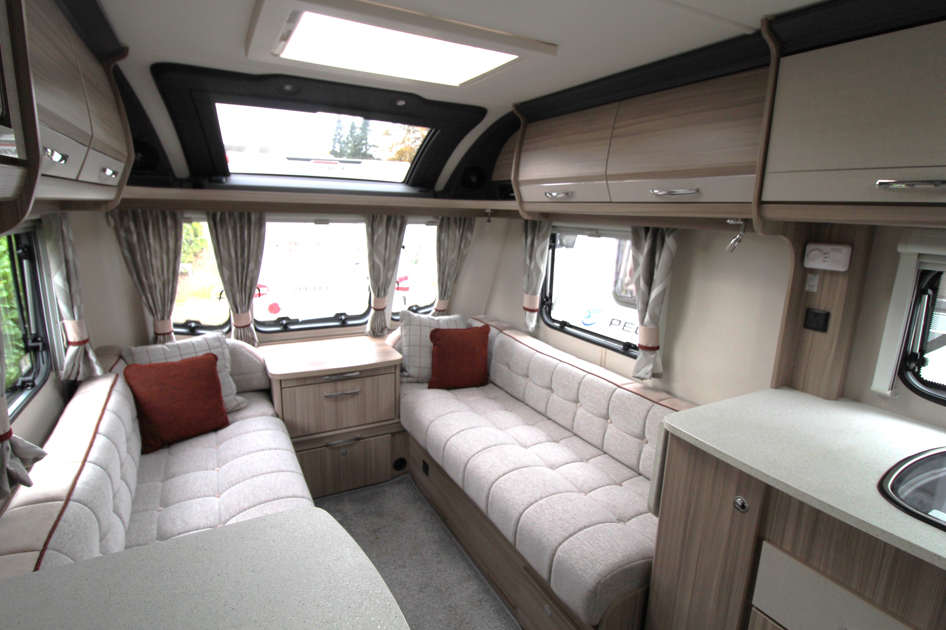 The spacious, modern, light and airy lounge area with its face to face seating offers a comfortable area to relax whilst an easy conversion offers two-single beds or one large Adjacent to the entrance door is a large display cabinet with shelving above and cupboards below, the ideal place to display your television or use as extra workspace.