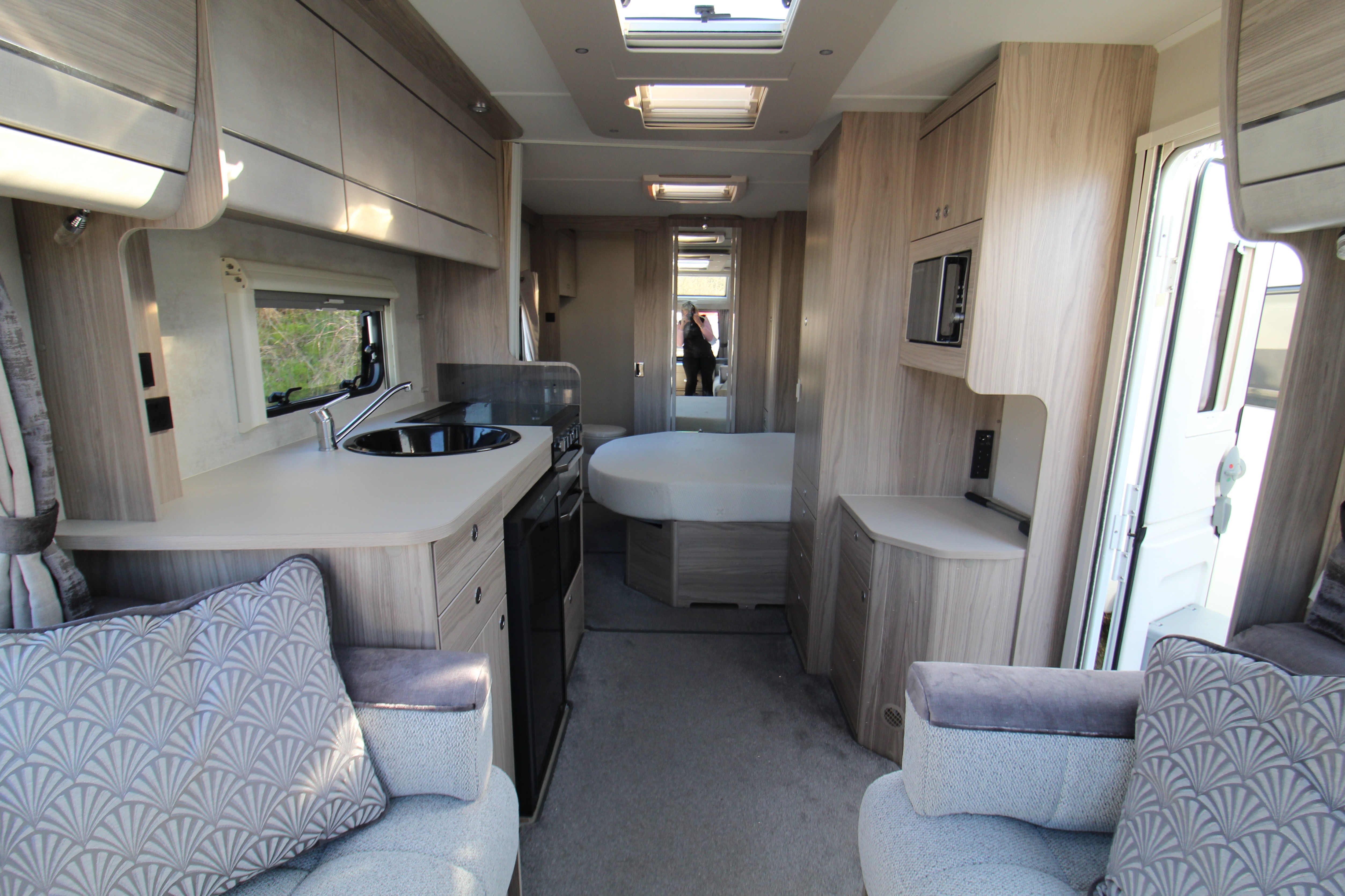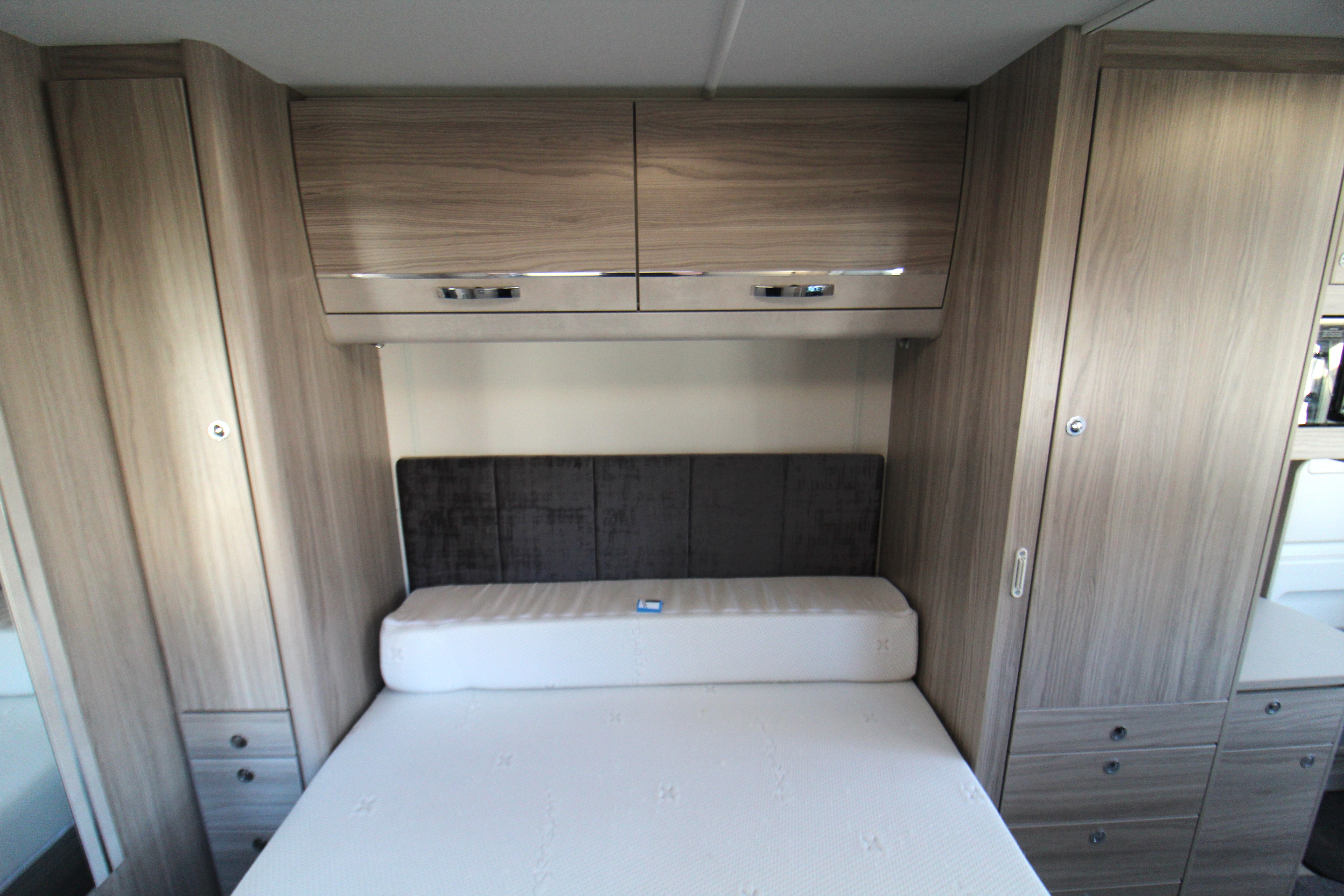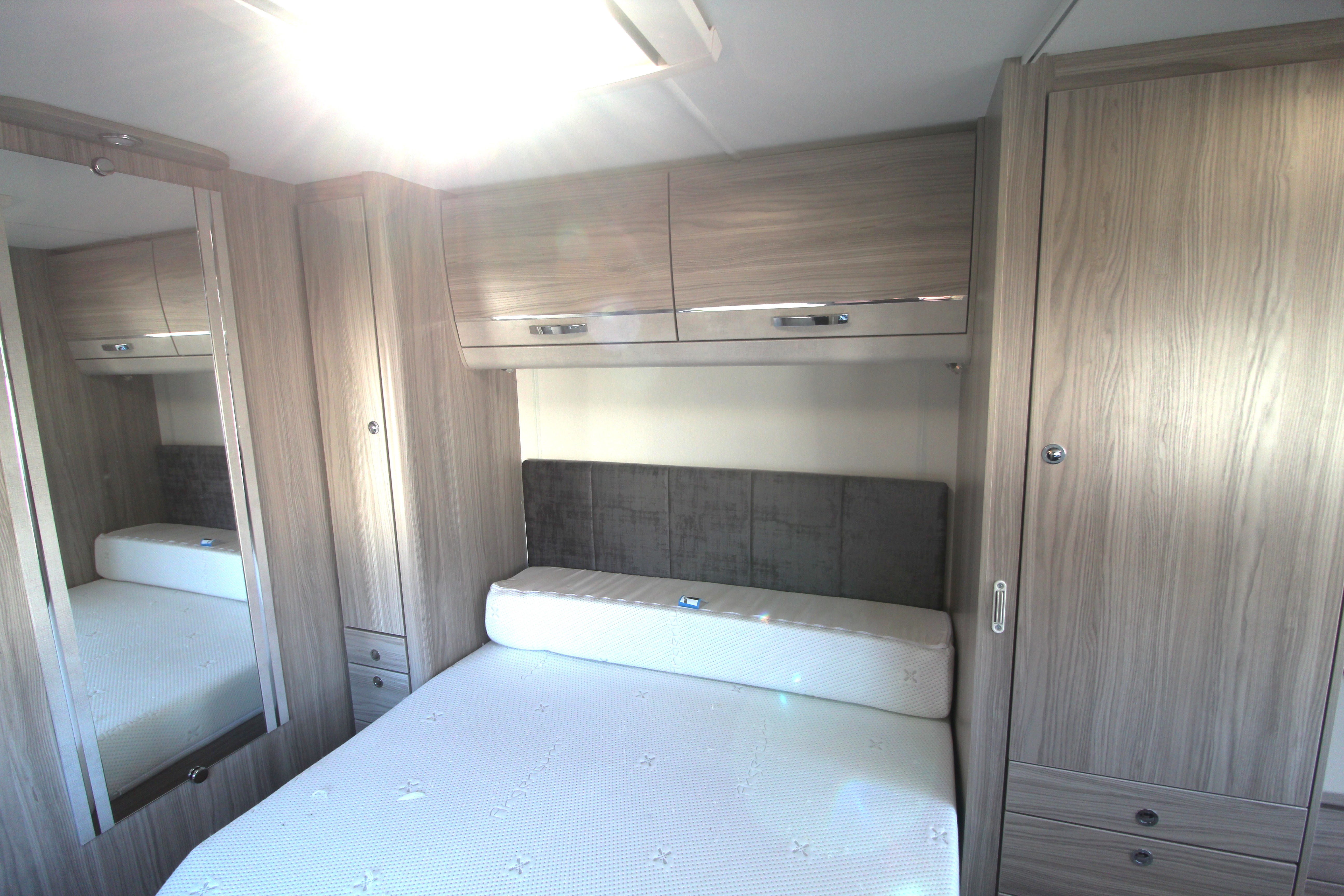 - Rear Transverse Island Bed: A permanent fixed double bed that retracts during the day to create extra floor space.