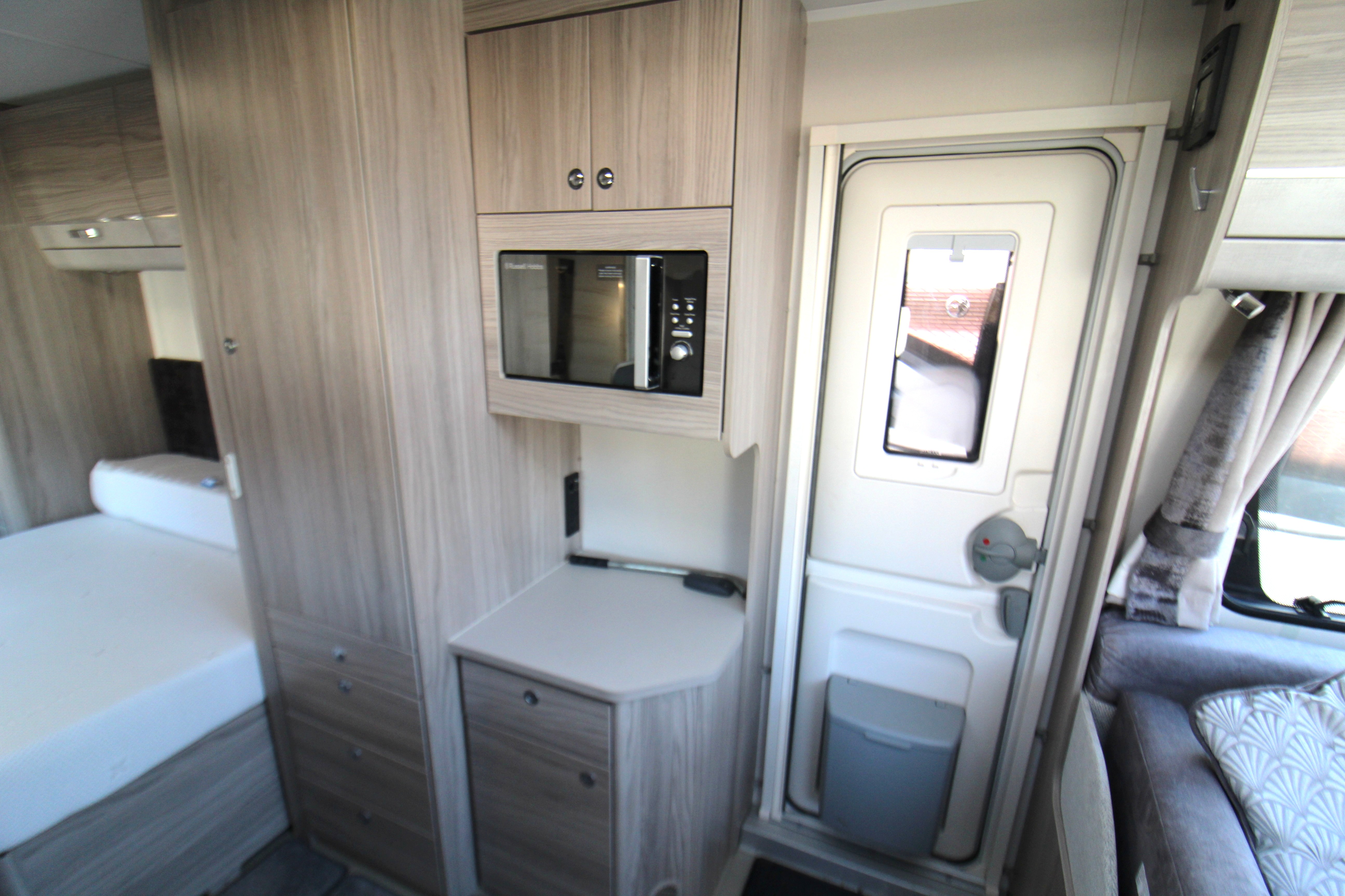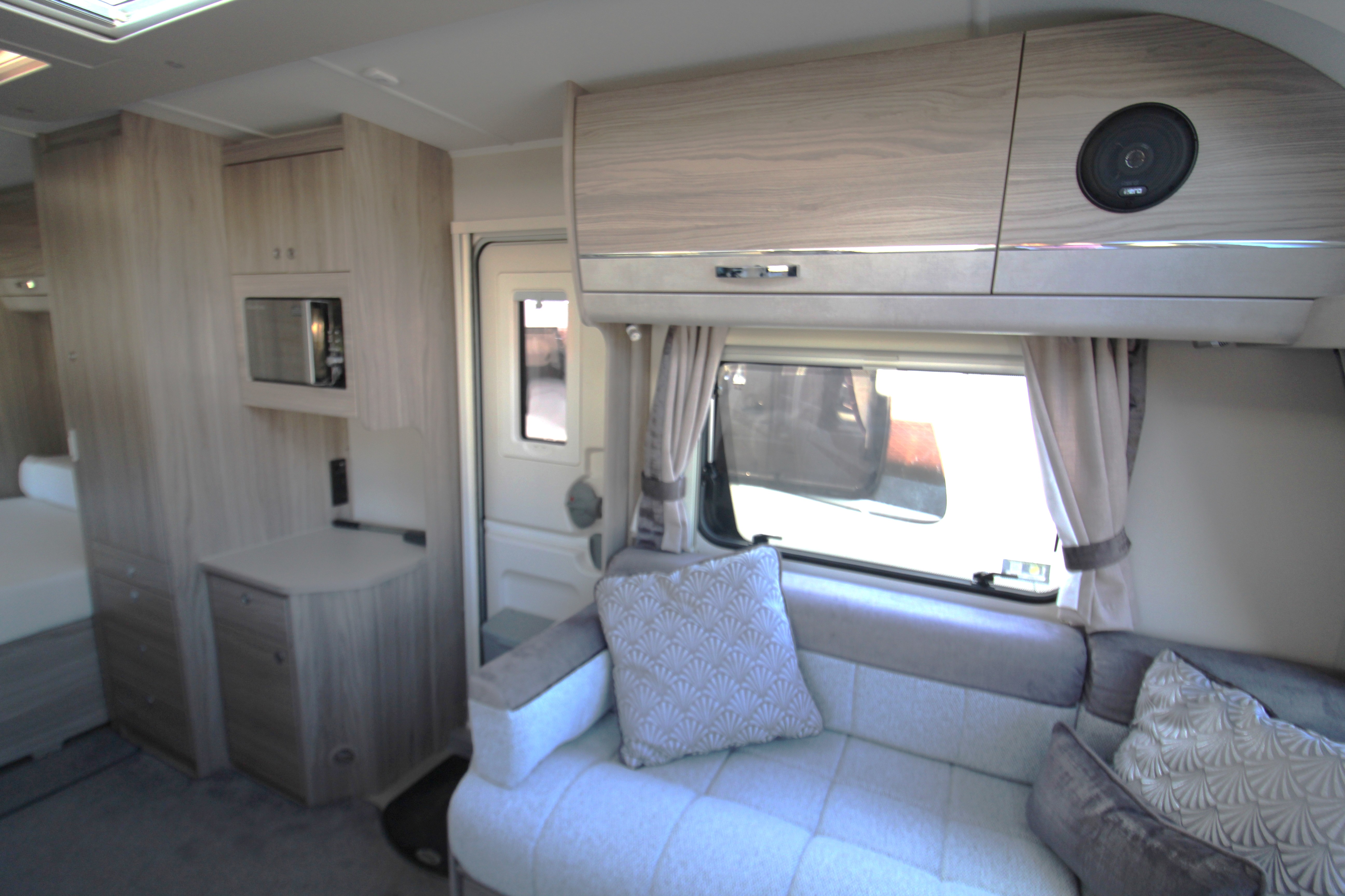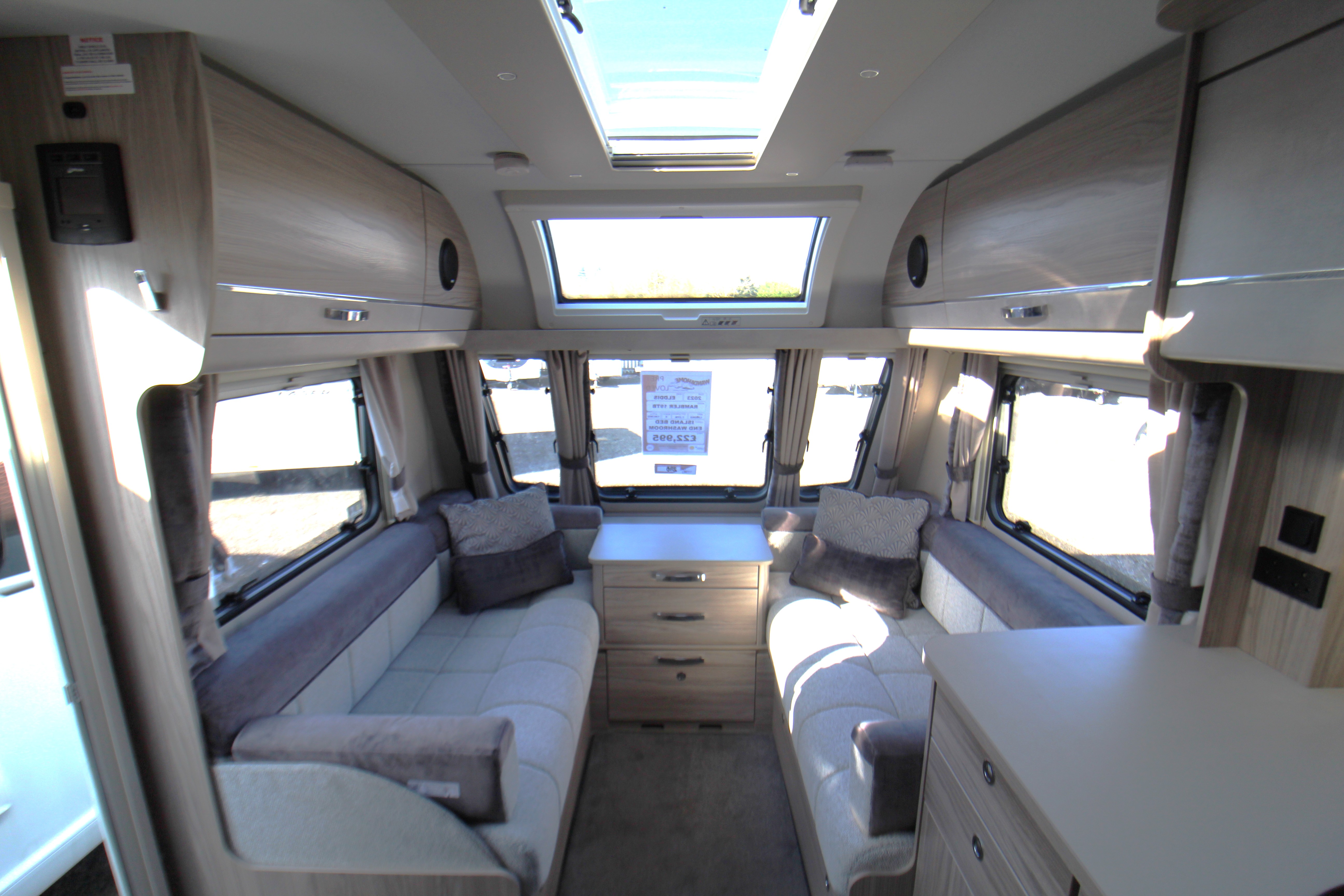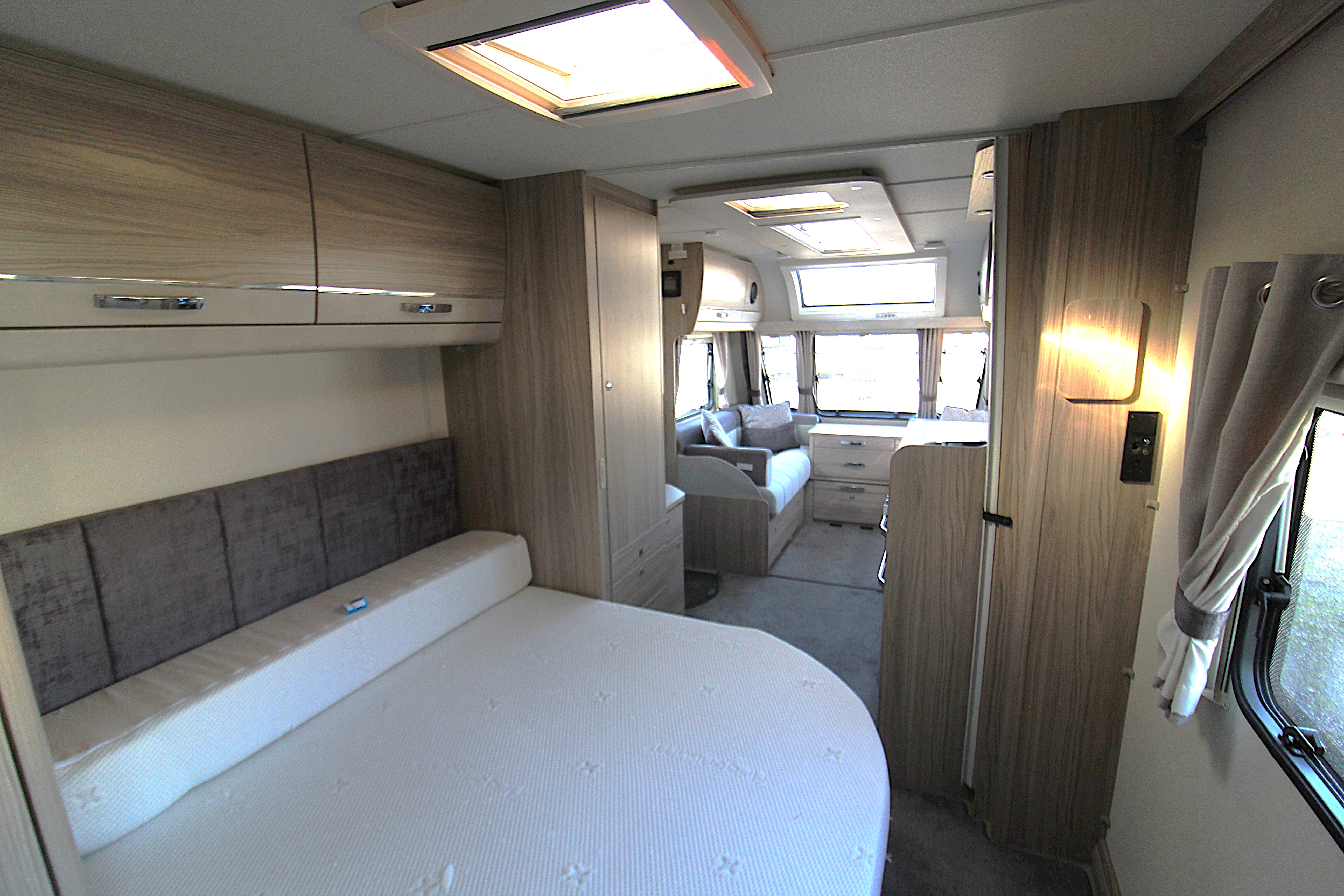 - Rear Transverse Island Bed: A permanent fixed double bed that retracts during the day to create extra floor space.