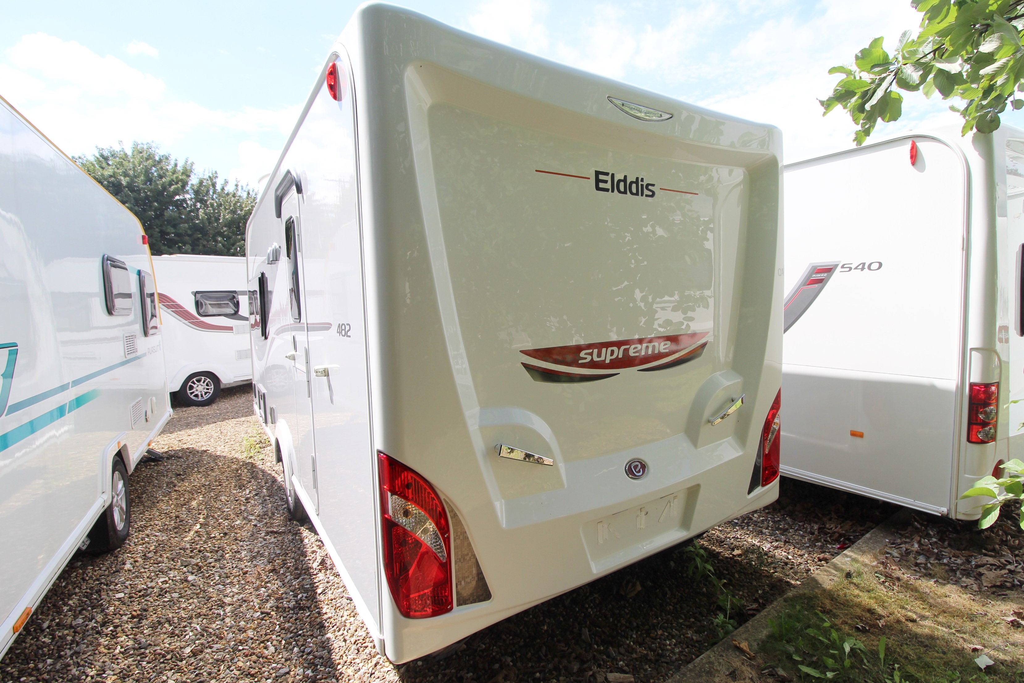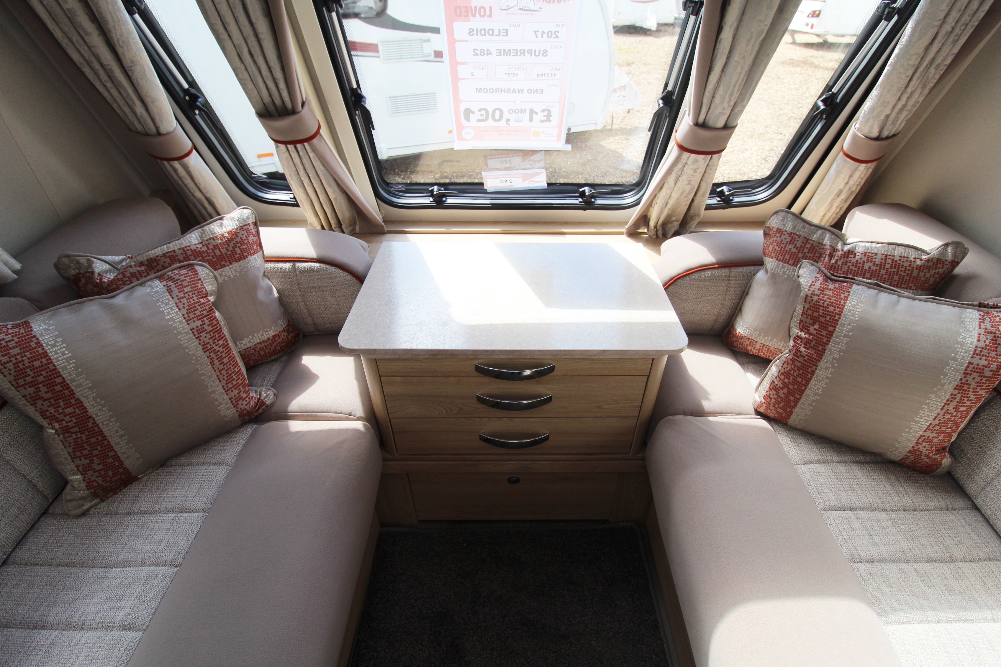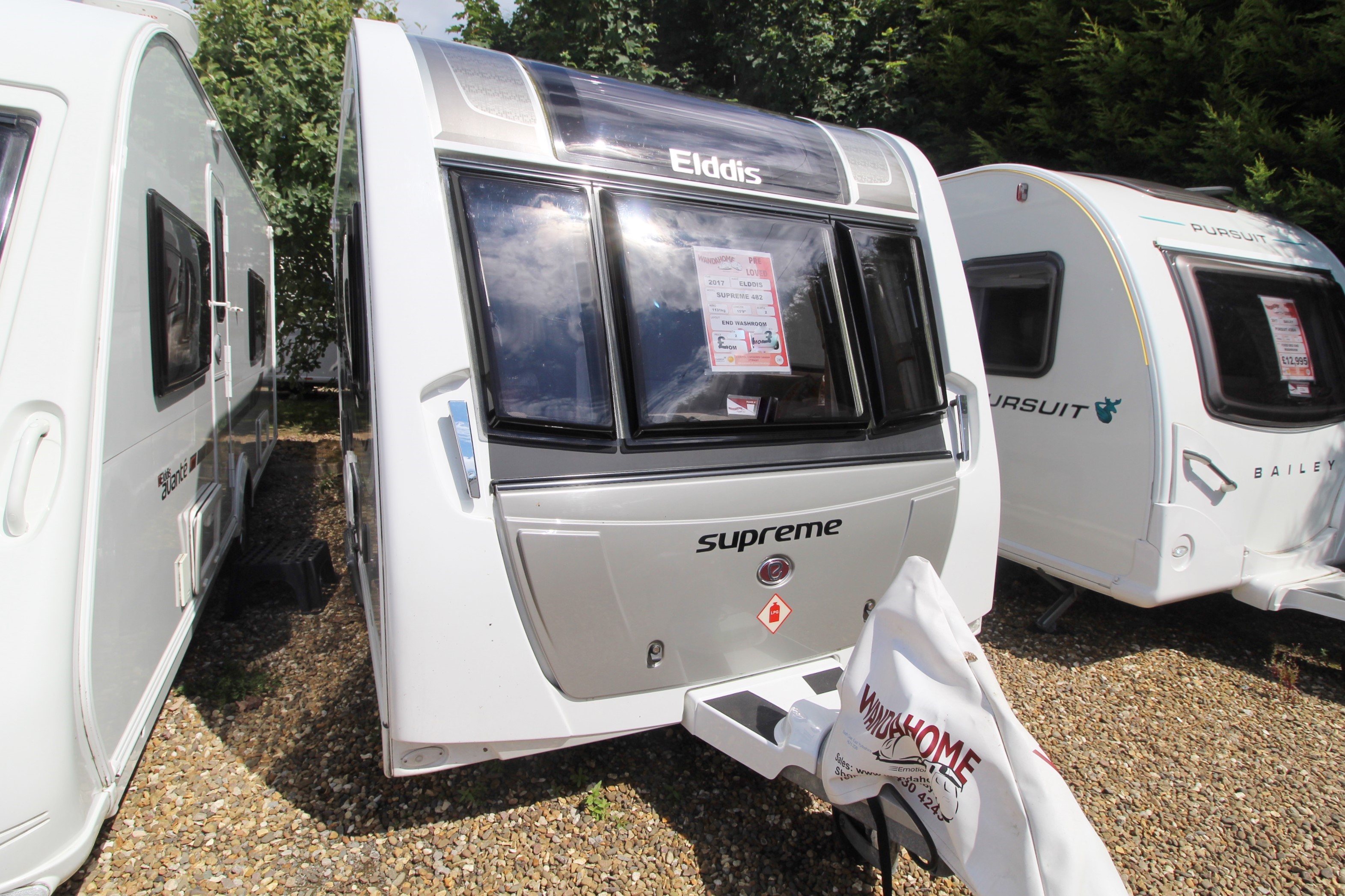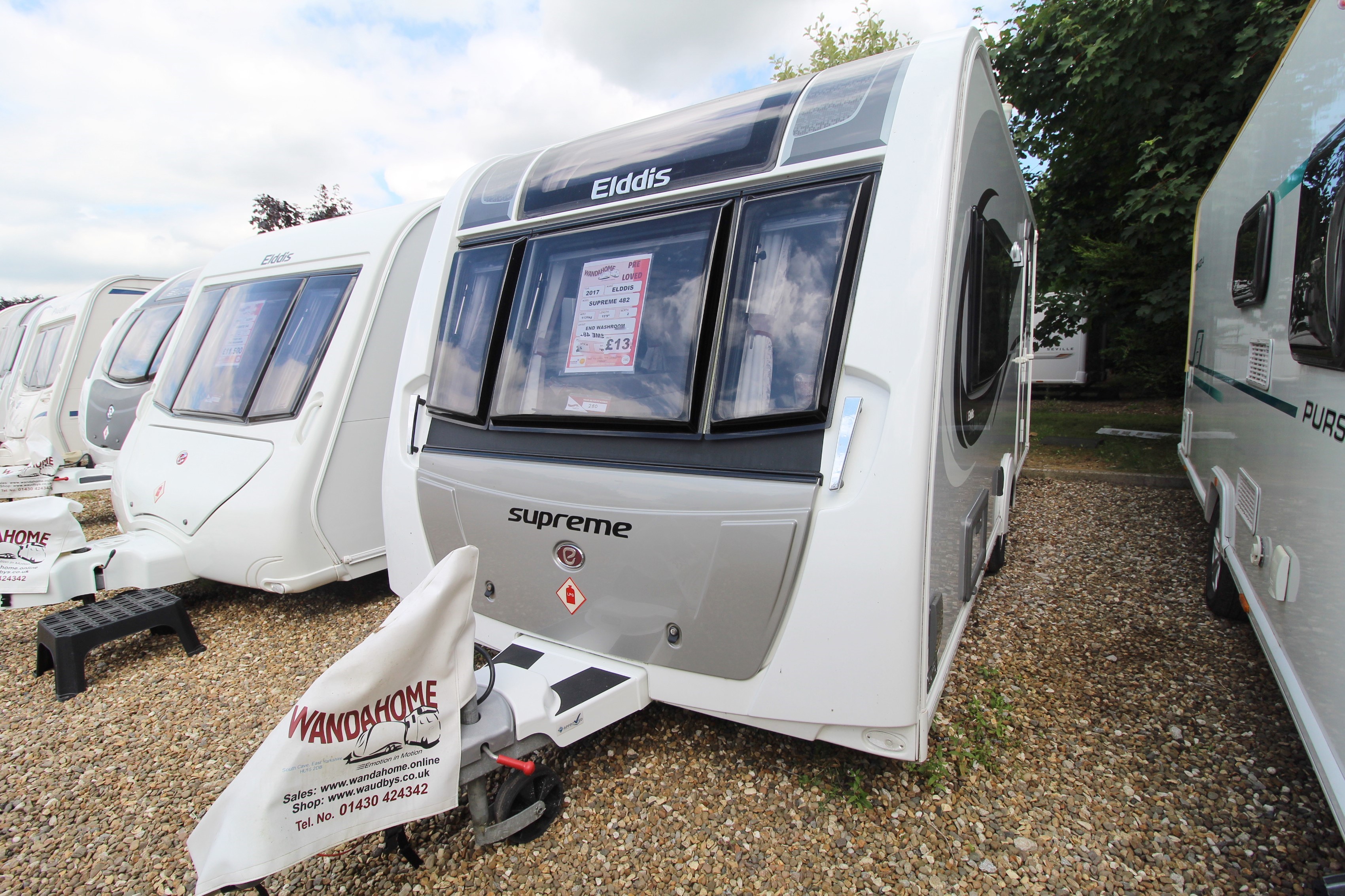 The 2017 Elddis Supreme 482 is a two-berth caravan with a high specification and ideal layout benefiting from full size front bunks, generous kitchen with a spacious sideboard opposite. There is a spacious end washroom with shower cubicle, wardrobe, casette toilet and vanity sink. Presented in immaculate condition, the Elddis Supreme 482 is available now at Wandahome South Cave.