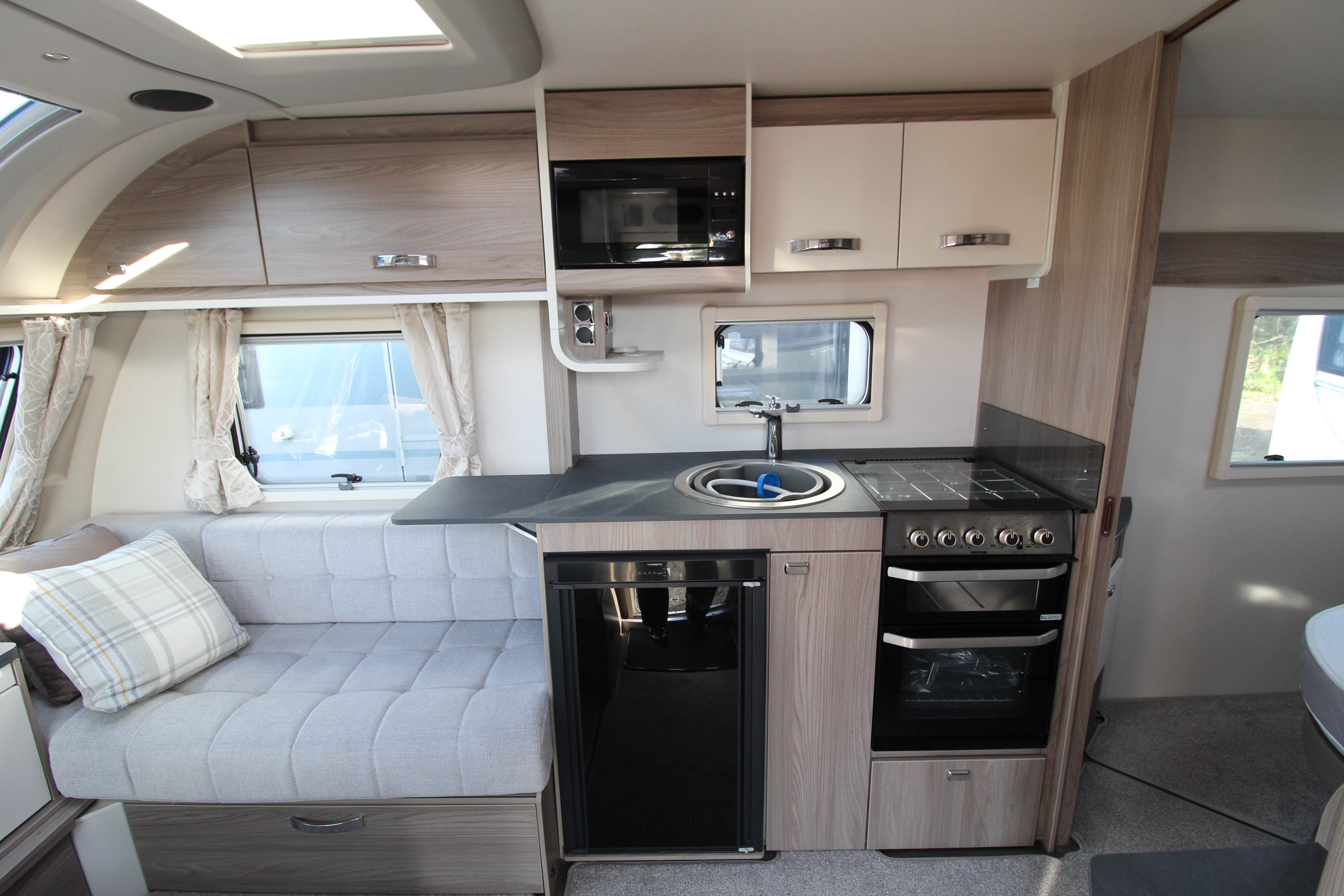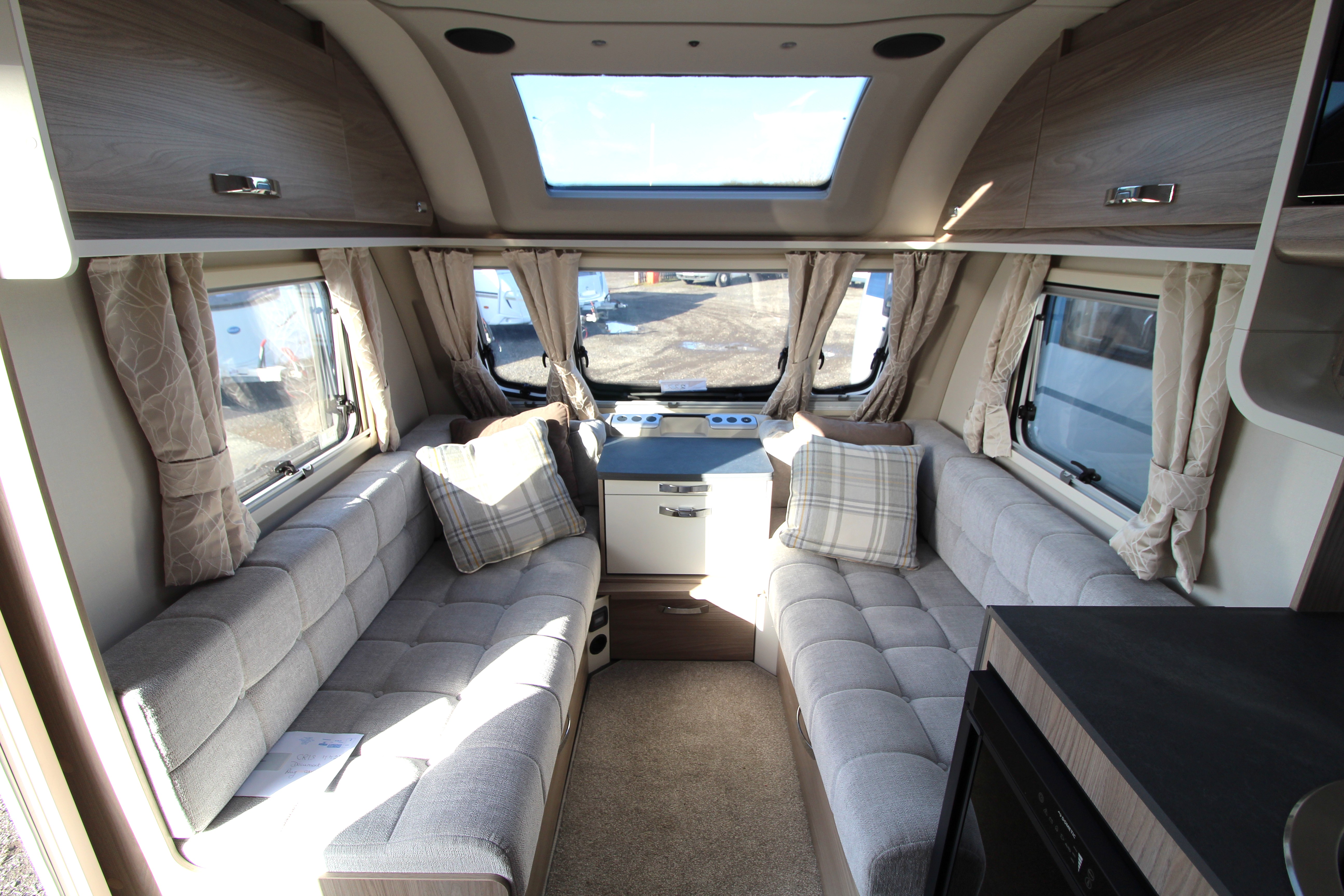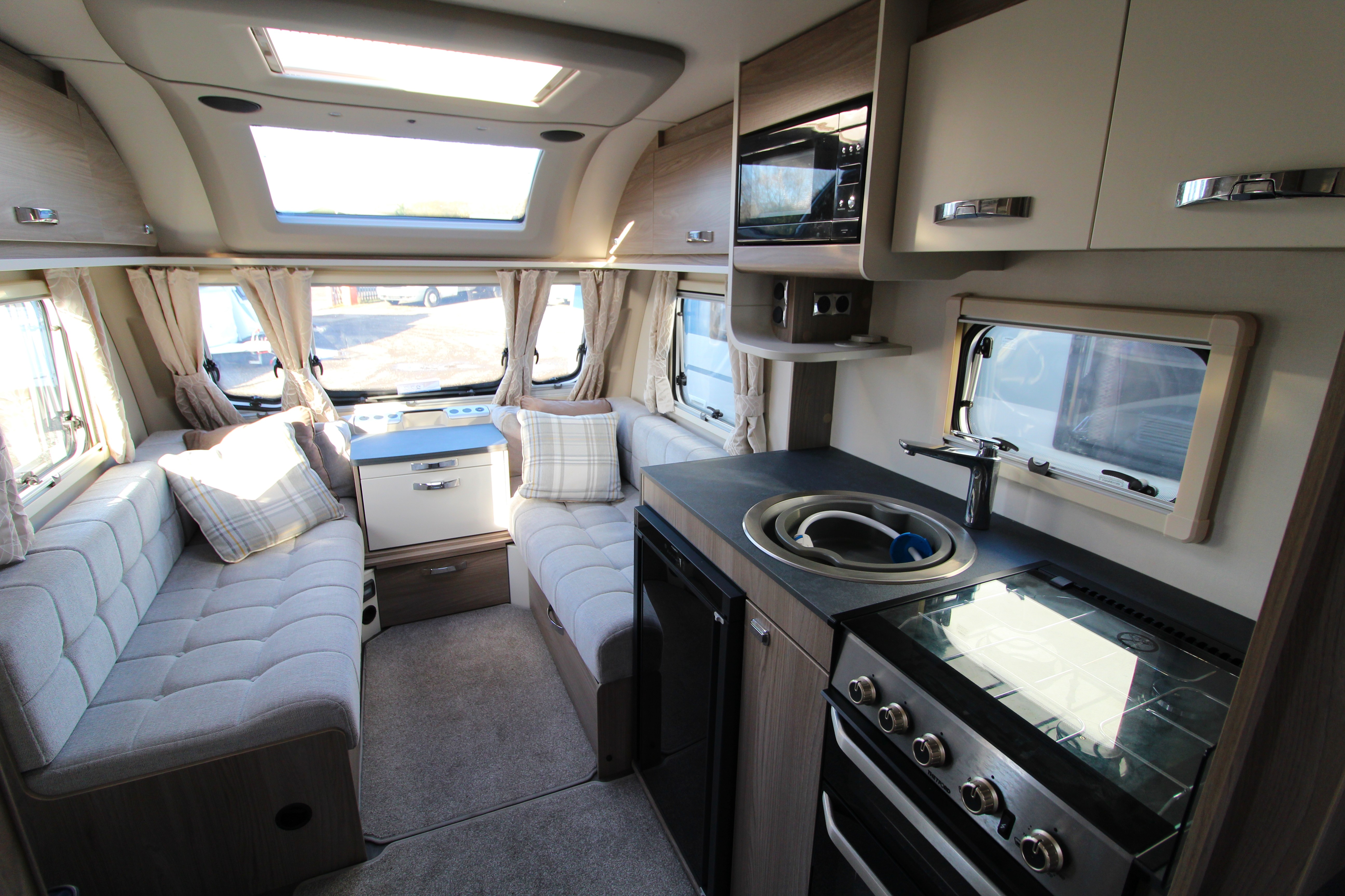 With a light and modern interior, the lounge area presents face to face seating, overhead lockers and centre chest of drawers. The lounge area easily converts to a double bed on an evening as and when required.