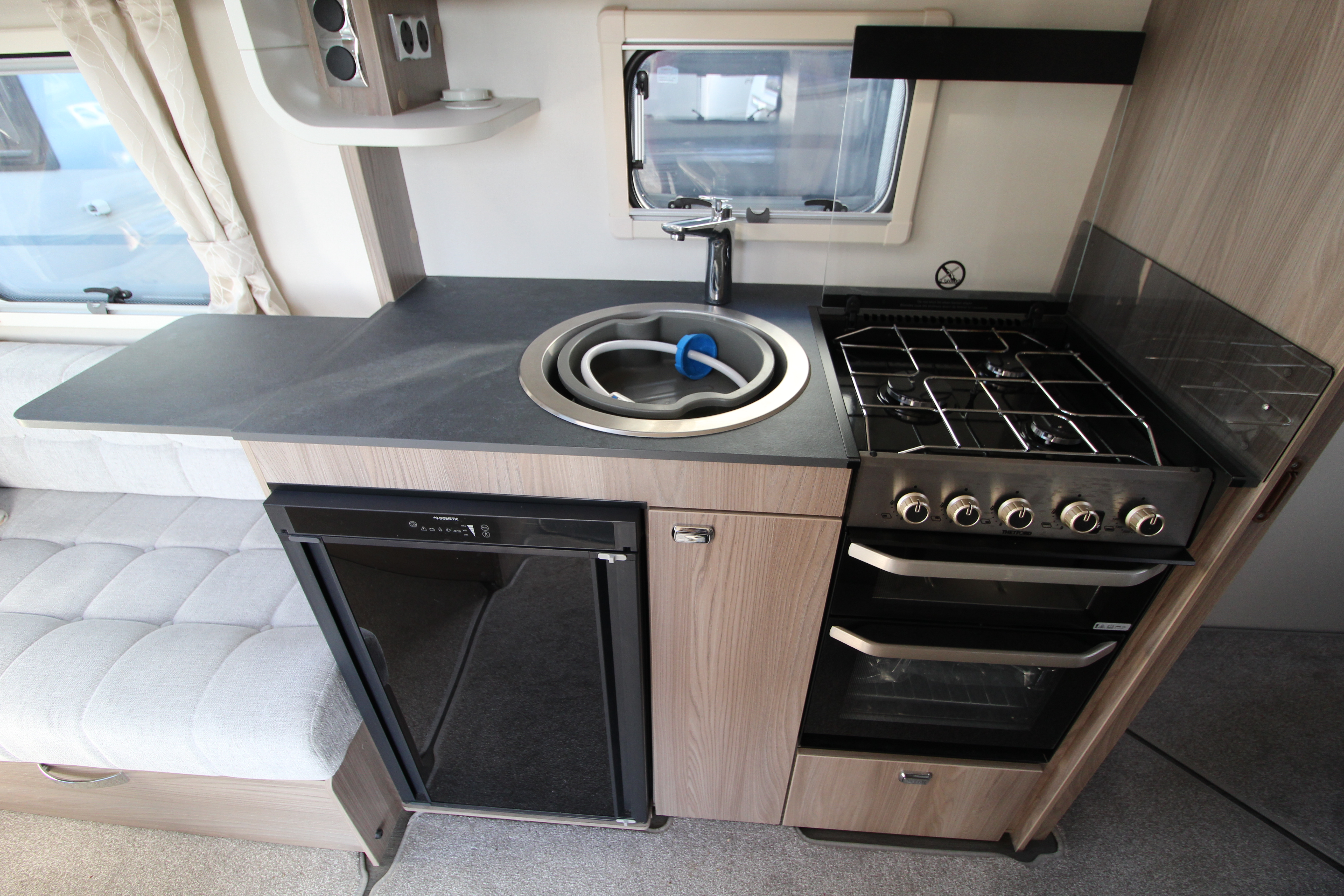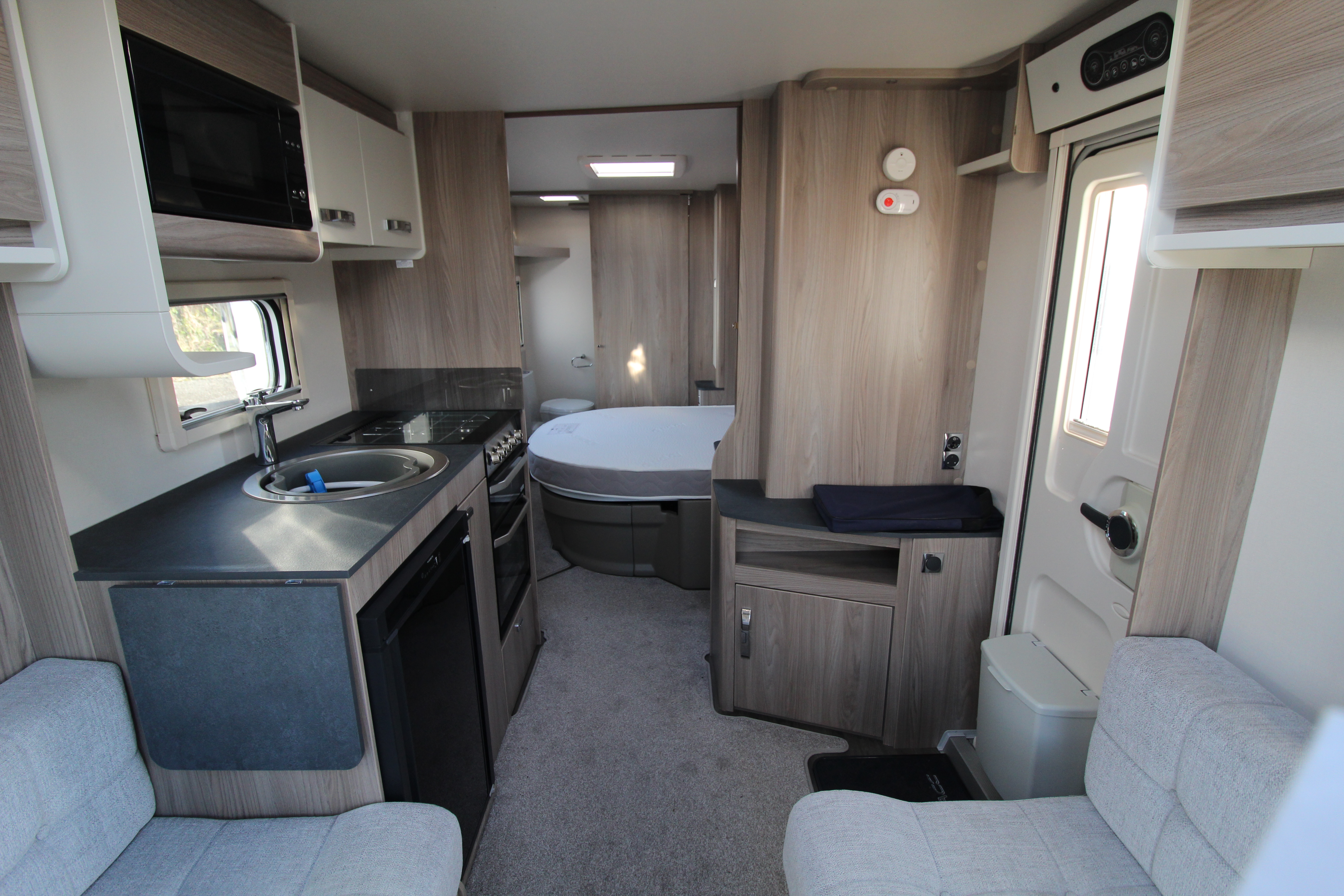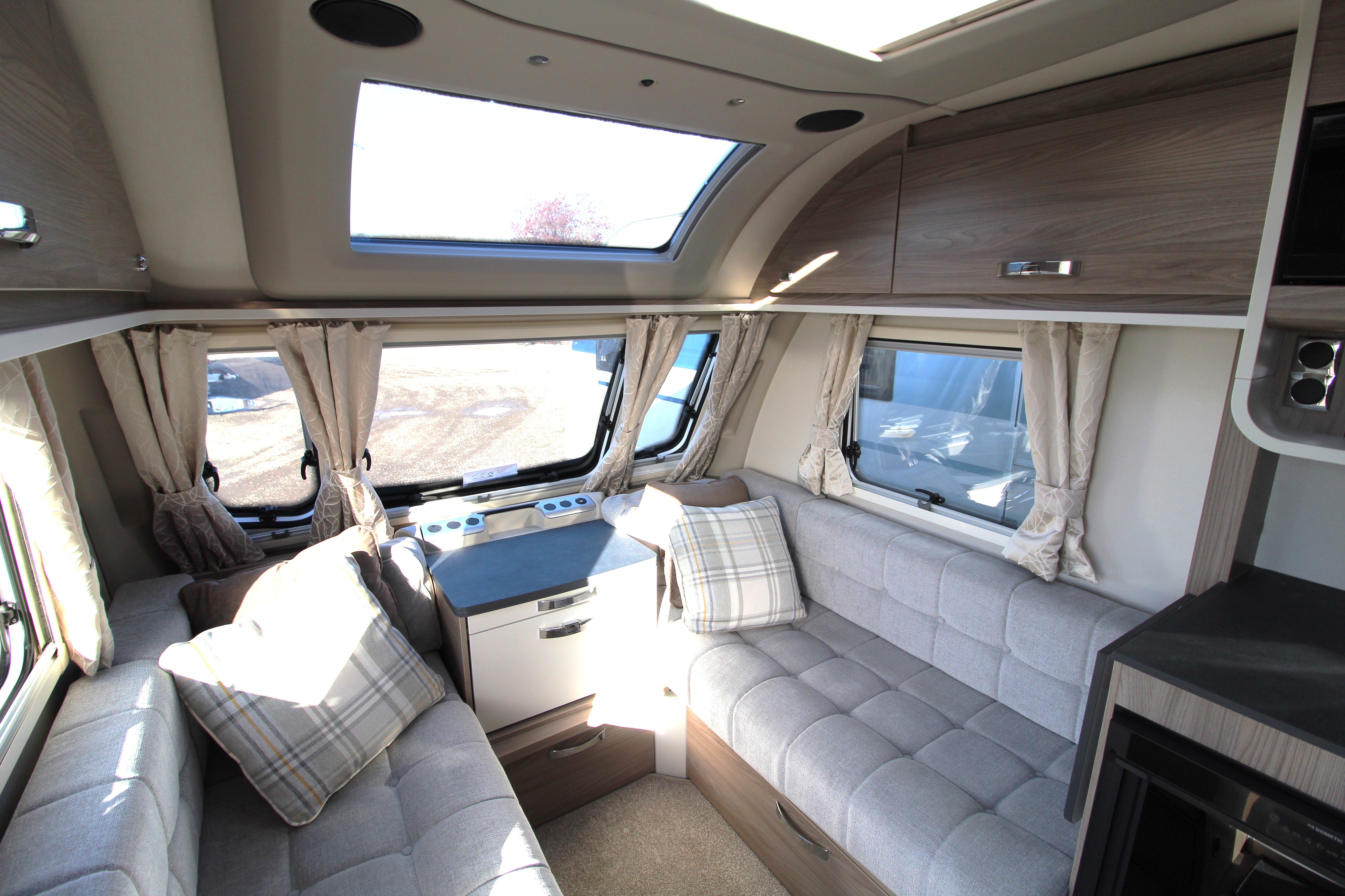 With a light and modern interior, the lounge area presents face to face seating, overhead lockers and centre chest of drawers. The lounge area easily converts to a double bed on an evening as and when required.