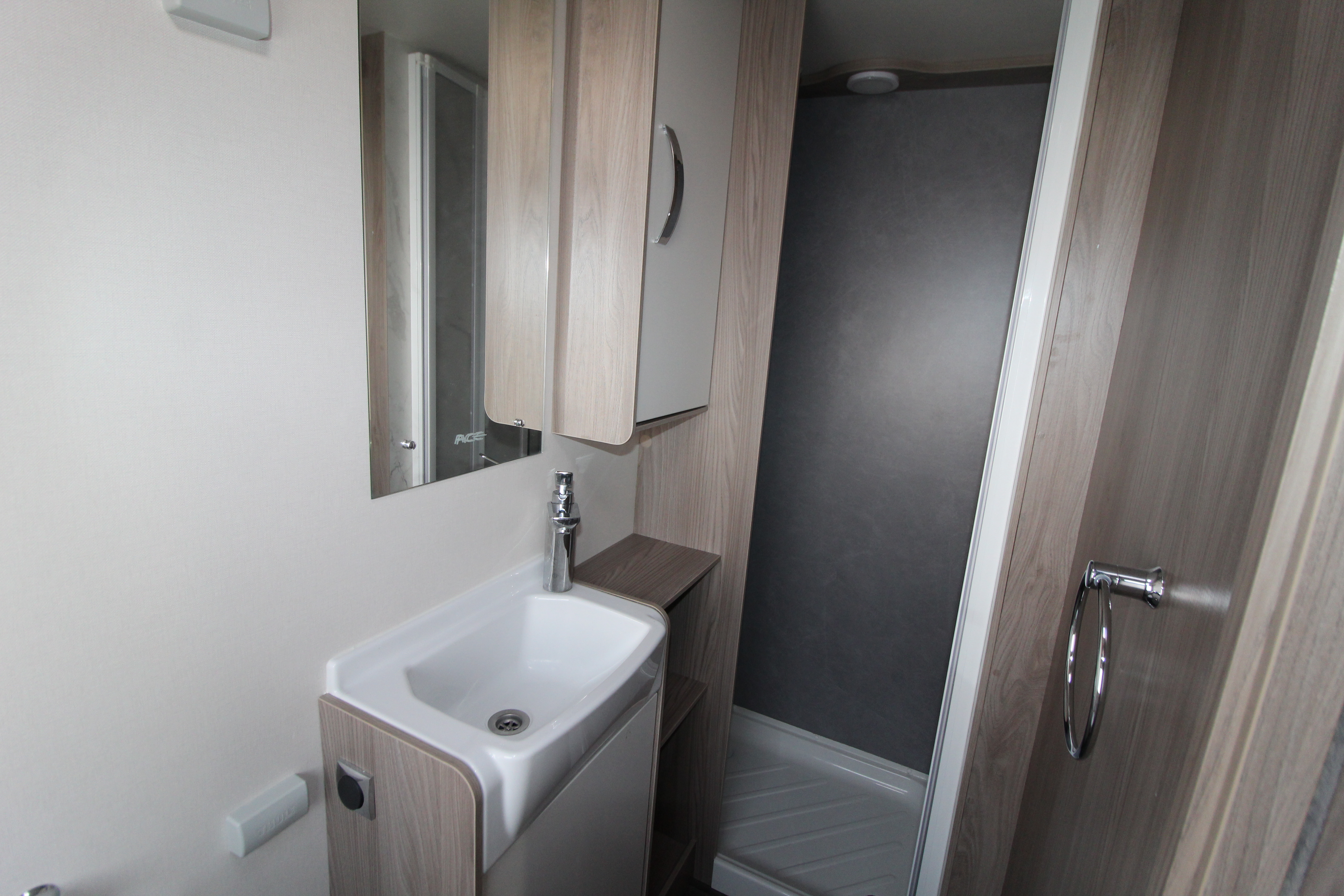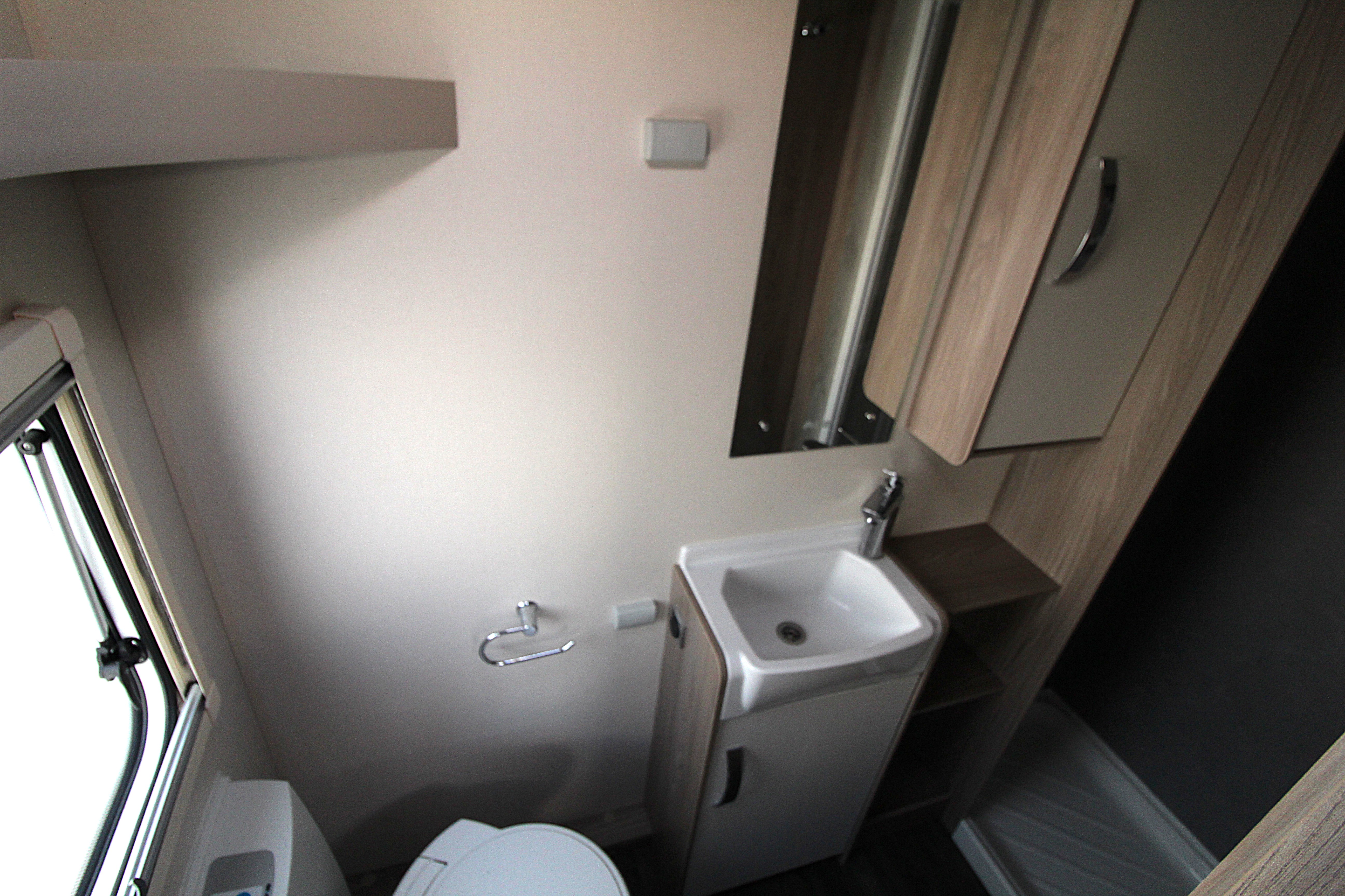 The full width end washroom provides cassette toilet, vanity wash basin with mirror over and a shower cubicle.