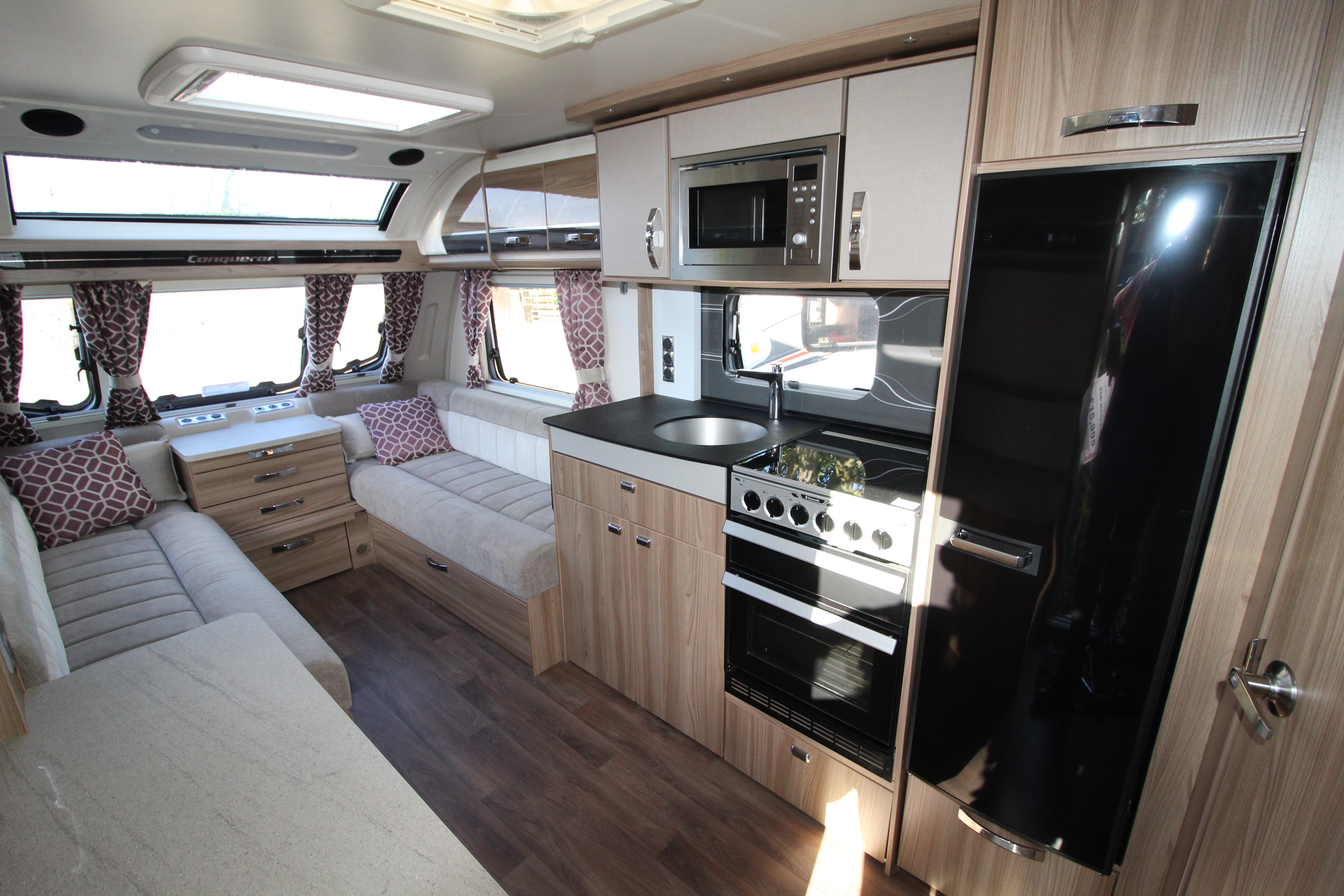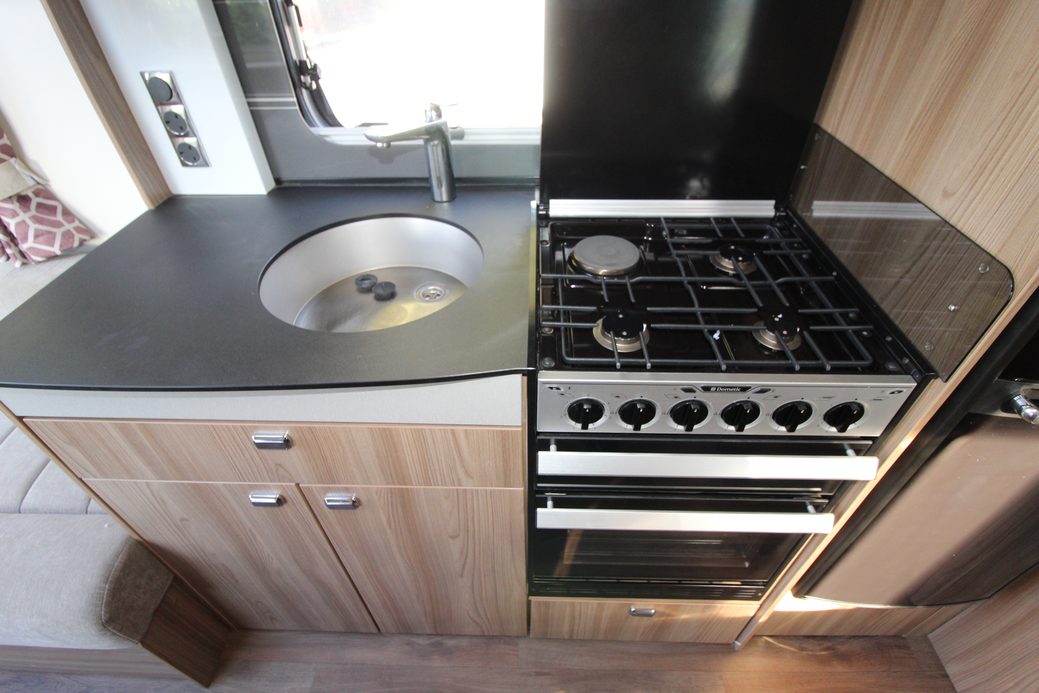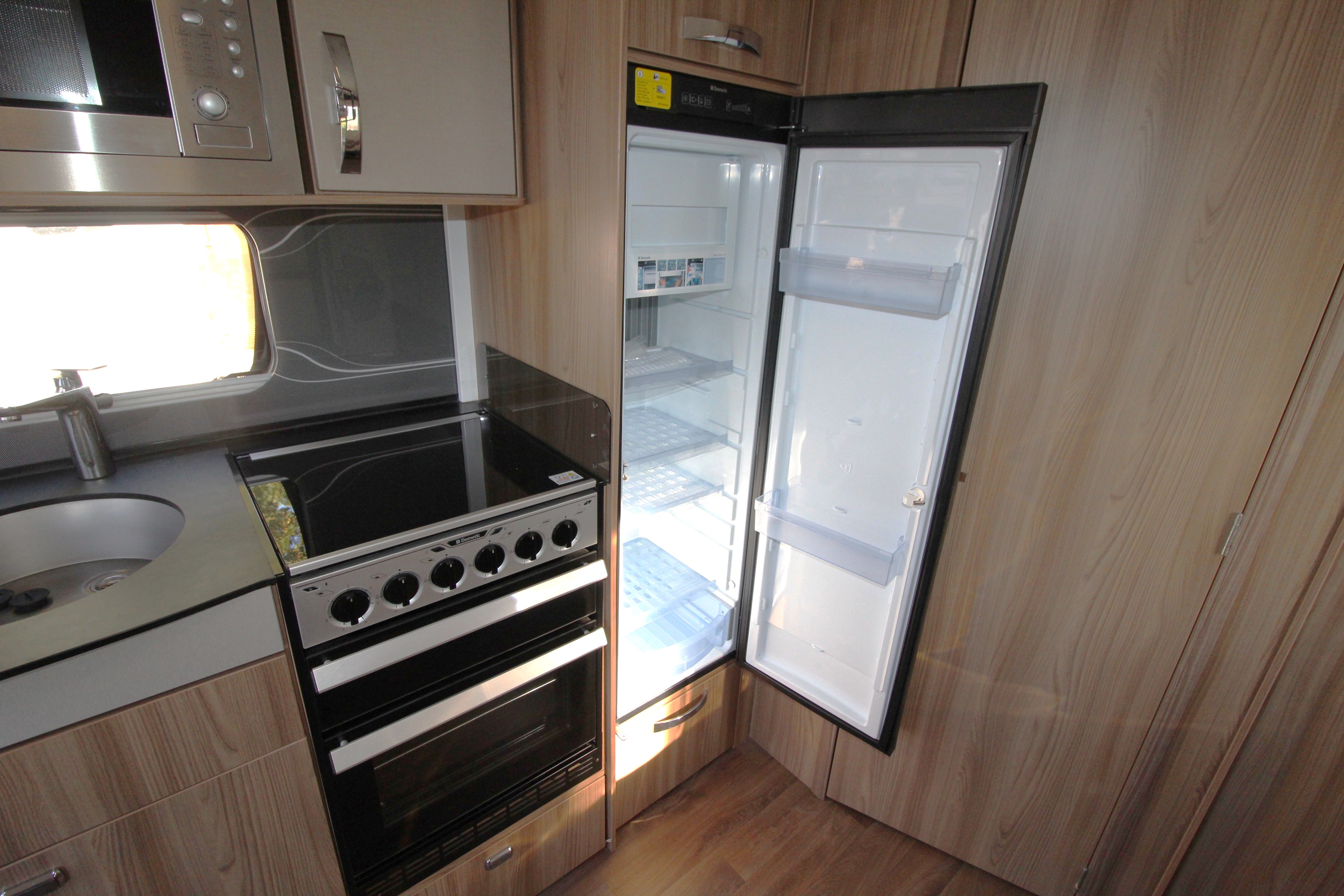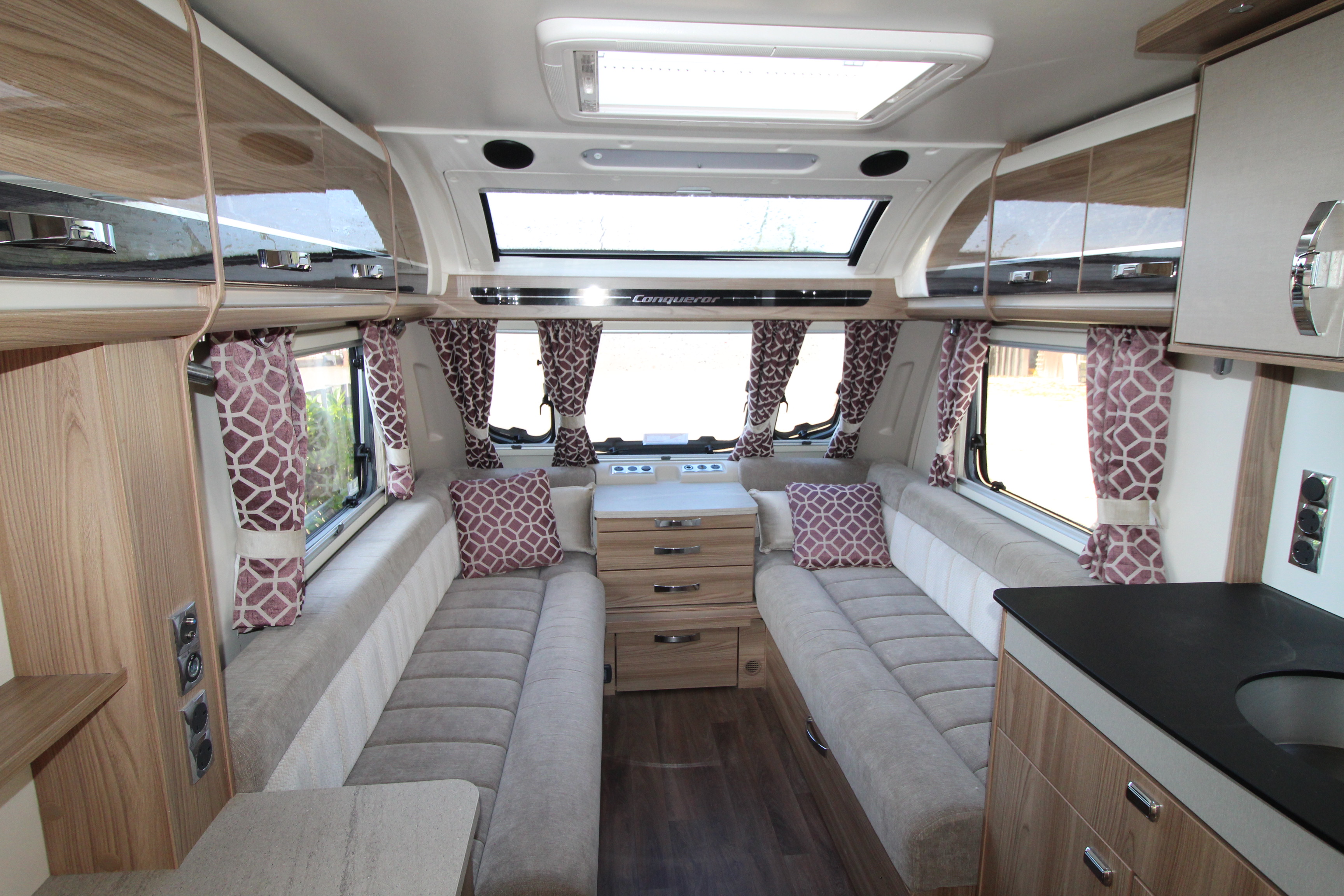 Presenting a spacious front lounge area with face to face seating, centre chest of drawers/coffee table, overhead lockers and under bench storage. Use as two single beds on a night or convert to one large double bed. Moving towards the rear, a large display cupboard offers additional storage and a surface for your television to be displayed.