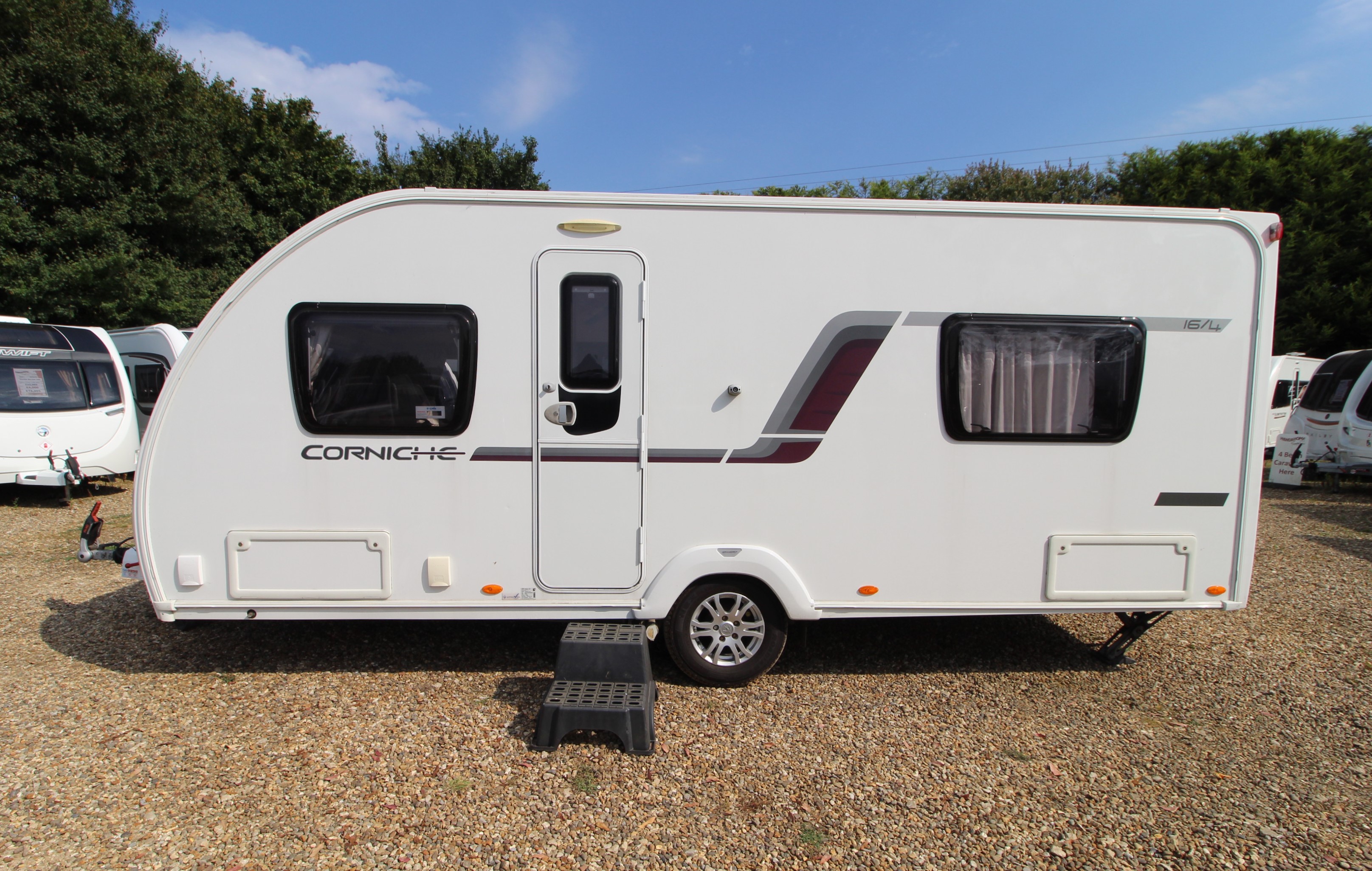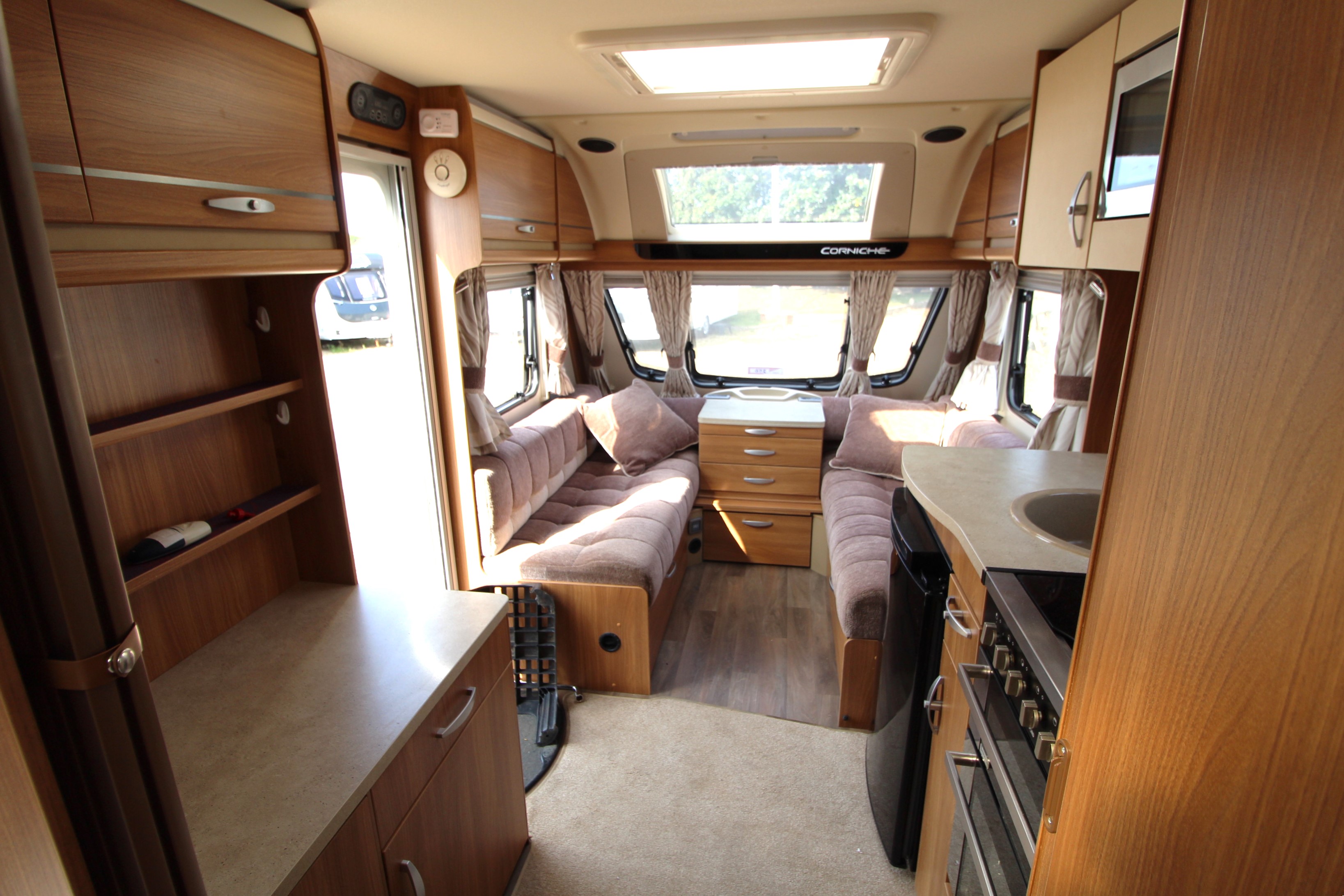 New to our foreourt, take a look inside this pre-loved 2014 four berth caravan that has been well cared for by its previous owners. The comfortable accommodation benefits from a fixed French bed and corner washroom making it ideal for the touring couple or small family.